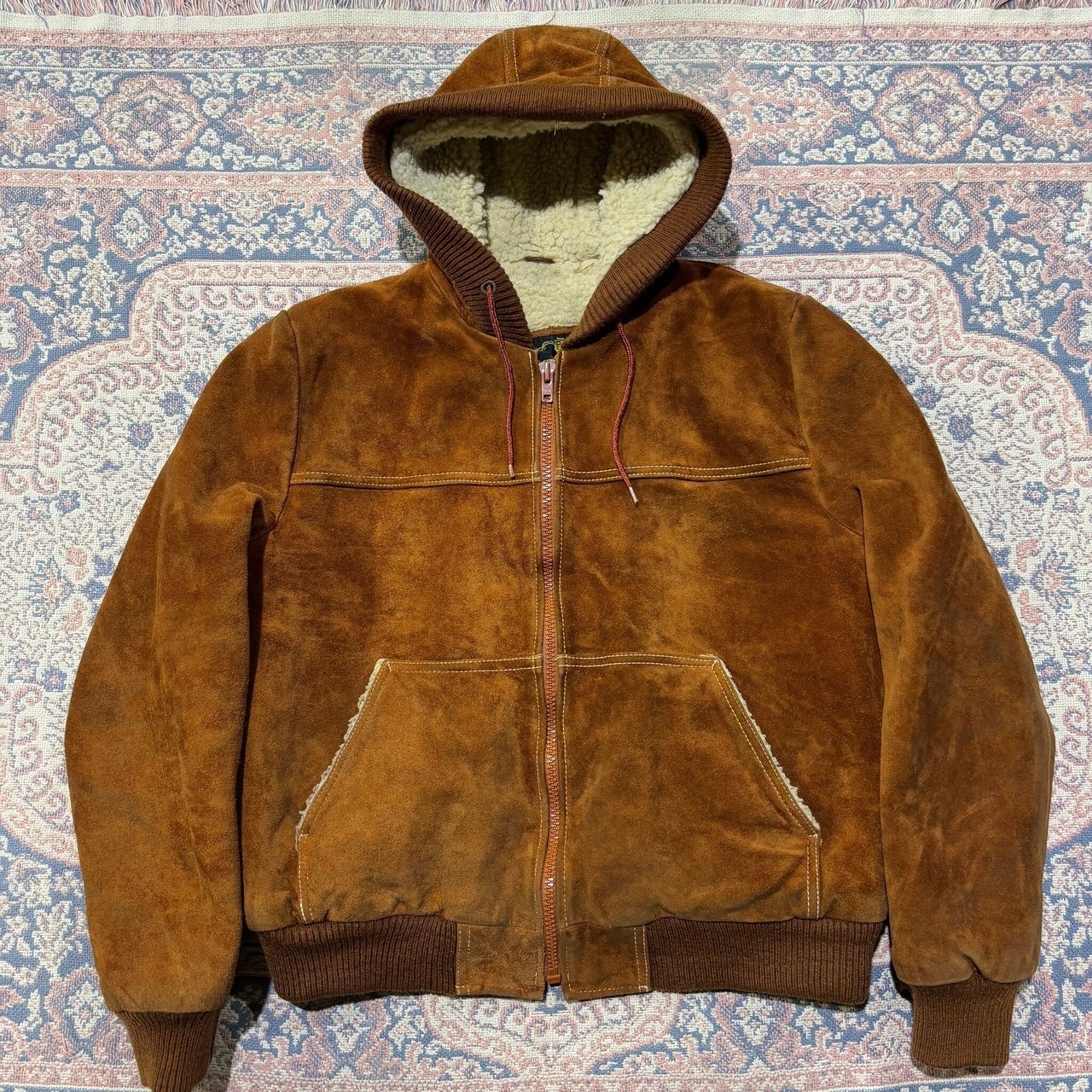 834 80s 80年代 GENUINE Lether 裏ボア スエード レザージャケット フード 古着 メンズ vintage