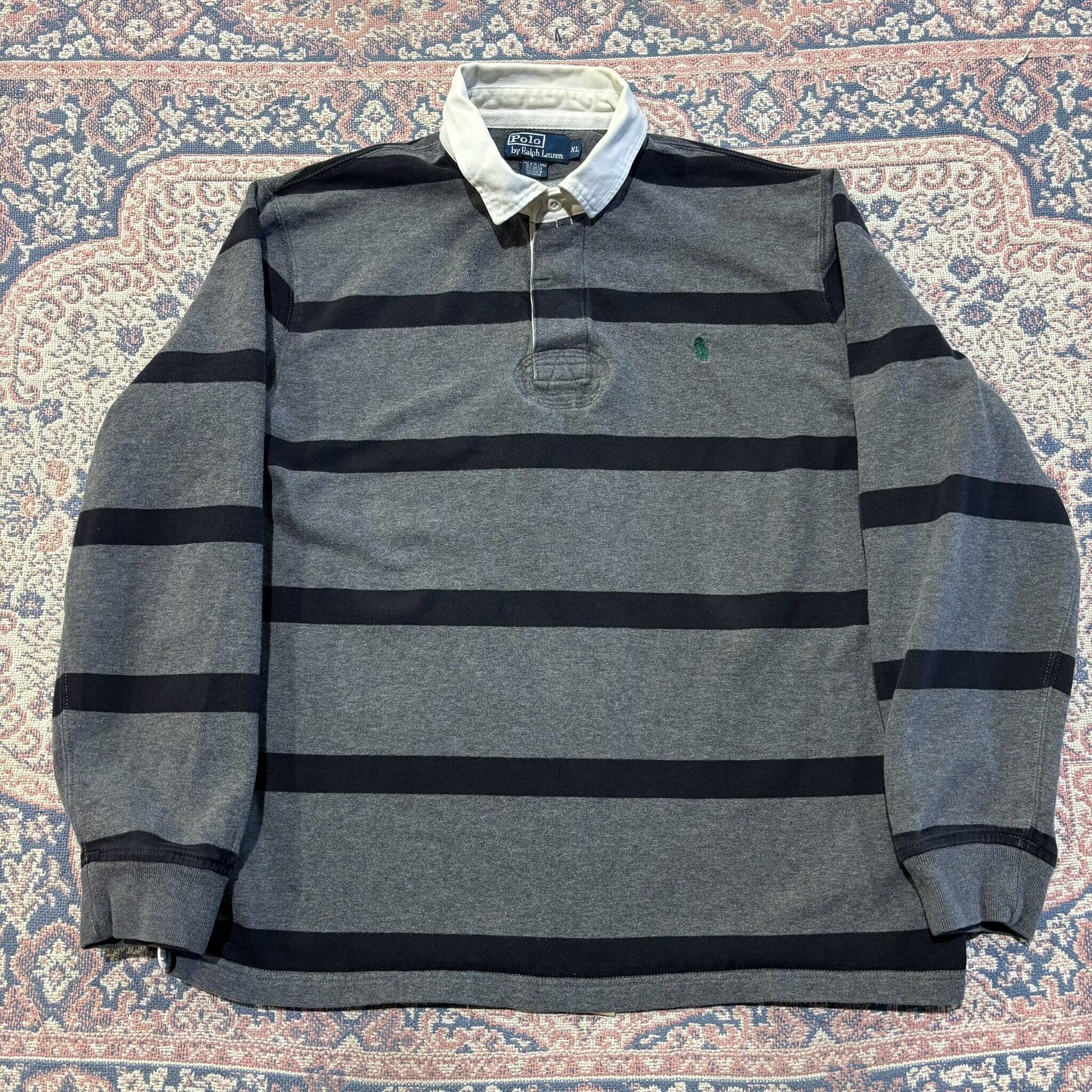911 90s 90年代 polo Ralph Lauren ラガーシャツ クラシック ボーダー ポロ ラルフ ローレン ロンT 黒 ブラック 古着 メンズ vintage XL