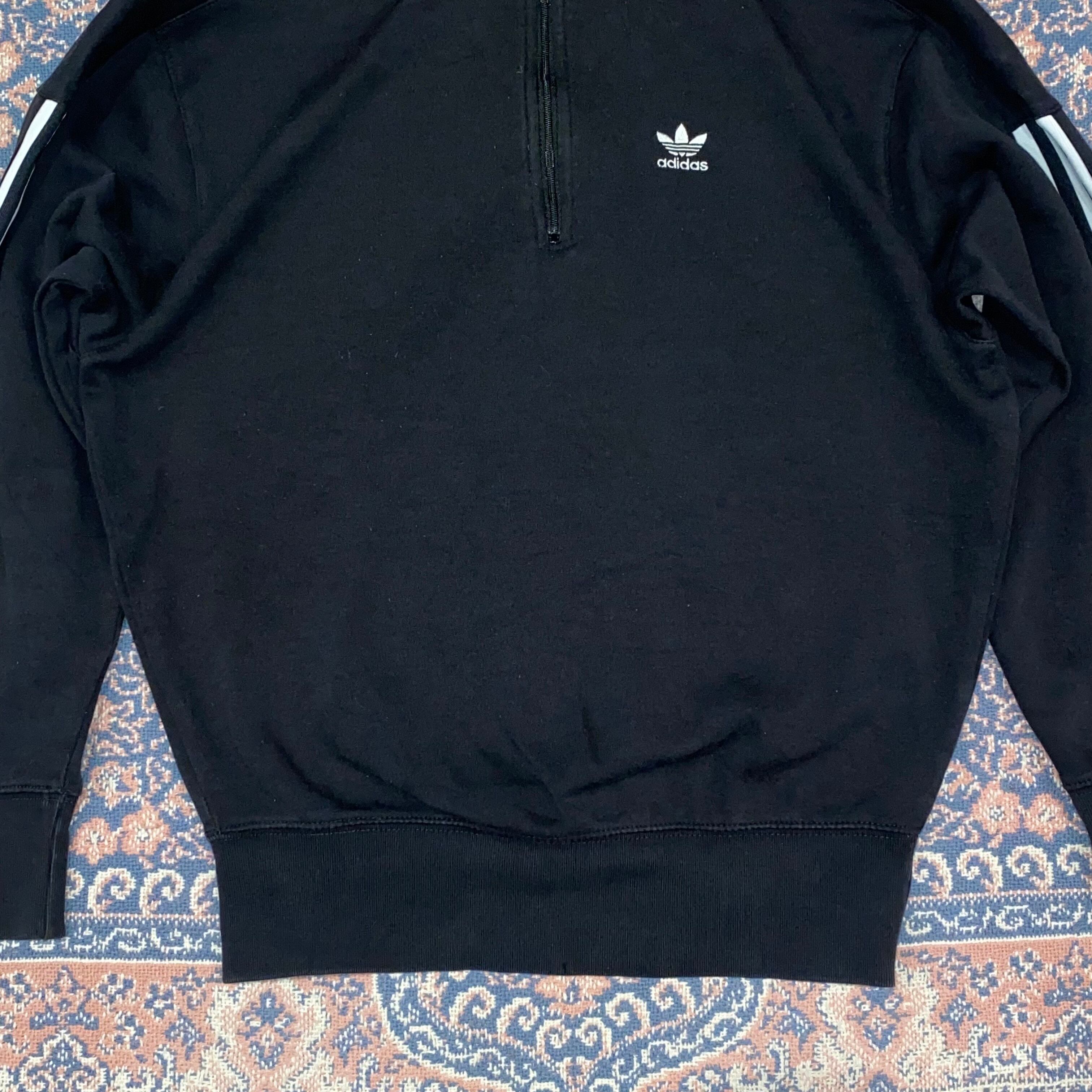 967 adidas スウェット シャツ ダブルニット ハーフジップ プルオーバー トレーナー アディダス y2k ブラック 古着 メンズ vintage XS