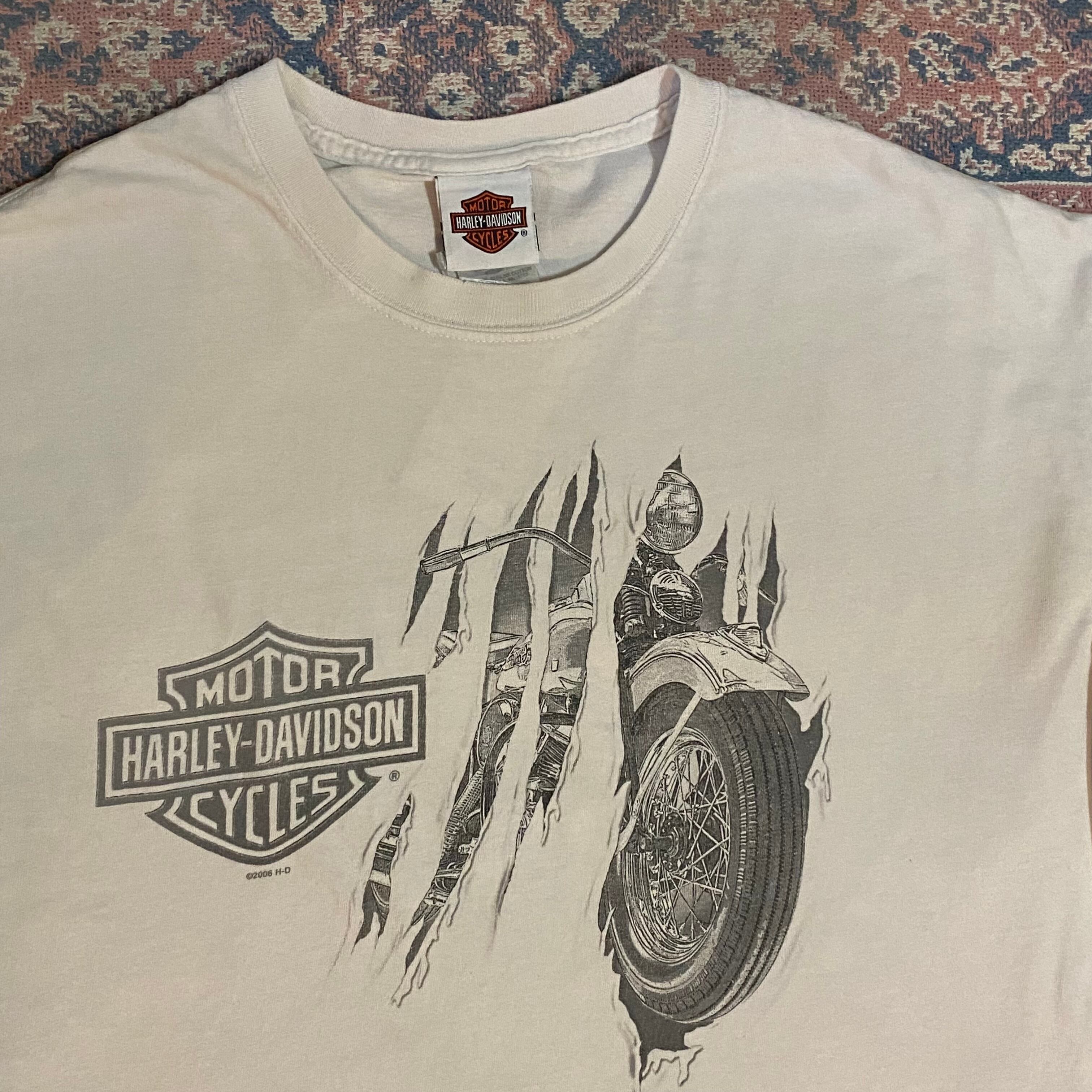 990 00s 00年代 HARLEY DAVIDSON USA製 ロンT 両面プリント ホワイト 白 ハーレー ダビッドソン 古着 メンズ vintage XL 2006