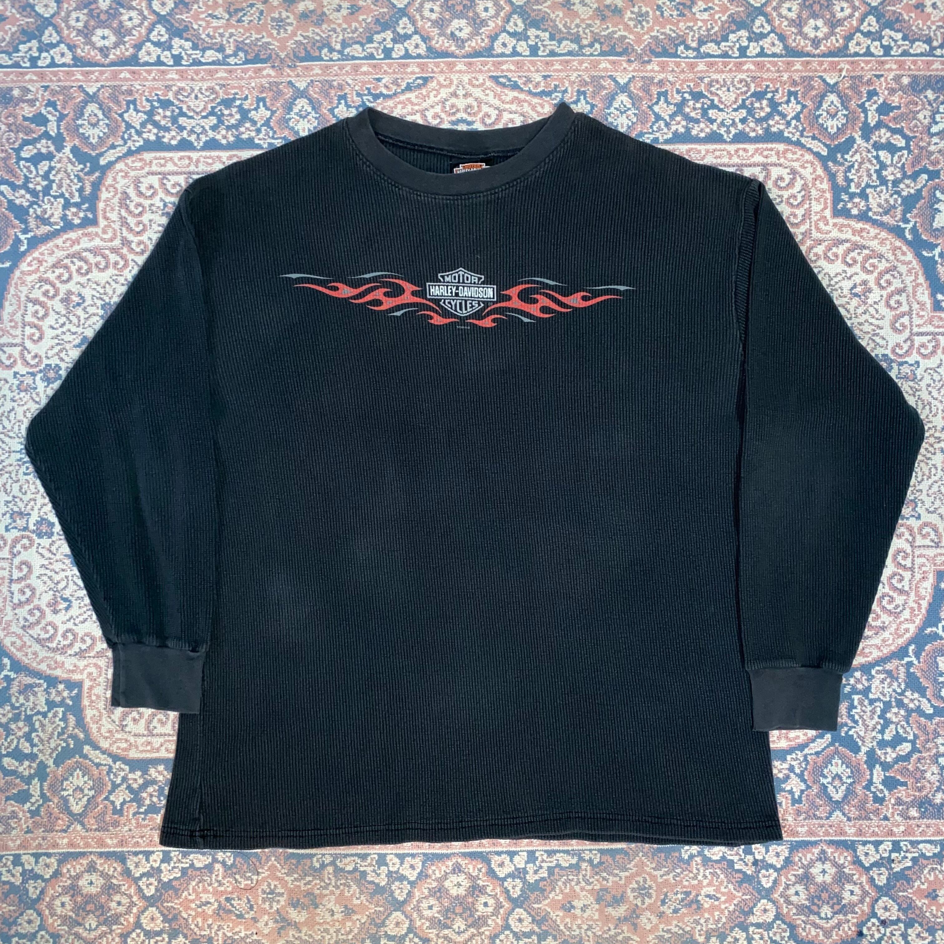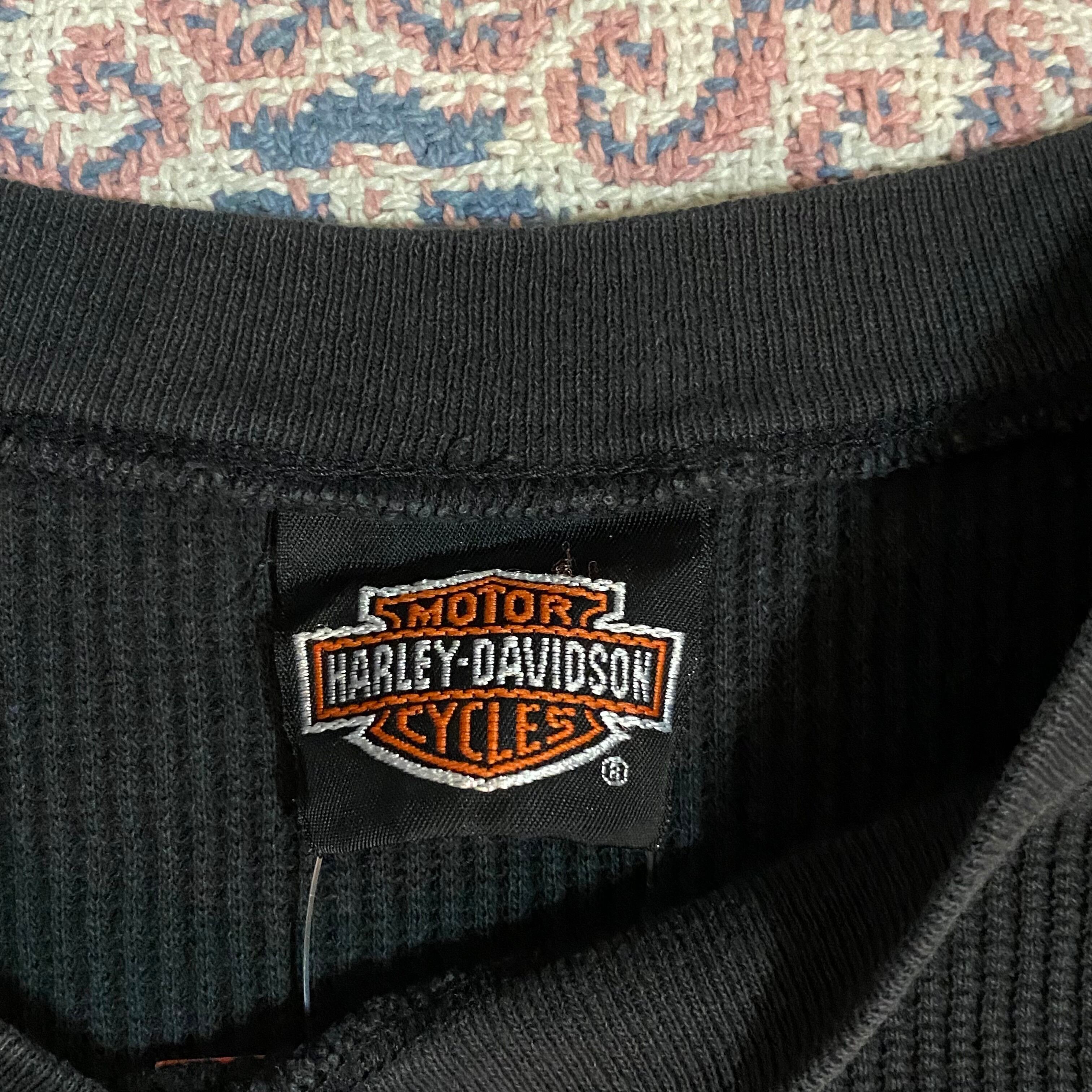 993 00s 00年代 HARLEY DAVIDSON USA製 サーマル ロンT 両面プリント ブラック 黒 ハーレー ダビッドソン 古着 メンズ vintage XL
