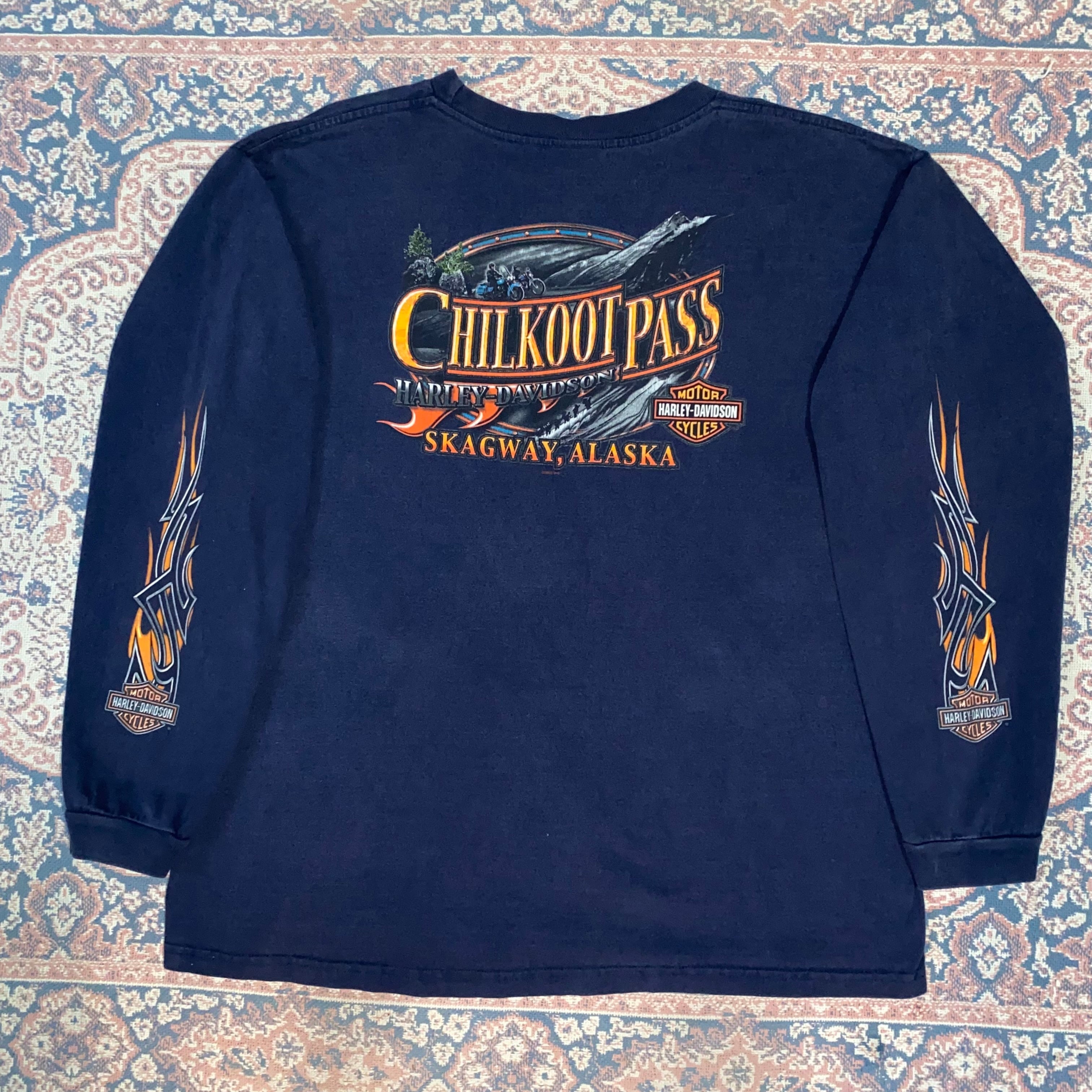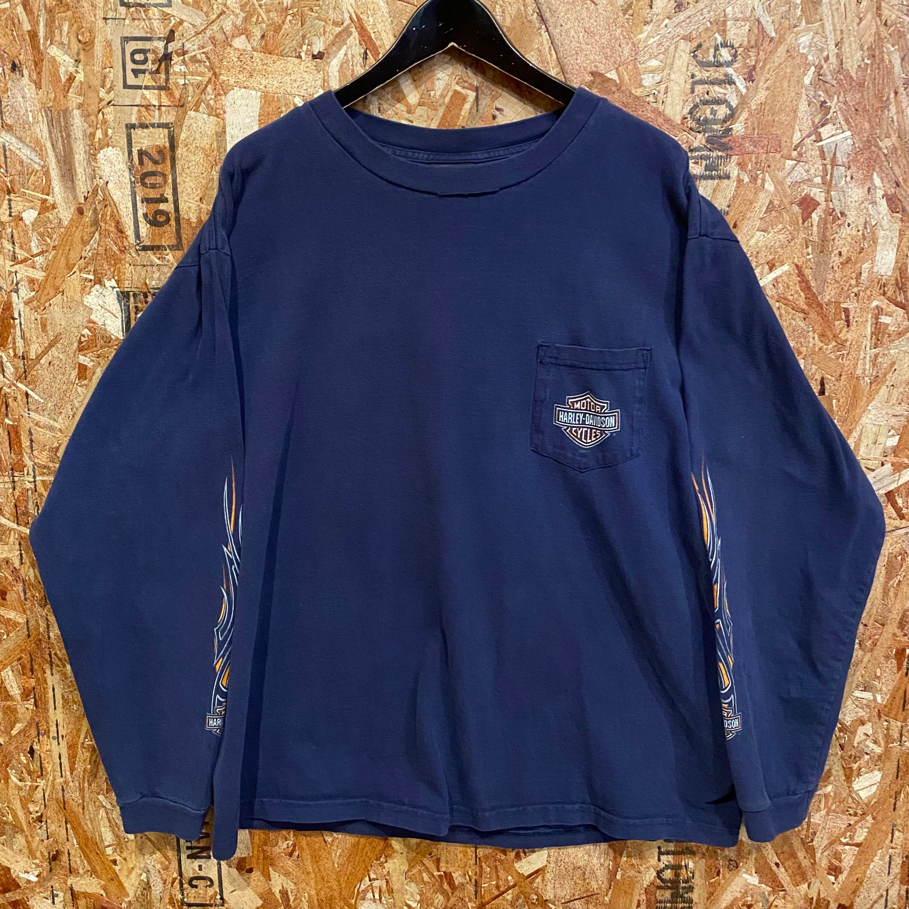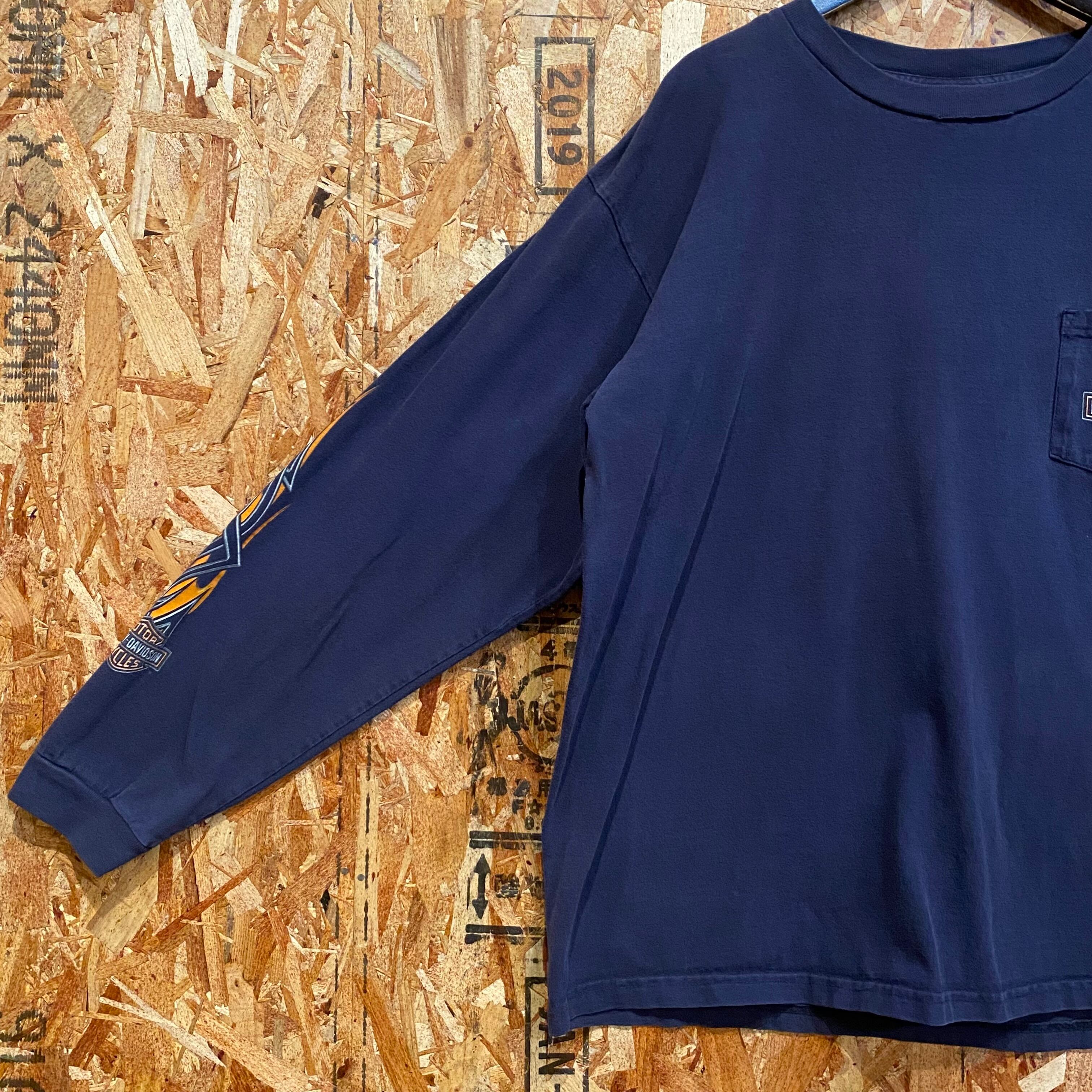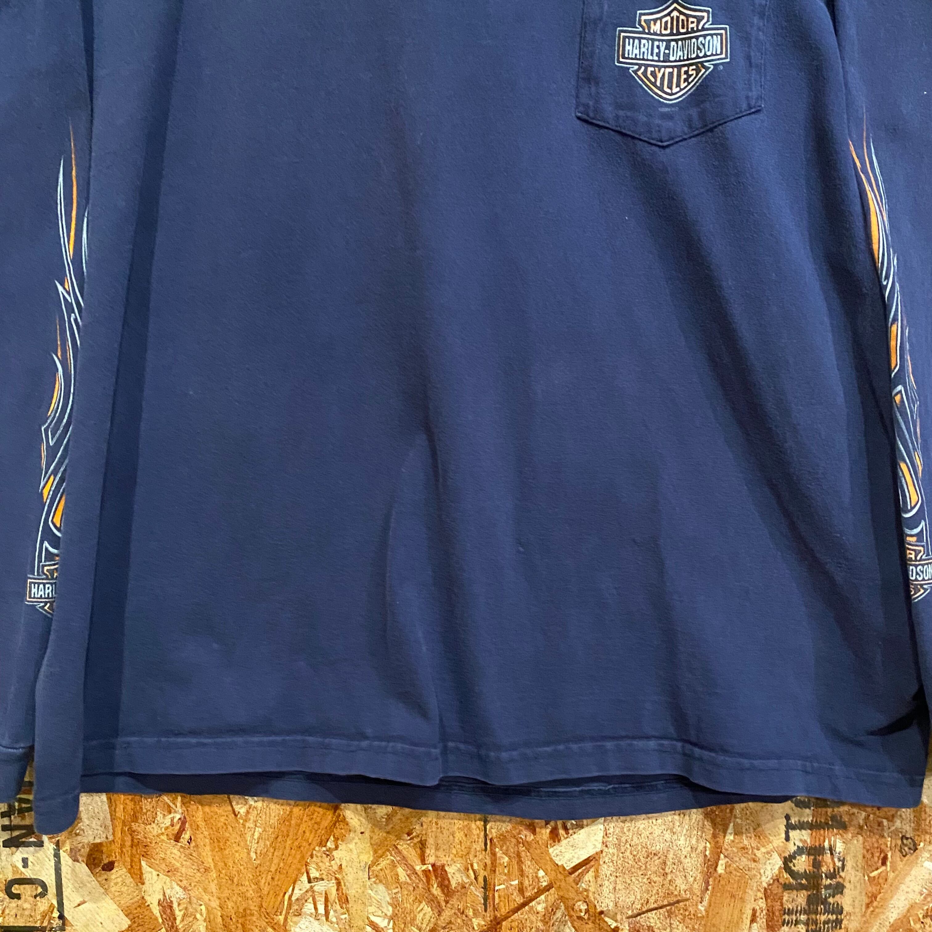 995 00s 00年代 HARLEY DAVIDSON USA製 ロンT ネイビー 紺 両面プリント ハーレー ダビッドソン 古着 メンズ vintage XXL
