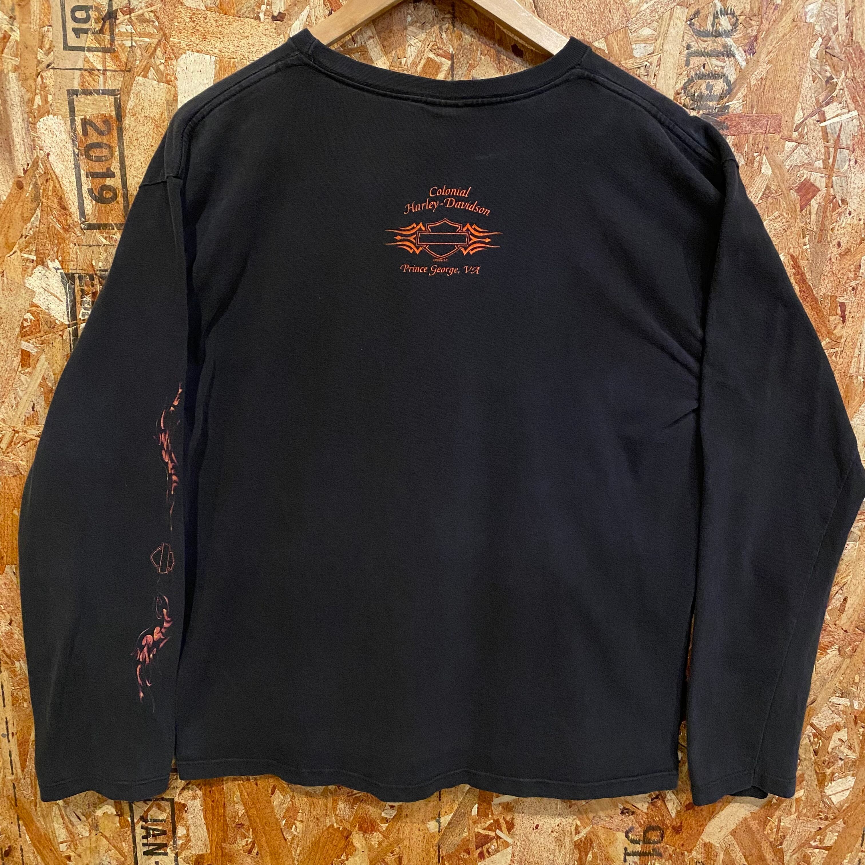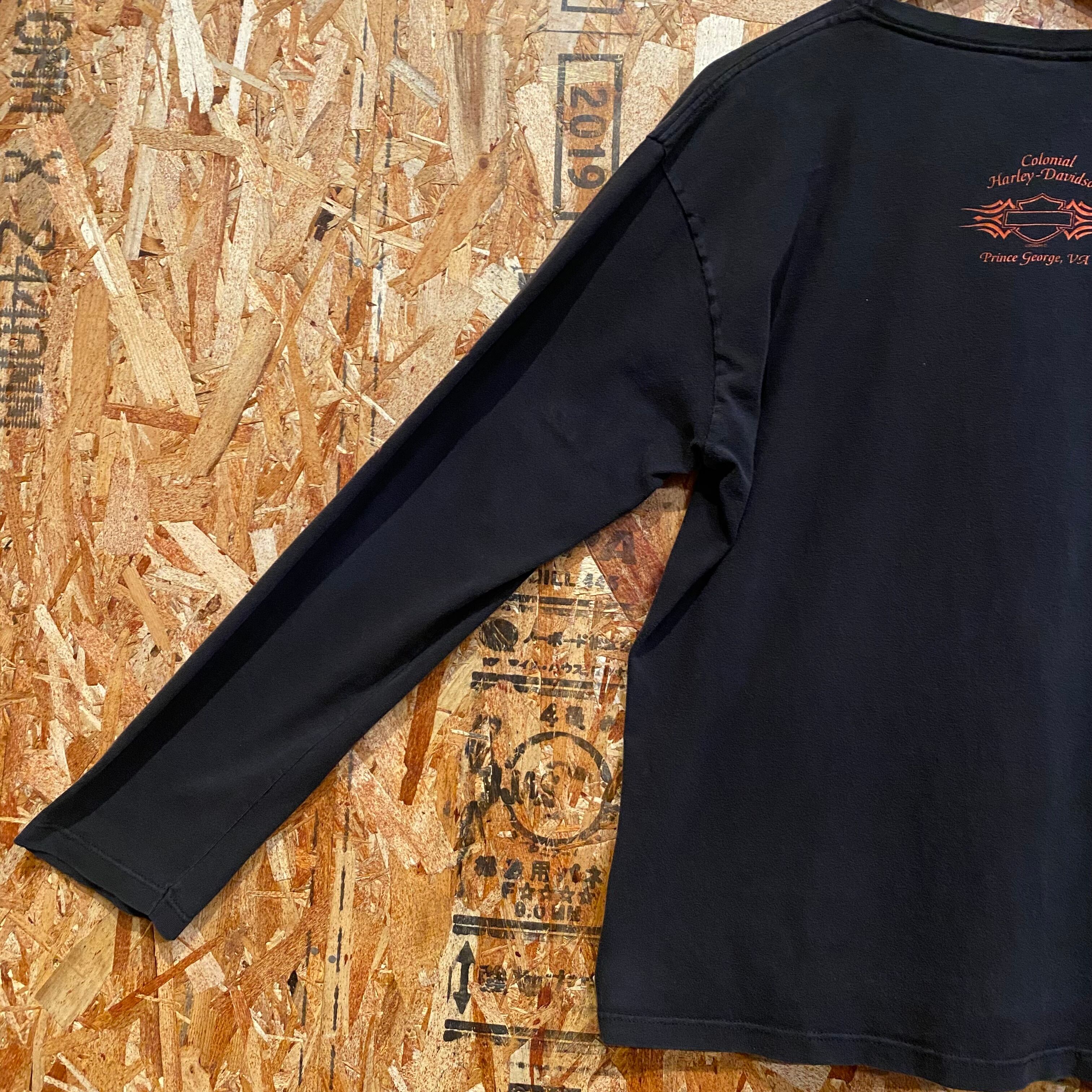 1013 HARLEY DAVIDSON ロンT ブラック 黒 炎 ハーレー ダビッドソン 古着 メンズ vintage XXL