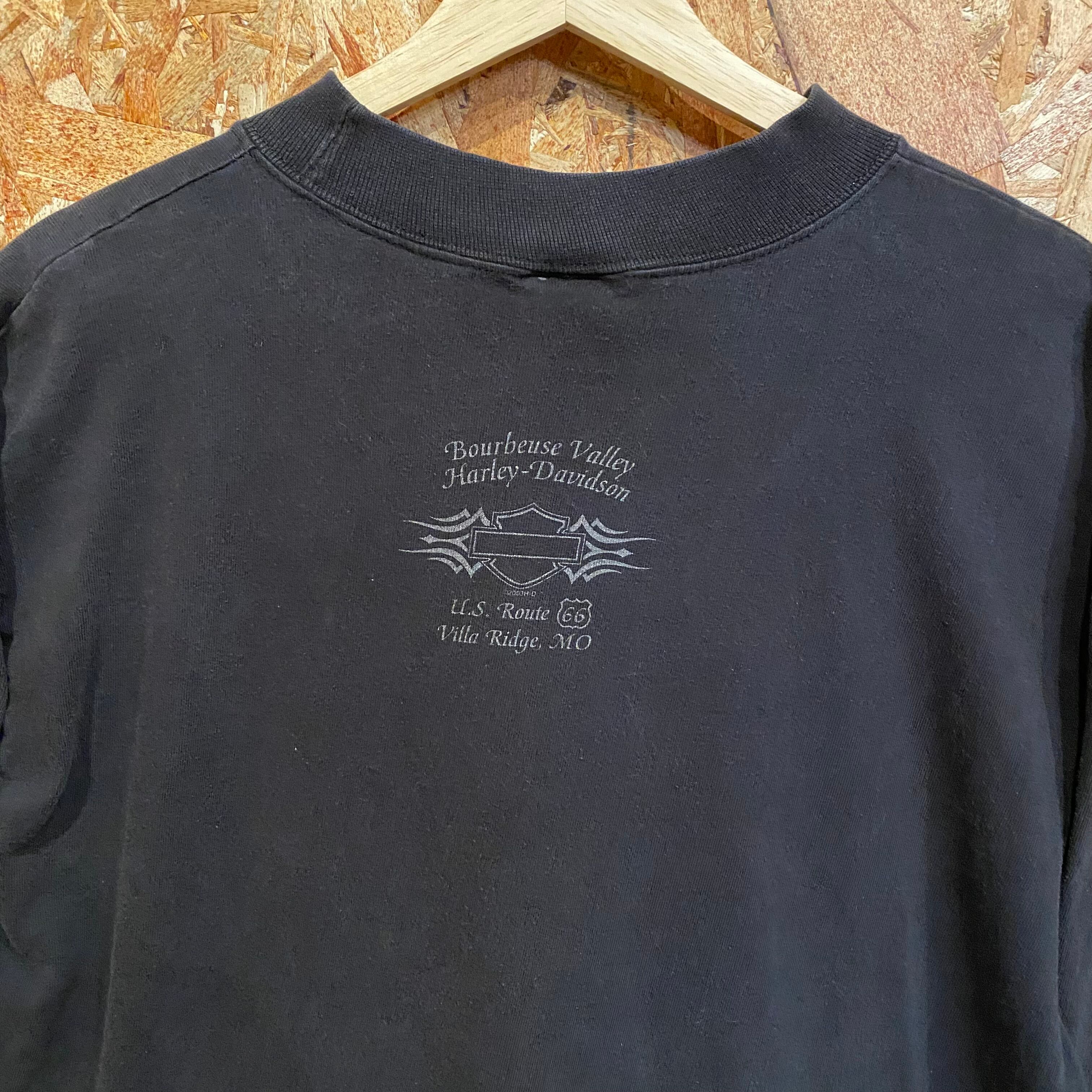 1016 00s 00年代 HARLEY DAVIDSON ロンT ブラック 黒 羽 ハーレー ダビッドソン 古着 メンズ vintage 2XL