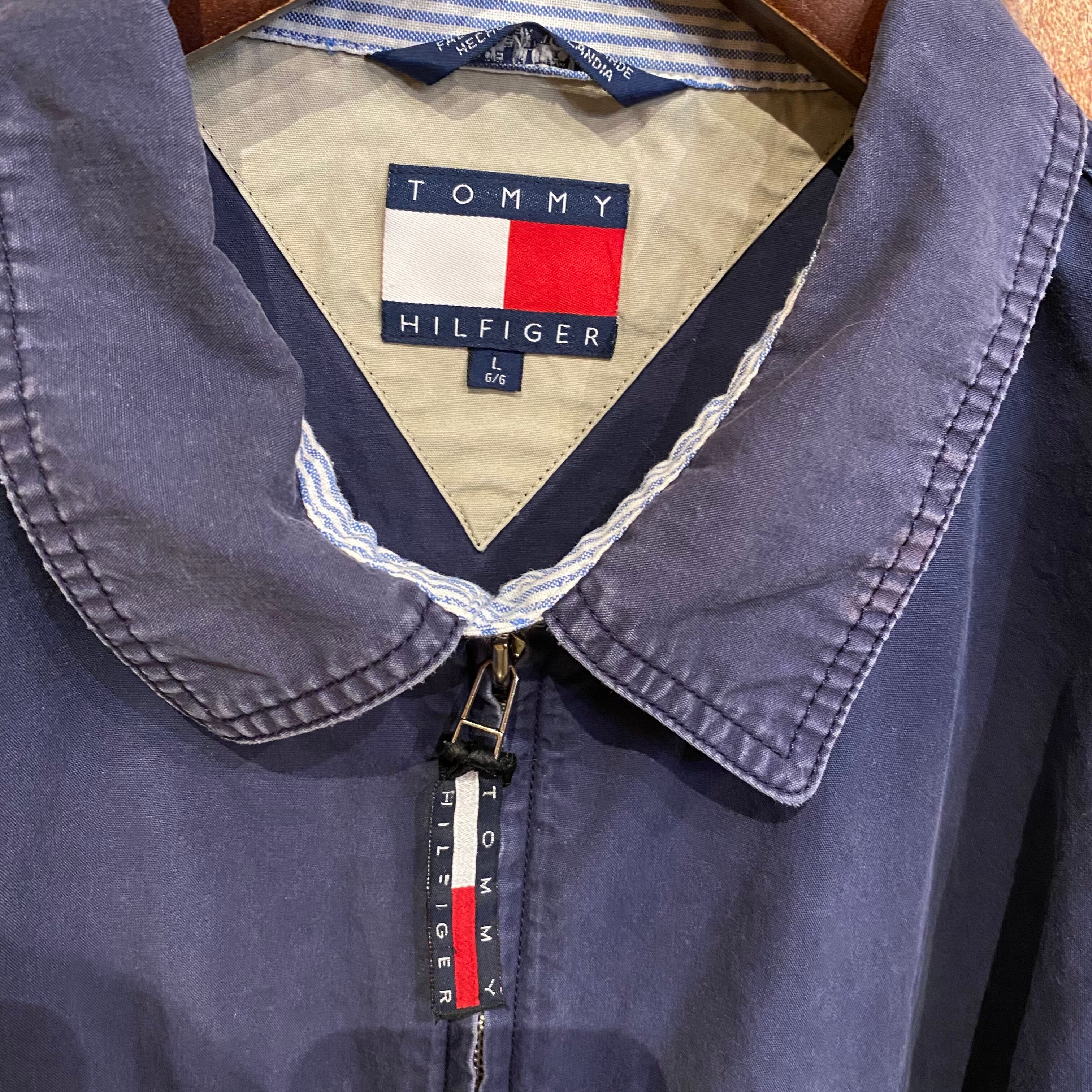 1037 90s 90年代 TOMMY HILFIGER スイングトップ 旧ロゴ トミー ヒルフィガー ブルゾン ジャケット ネイビー 古着 メンズ vintage L