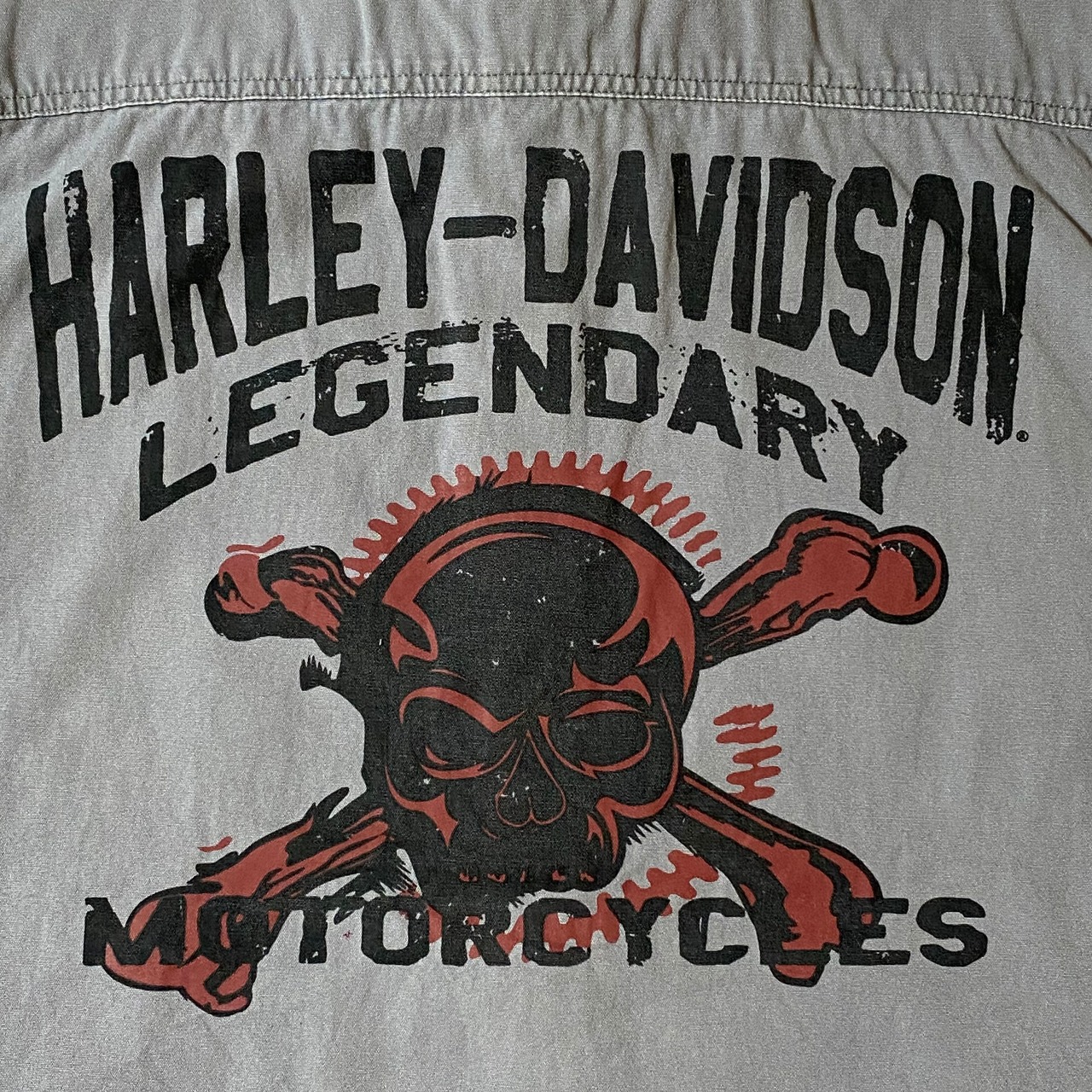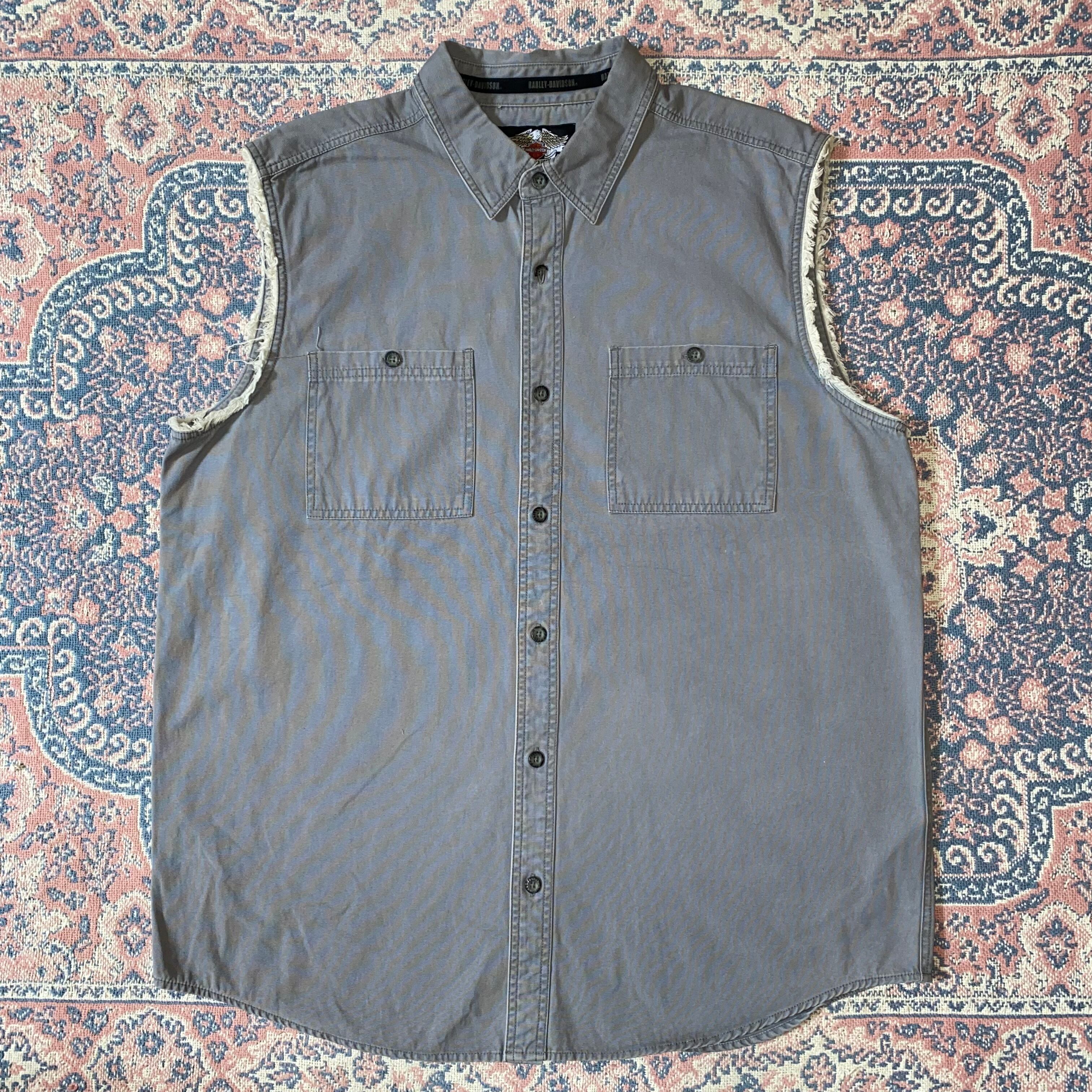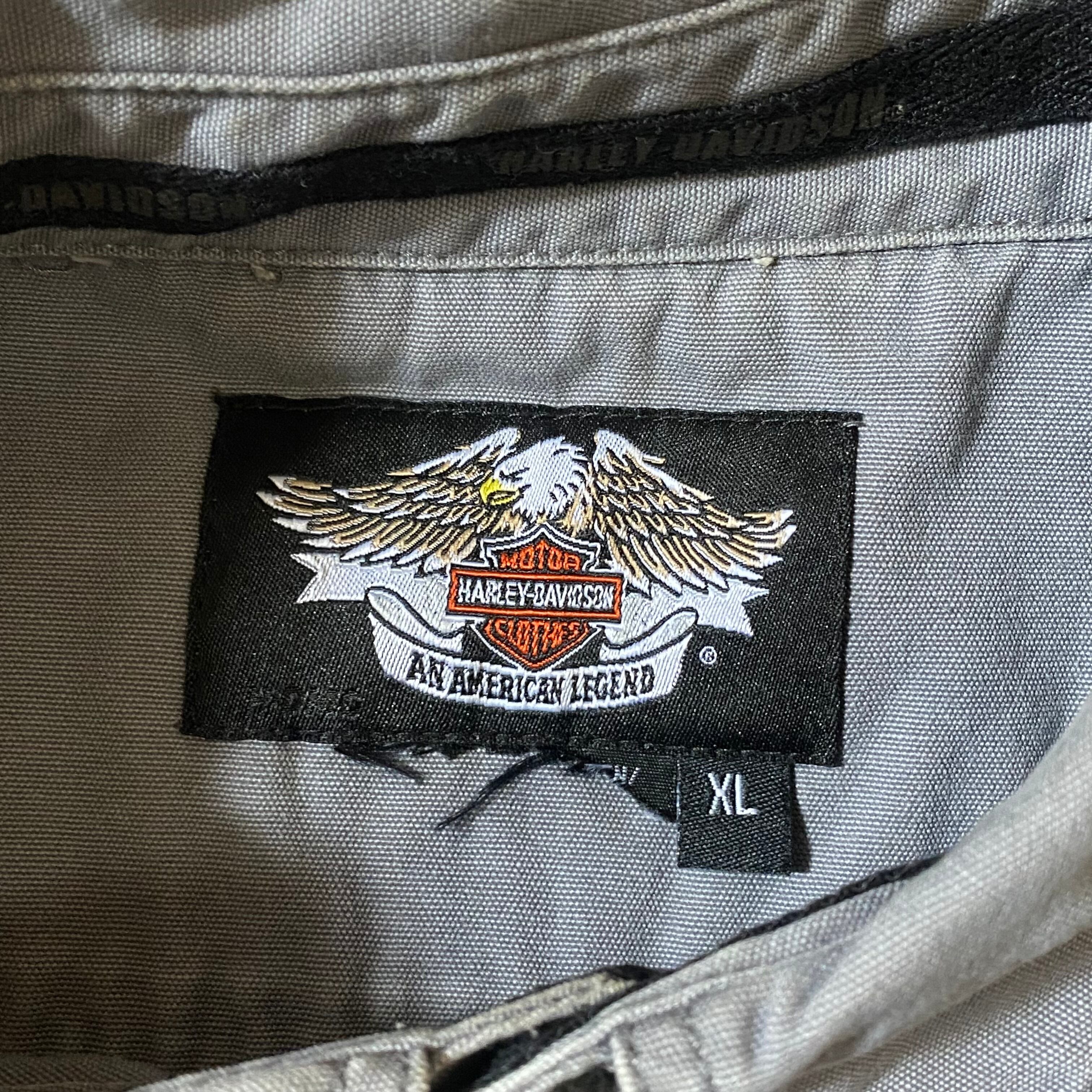 1083 00s 00年代 HARLEY DAVIDSON ベスト シャツ ハーレー ダビッドソン イーグル ロゴ グレー 古着 メンズ vintage XL
