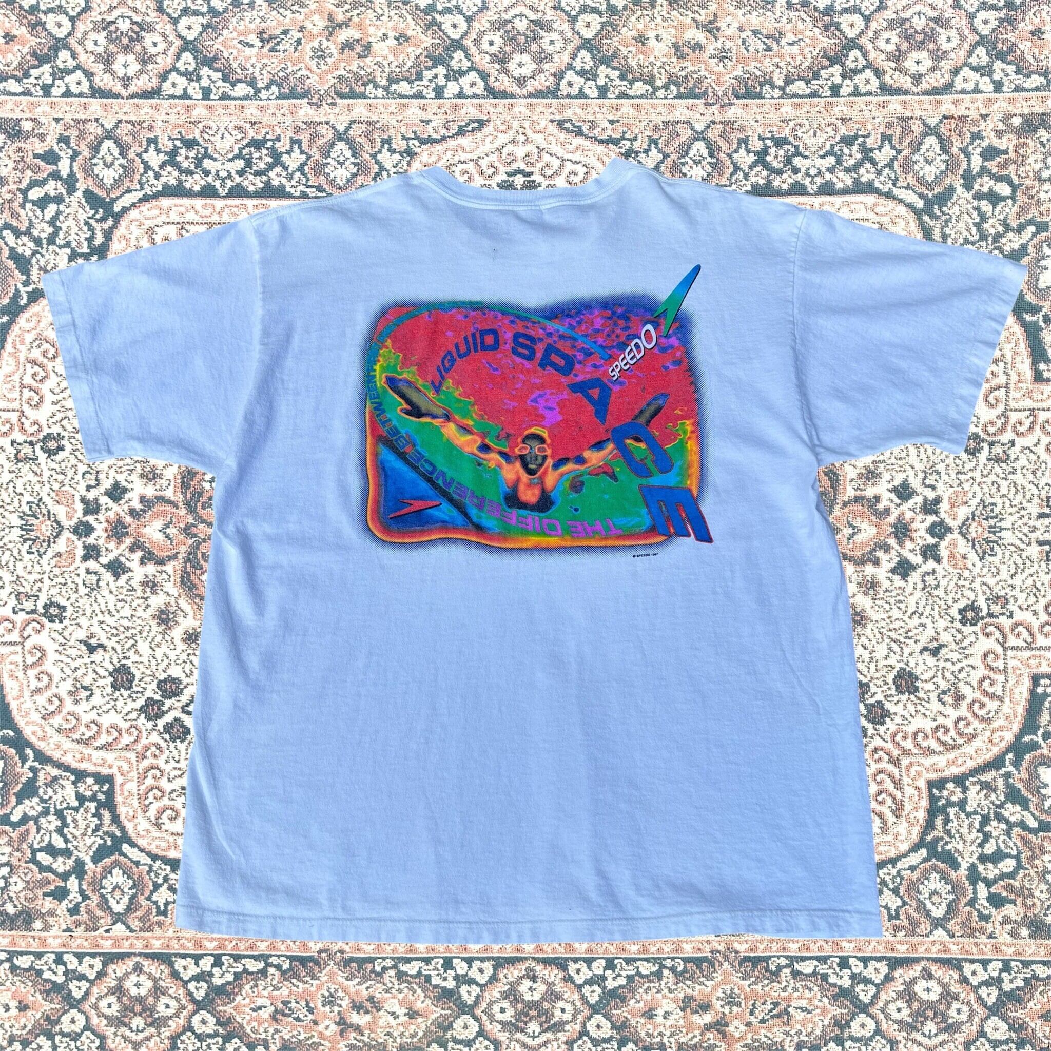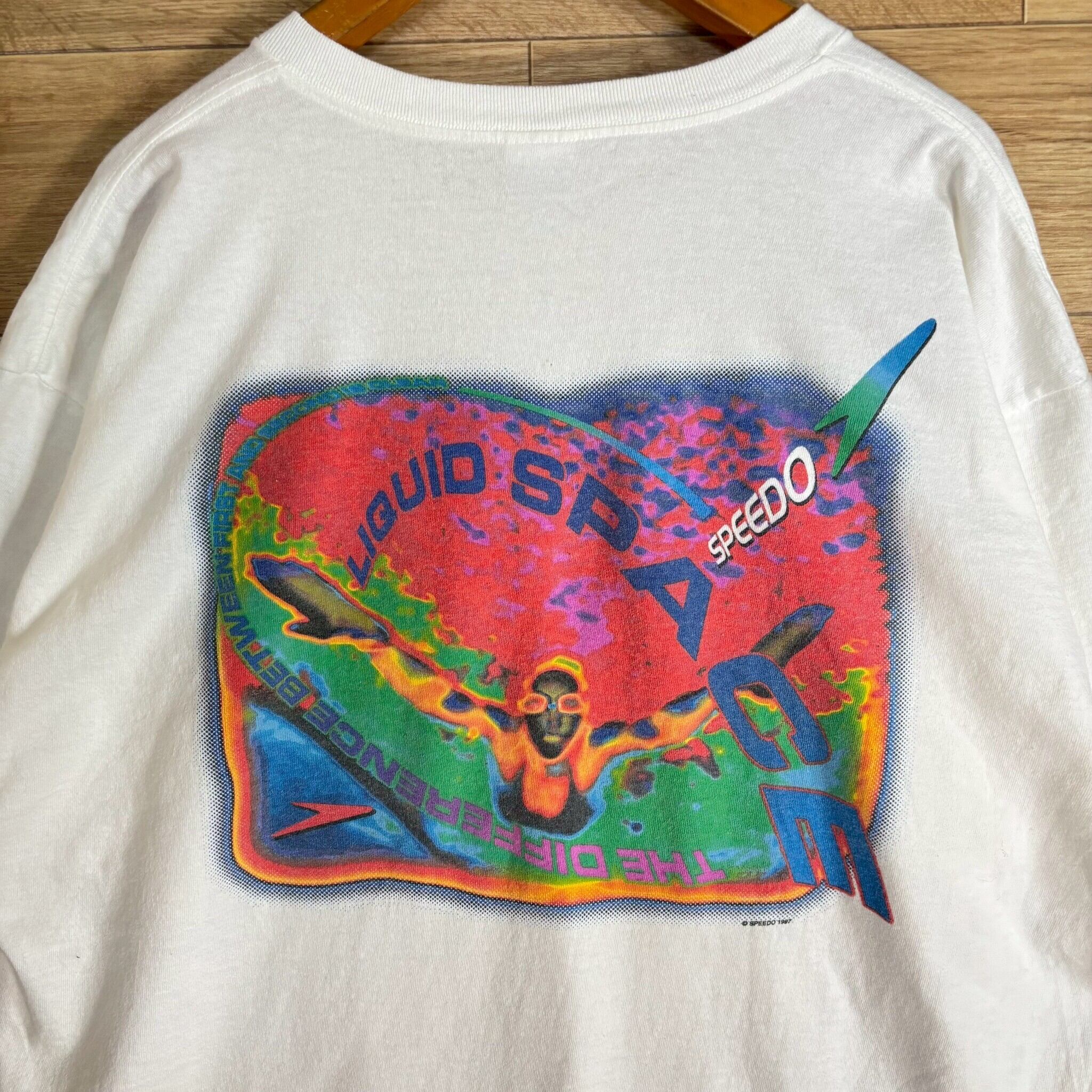 1099 90s〜 90年代〜 SPEED シングルステッチ ホワイト 白 競泳 スポーツ 1997 スピード Tシャツ 古着 メンズ vintage XL
