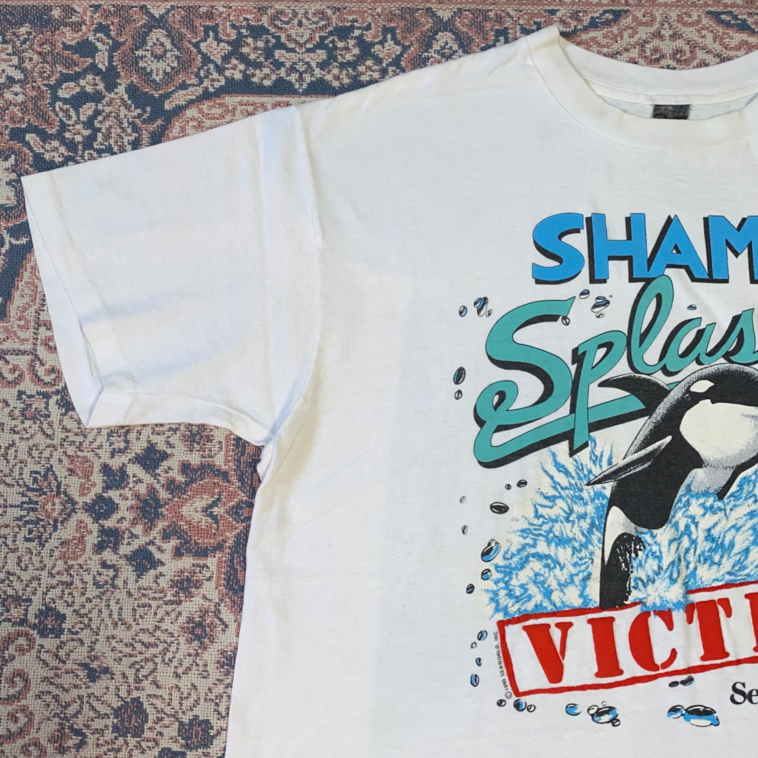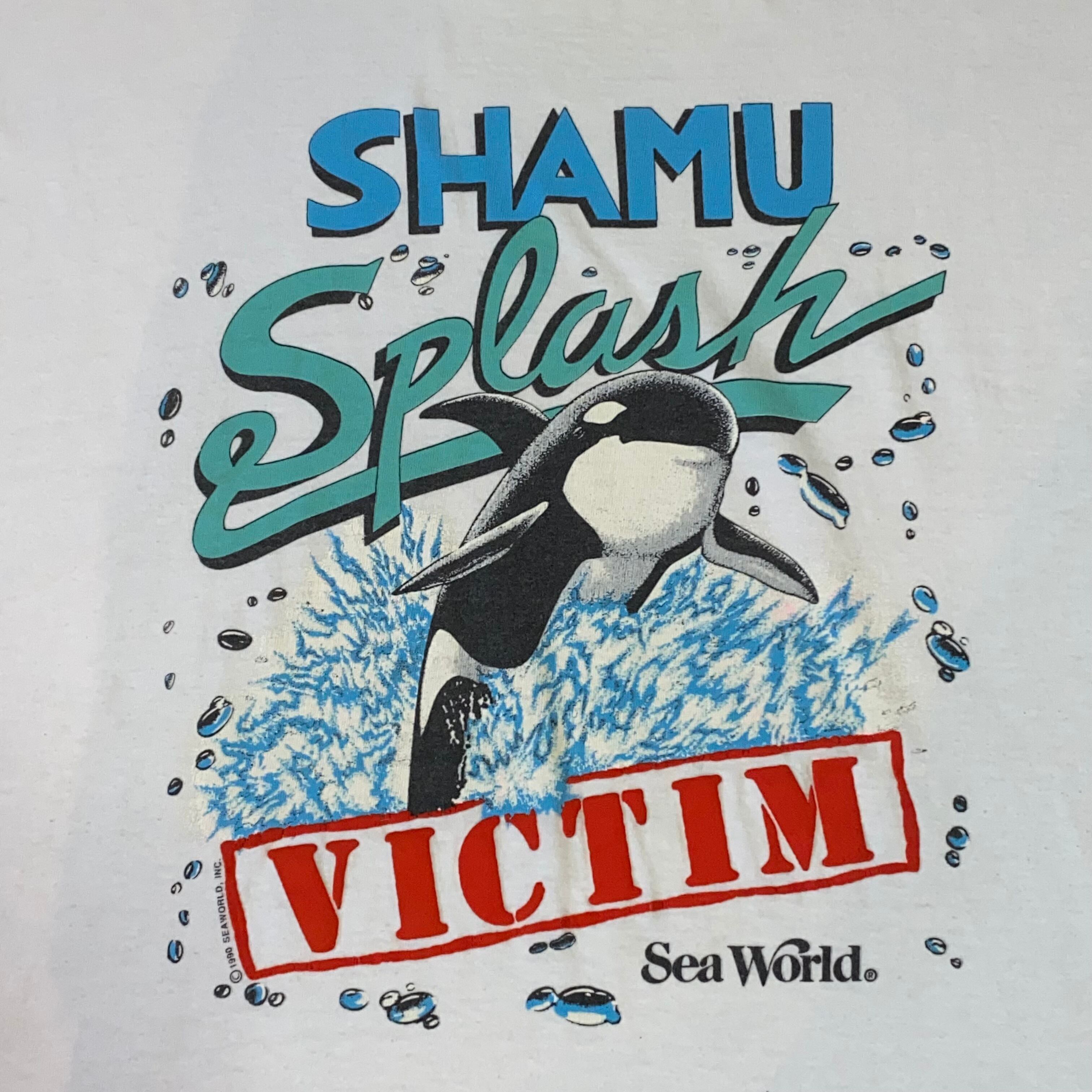1115 シャチ プリント Tシャツ SHAMU 発泡 シーワールド アニマル 白 ホワイト 古着 メンズ vintage