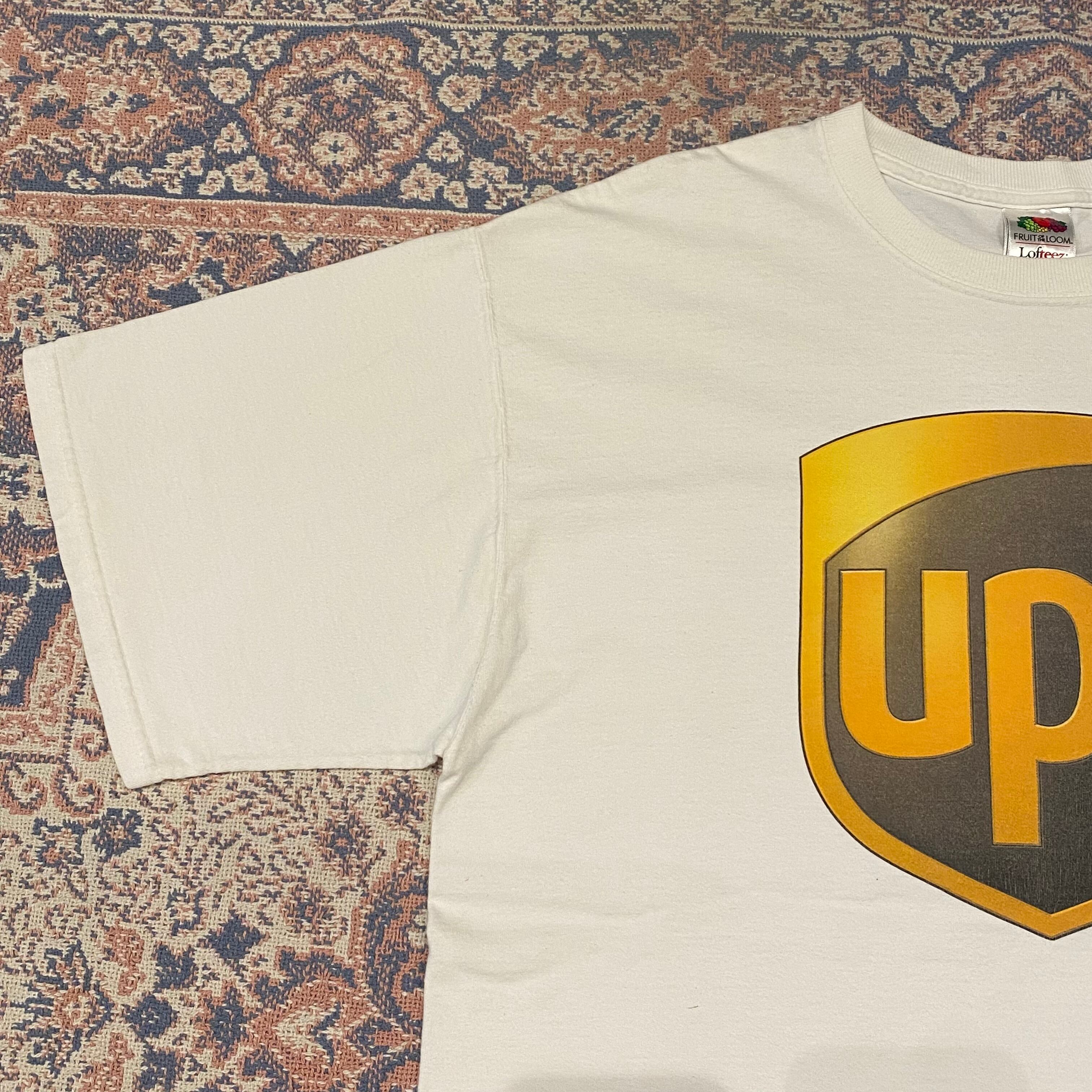 1128 90s〜 90年代〜 UPS 企業ロゴ ユナイテッド パーセル サービス フルーツオブザルーム ホワイト 白 Tシャツ 古着 メンズ vintage XL