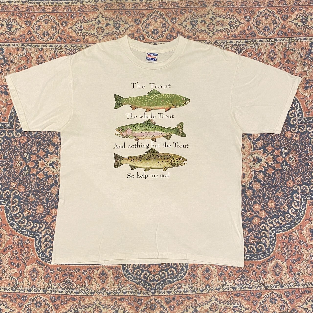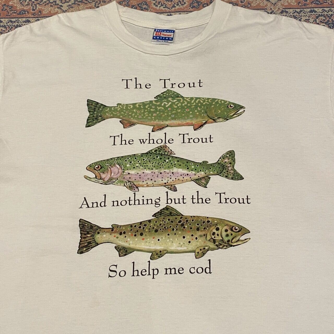 1136 90s 90年代 Hanes The Trout ギャグ・フィッシング ギフトショップ系 ユーモア Tシャツ メンズ 古着 vintage