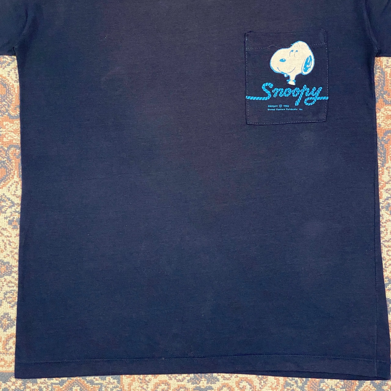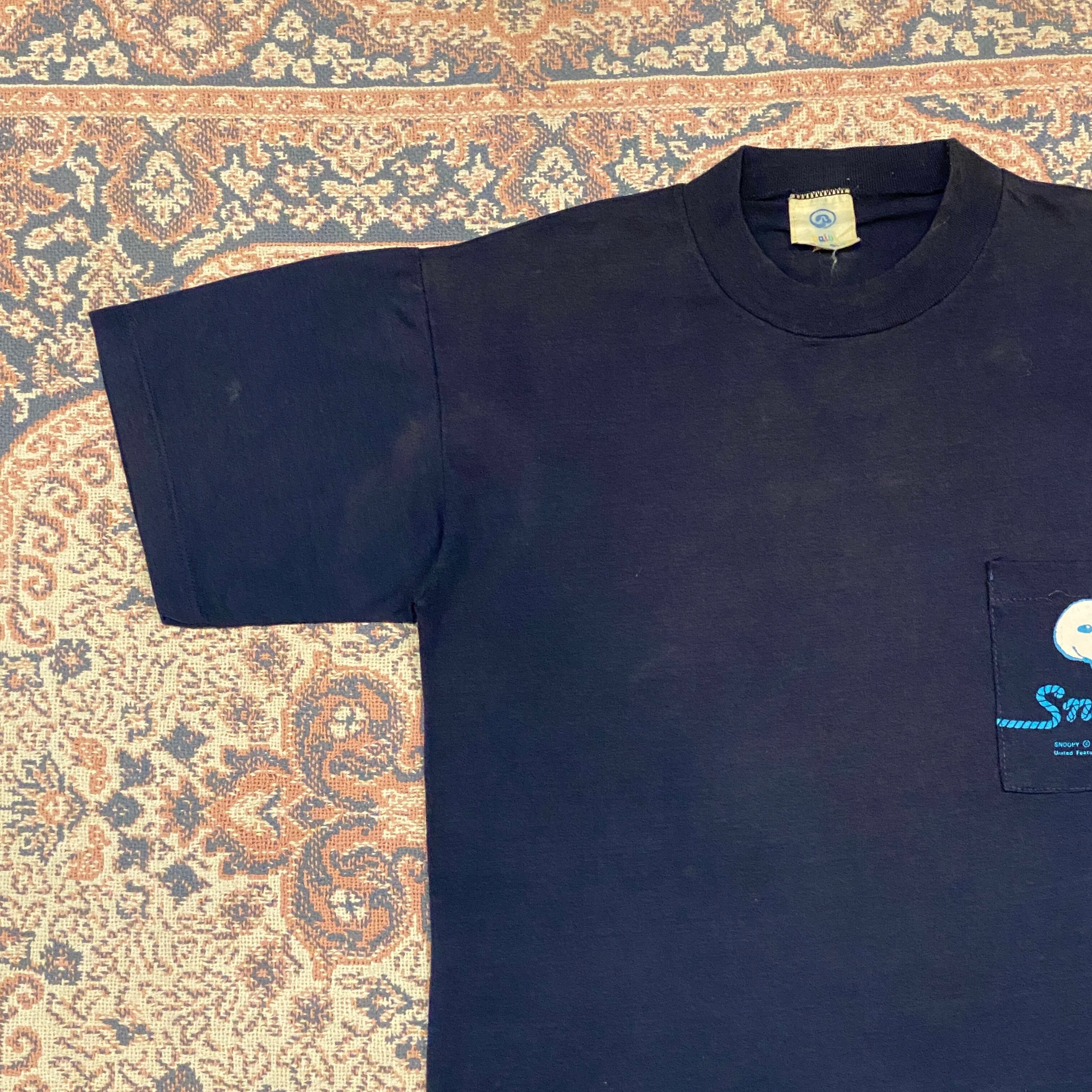1169 90s 90年代 SNOOPY “RAINBOW SURFING” ポケット付きTシャツ SNOOPY SPORTSシリーズ 両面プリント メンズ 古着 vintage