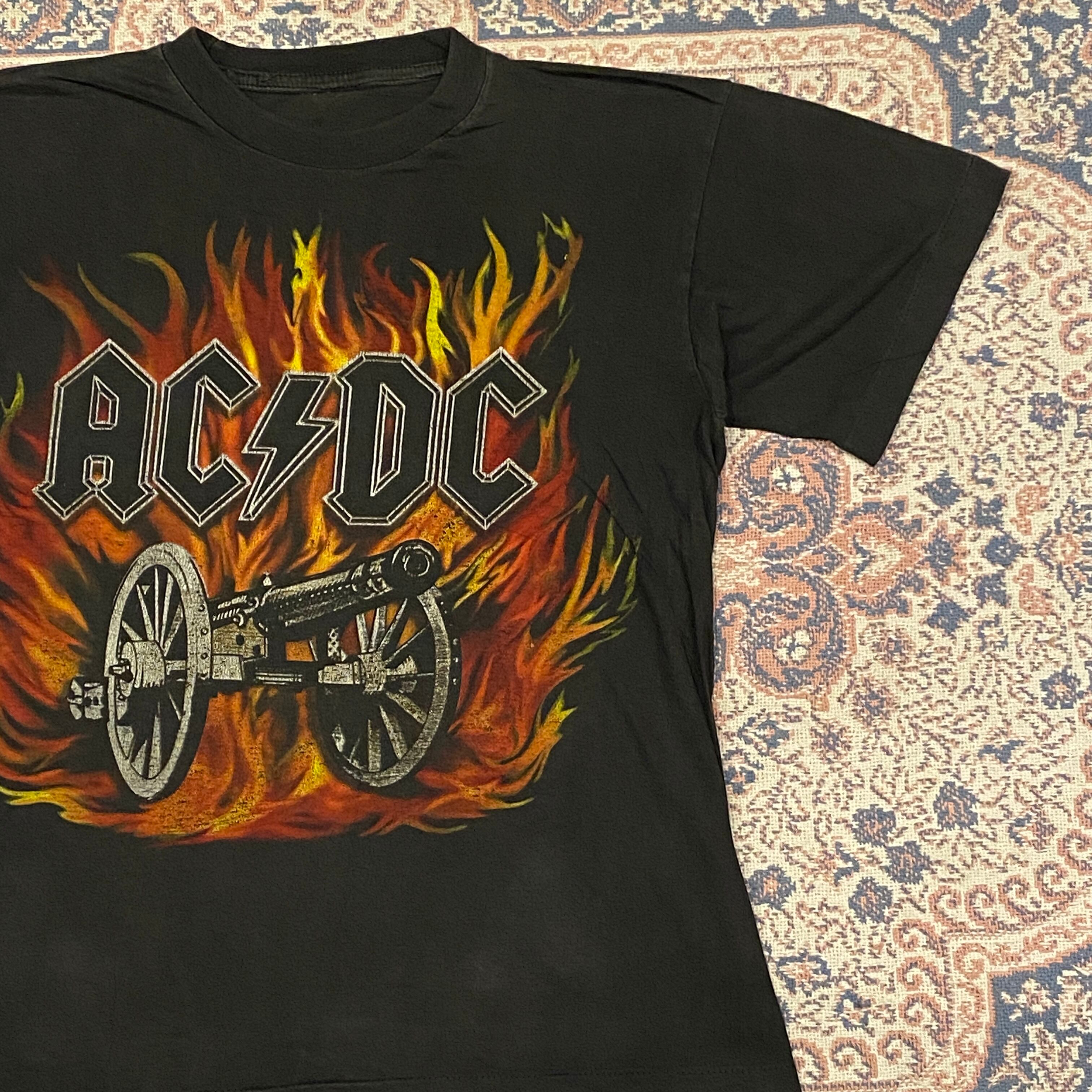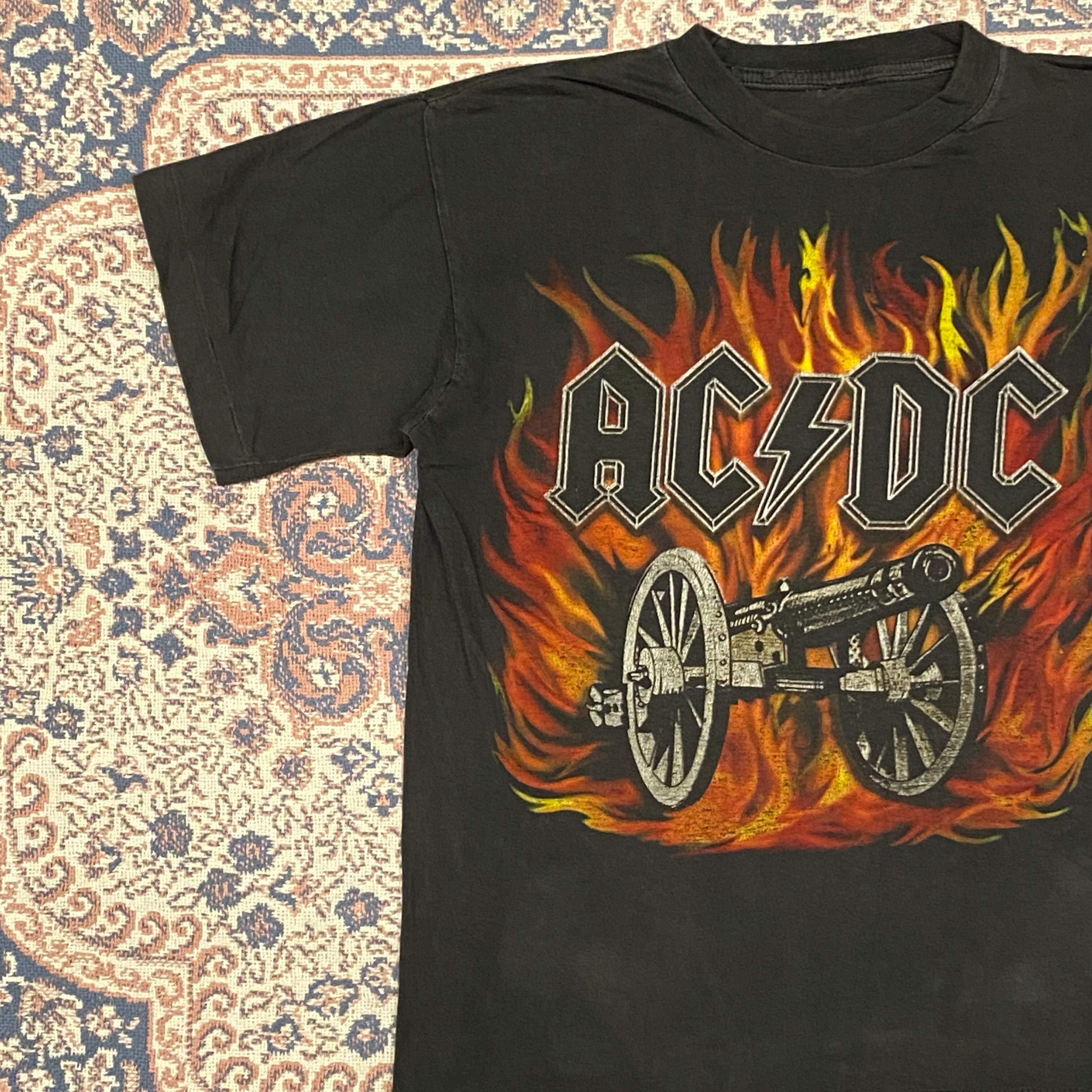 1172 00s 00年代 AC/DC 悪魔の招待状 ロック バンド ワールドツアー Tシャツ 炎 バンT 黒 ブラック 大砲 ジャケ写 古着 メンズ vintage シングルステッチ