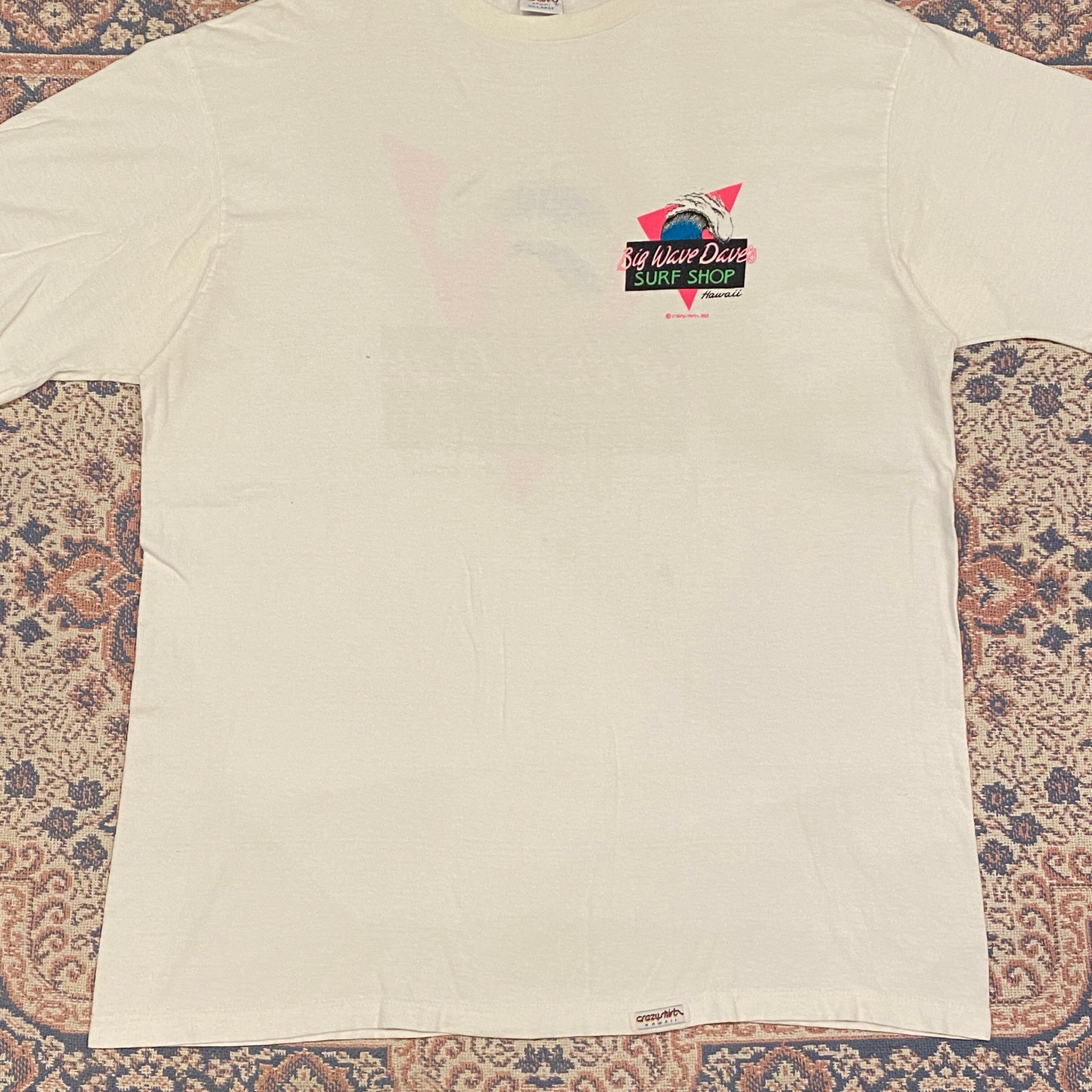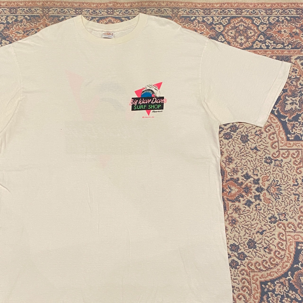 1223 80s 80年代 USA製 Big Wave Dave's SURF SHOP サーフィン ハワイ ホワイト 白 Tシャツ クレイジー シャツ 古着 メンズ vintage XXL