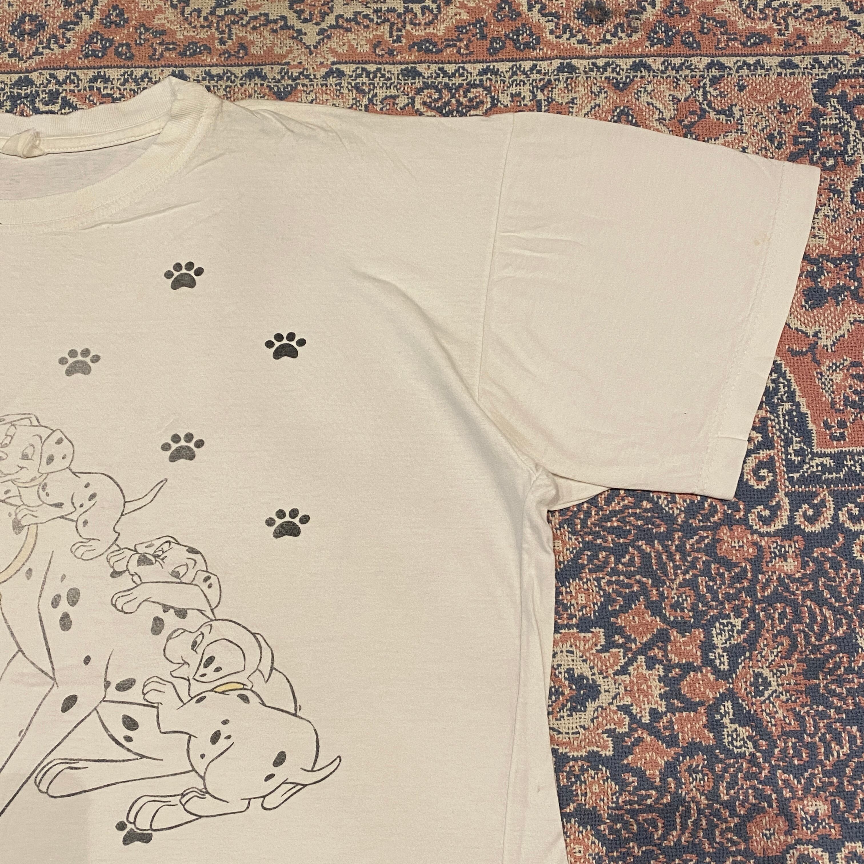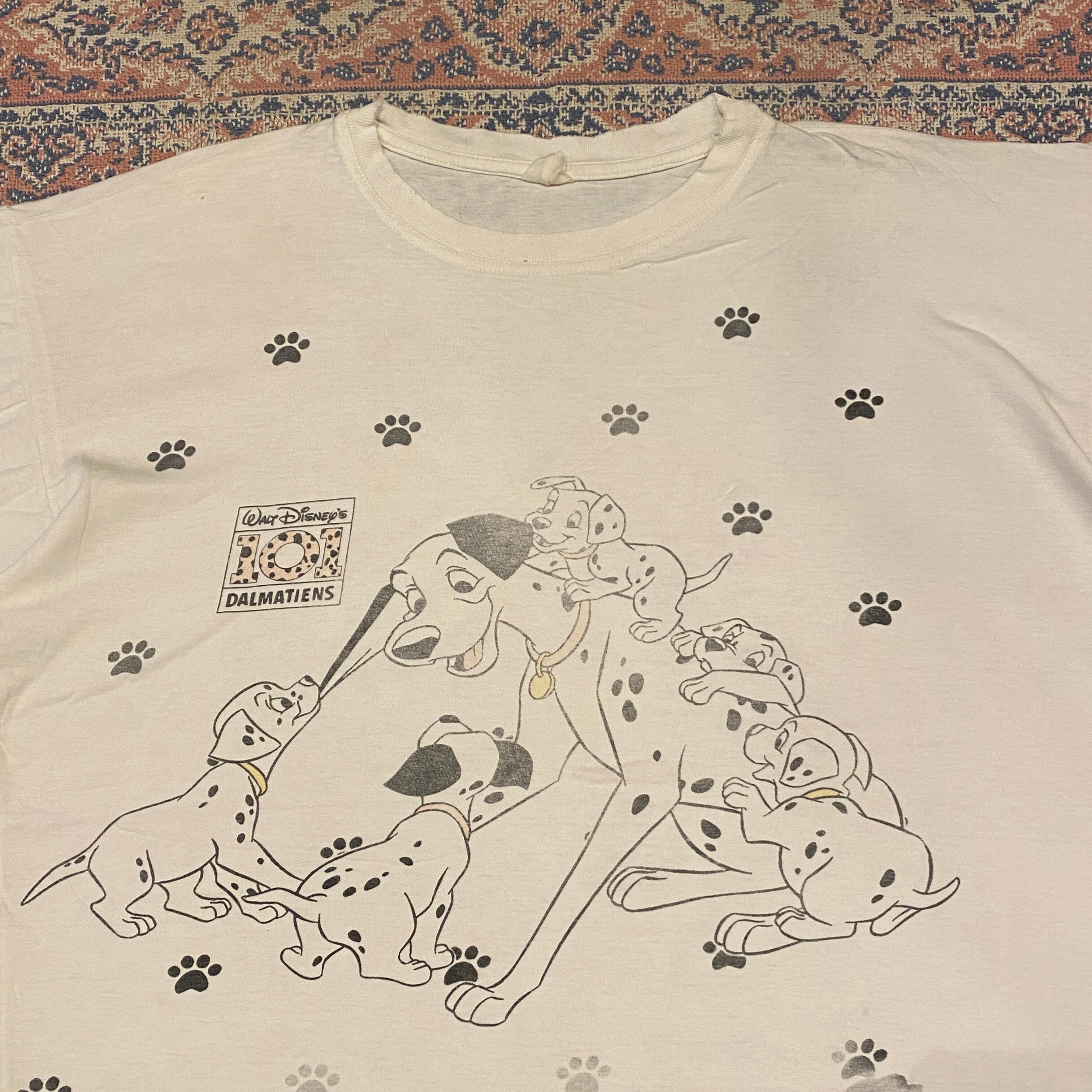 1272 80s〜 80年代〜 101匹ワンちゃん Disney プリント Tシャツ ディズニー キャラクター アニメ 白 ホワイト ダルメシアン 犬 古着 メンズ vintage