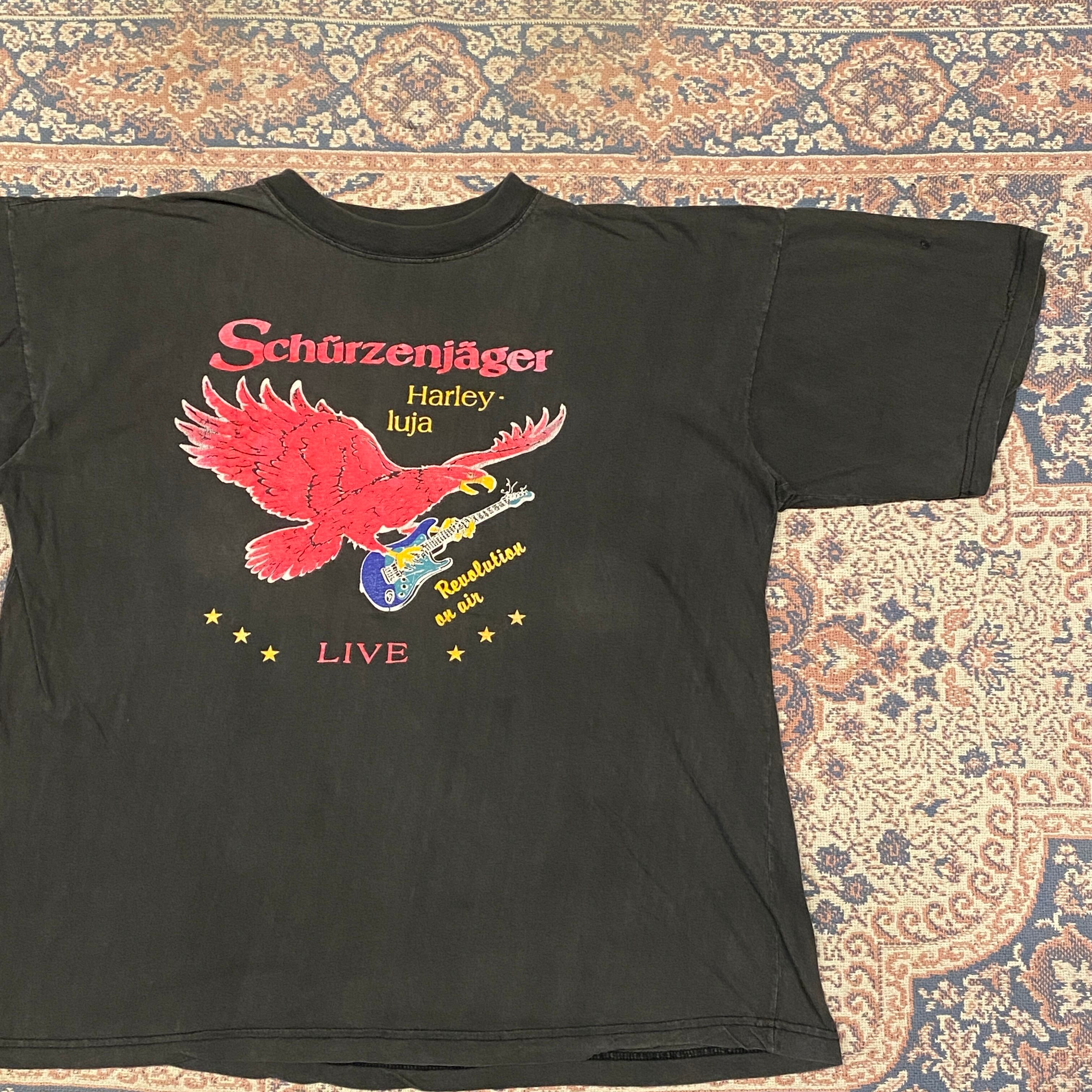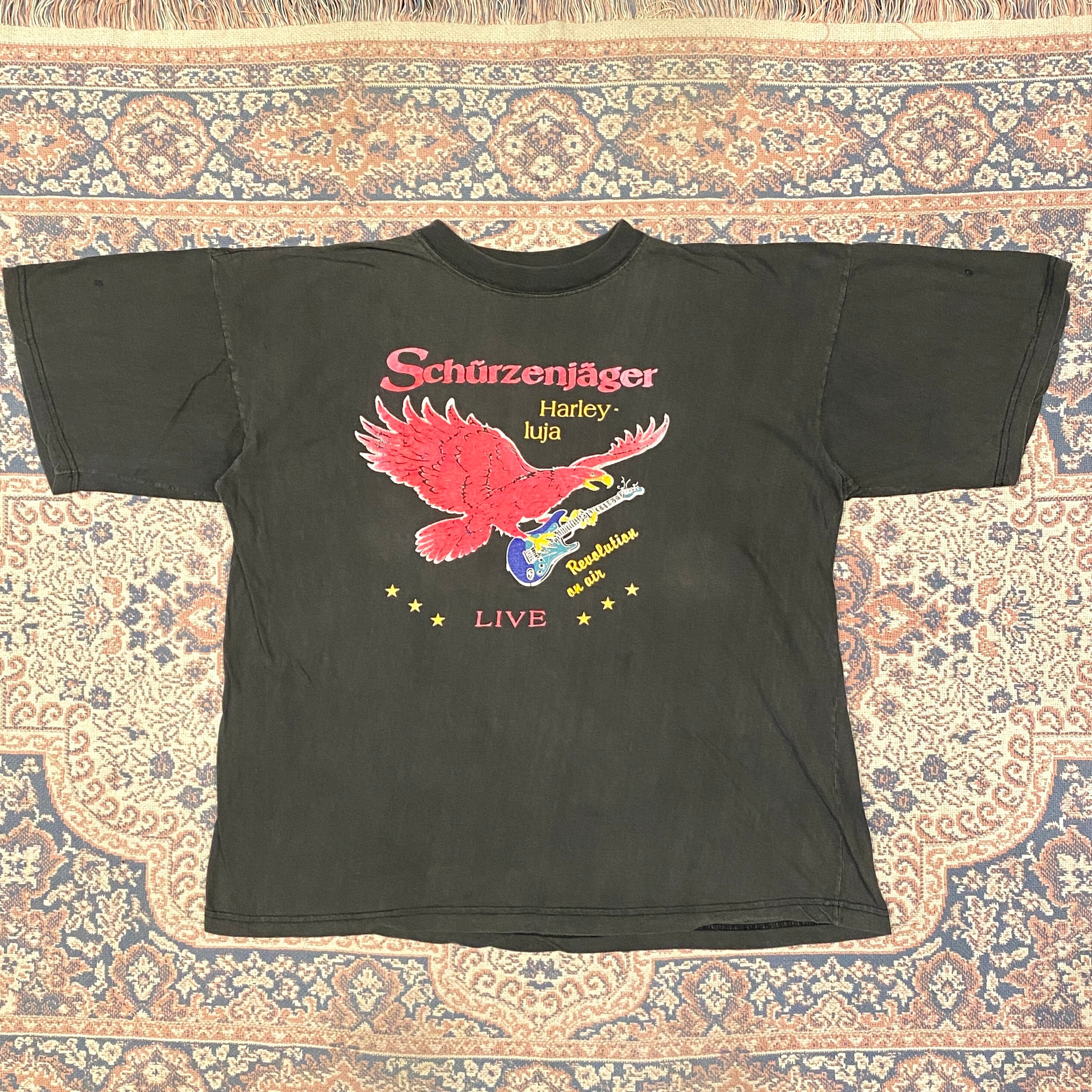 1292 90s 90年代 Schurzenjager ユーロ Tシャツ ロック イーグル 両面プリント 黒 ブラック 古着 メンズ vintage