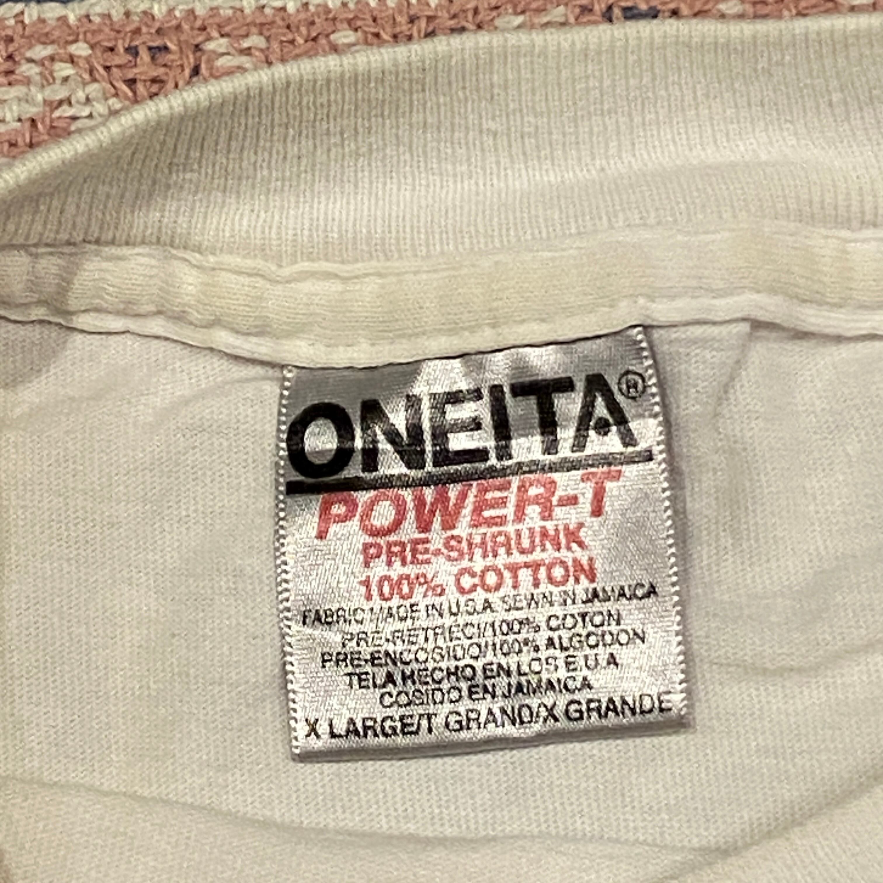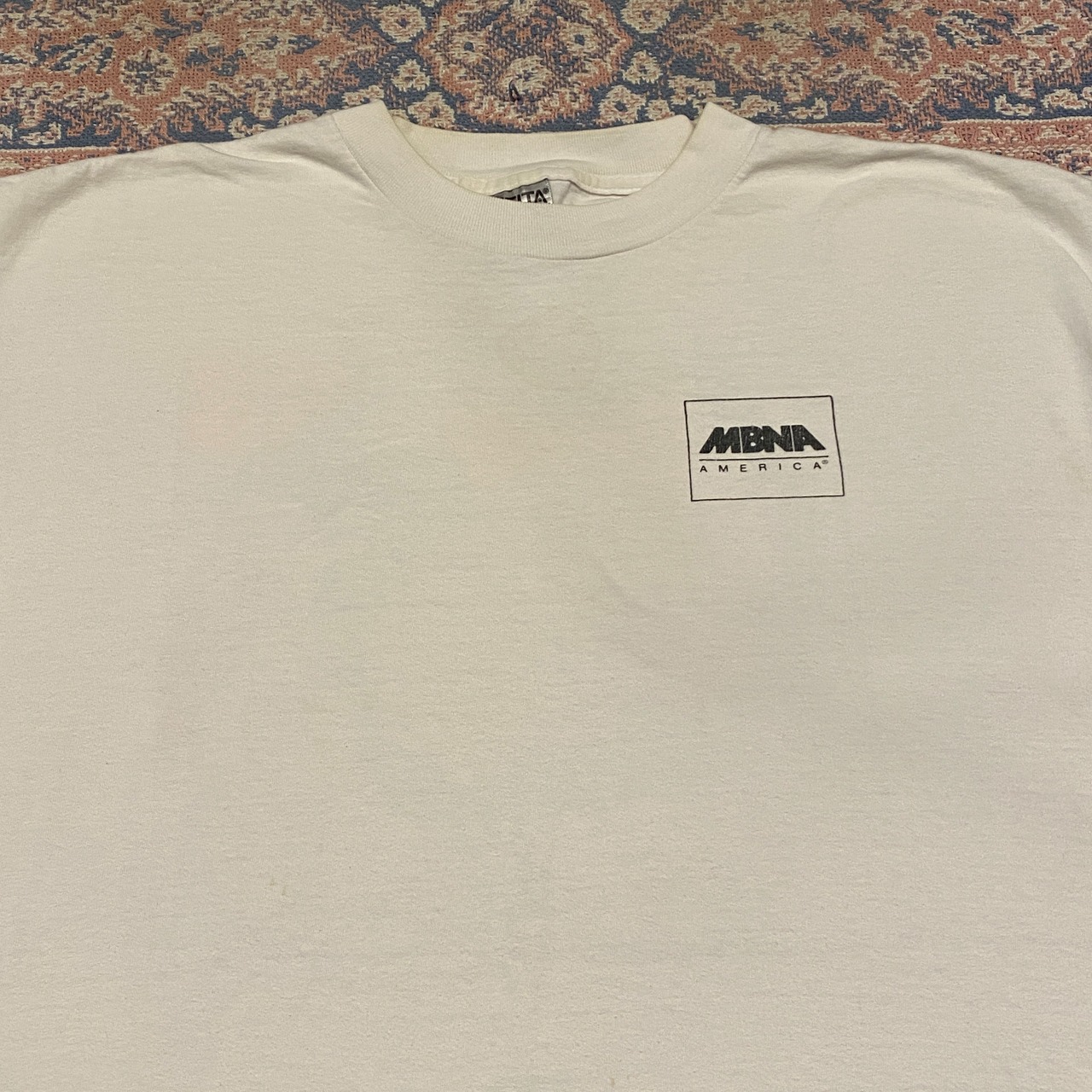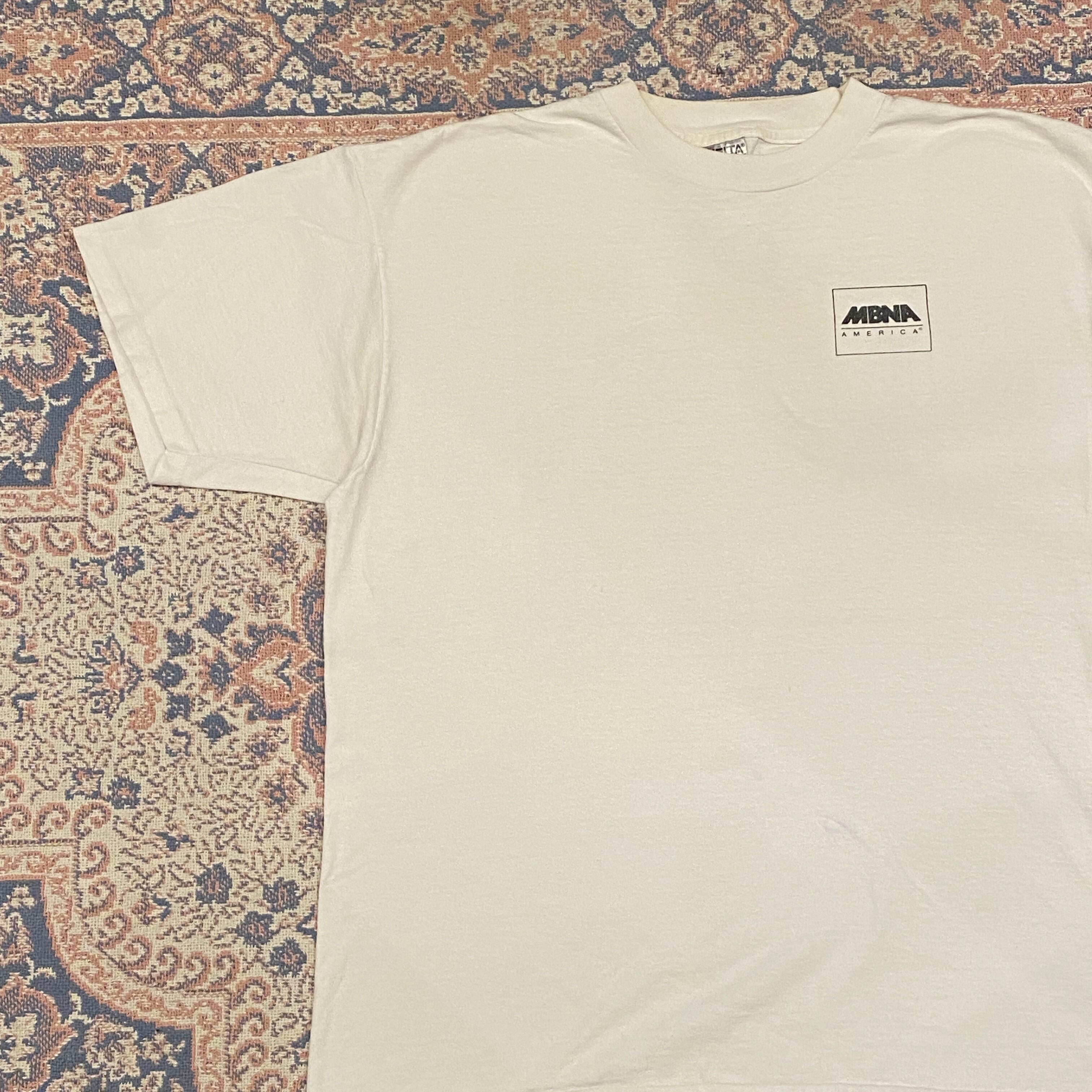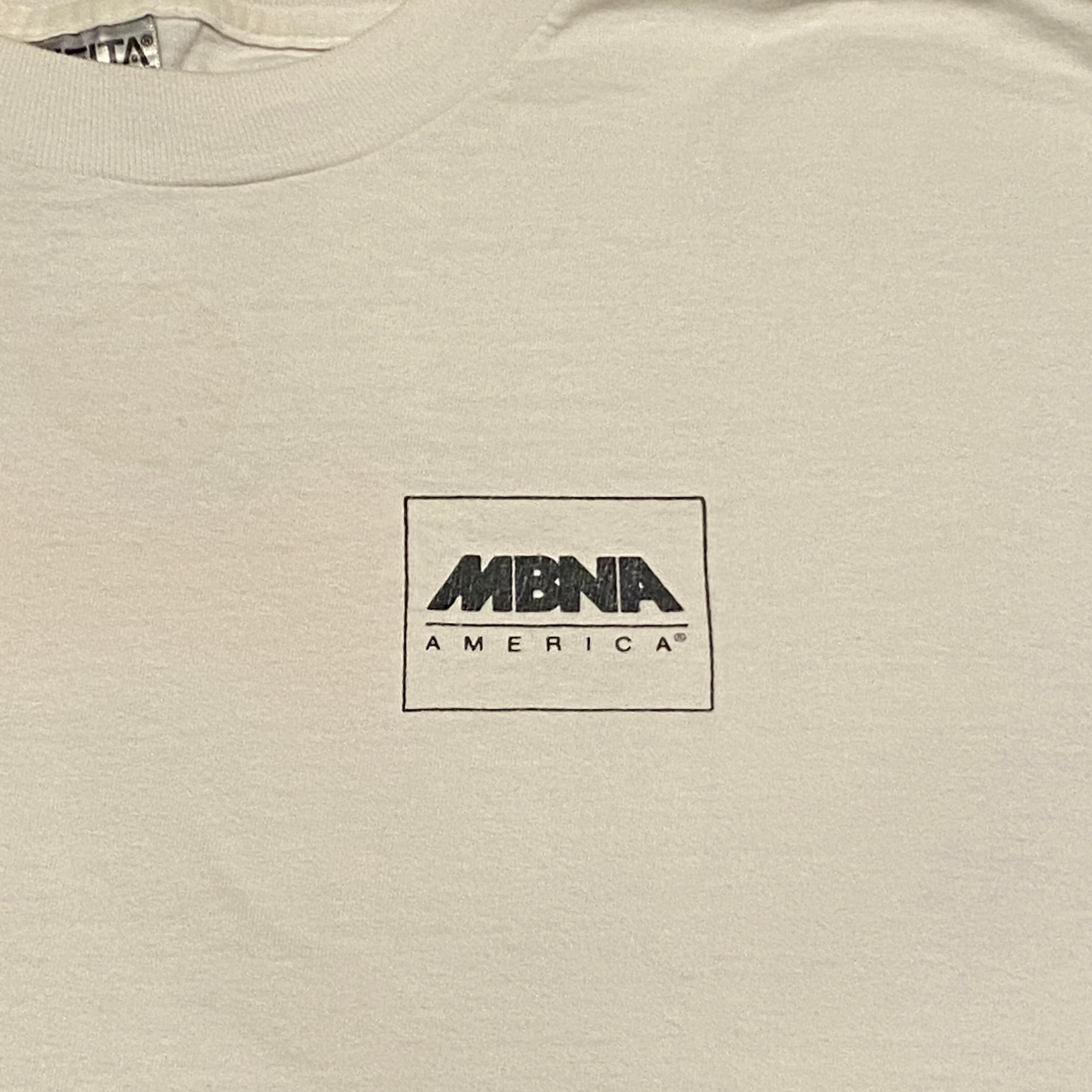 1297 90s 90年代 MBNA 犬 dog 診察 ONEITA オニータ ホワイト 白 プリント Tシャツ 企業ロゴ 古着 メンズ vintage XL