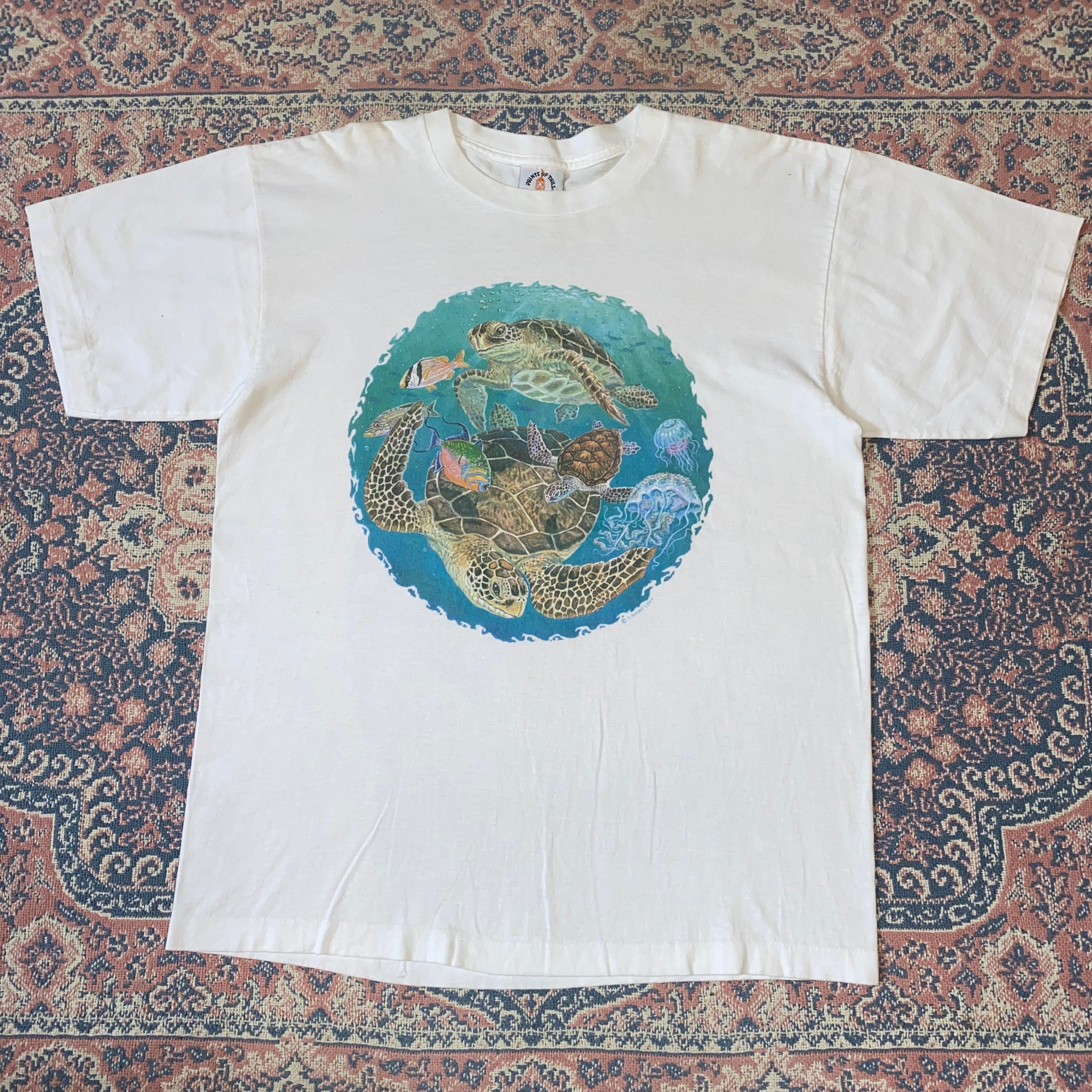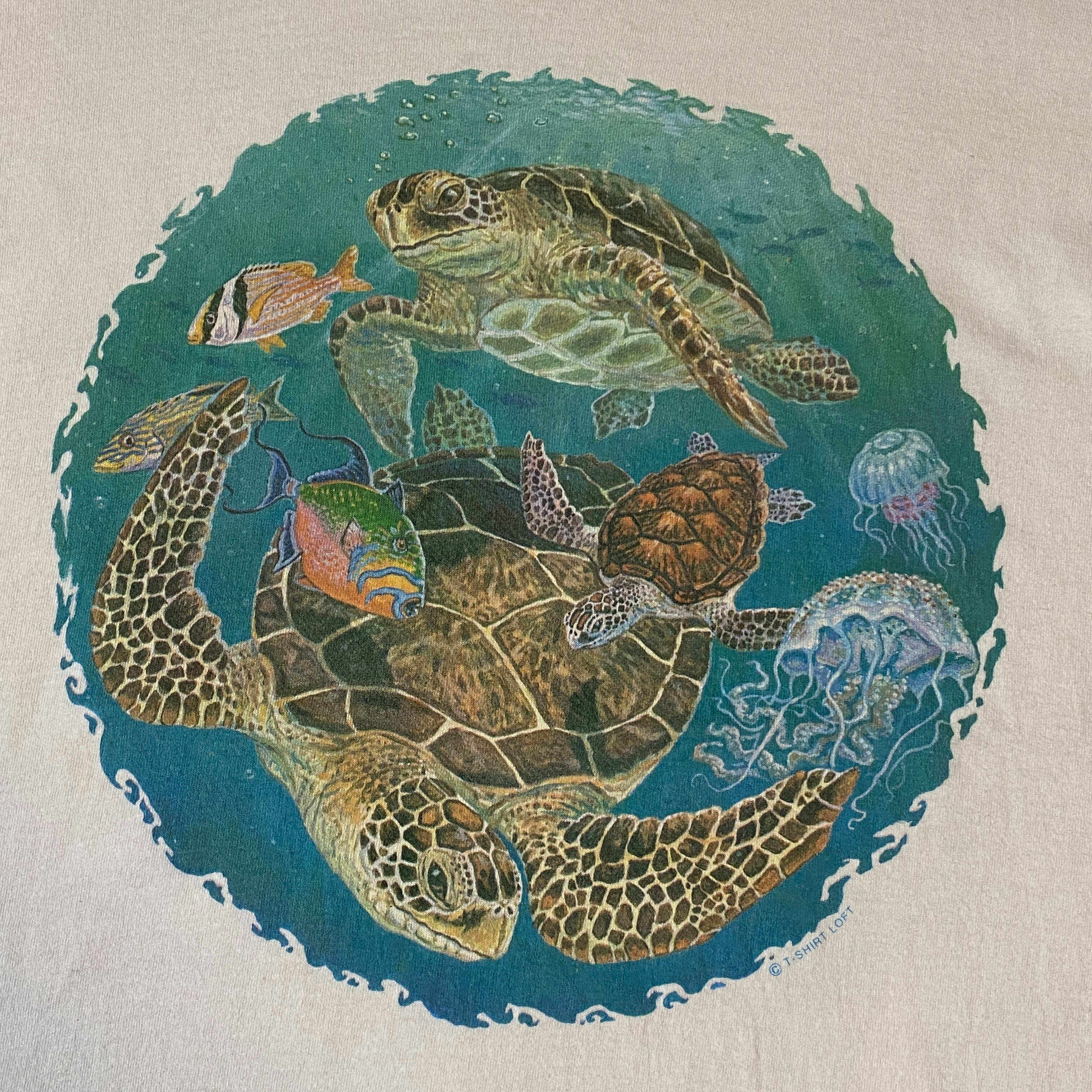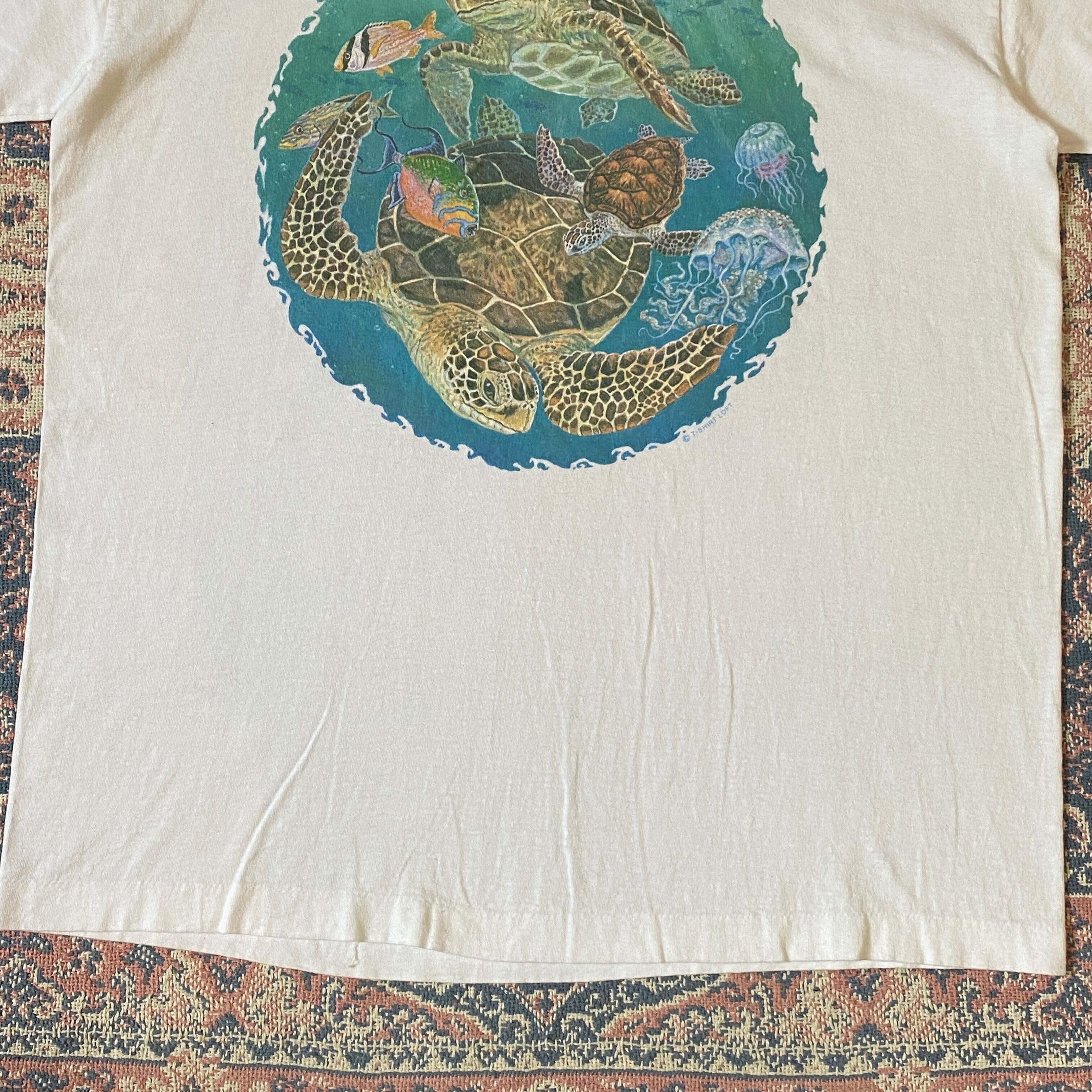 1320 90s 90年代 USA製 アート Tシャツ 亀 タートル ウミガメ PRINTS OF TAILS シングルステッチ 古着 メンズ vintage L