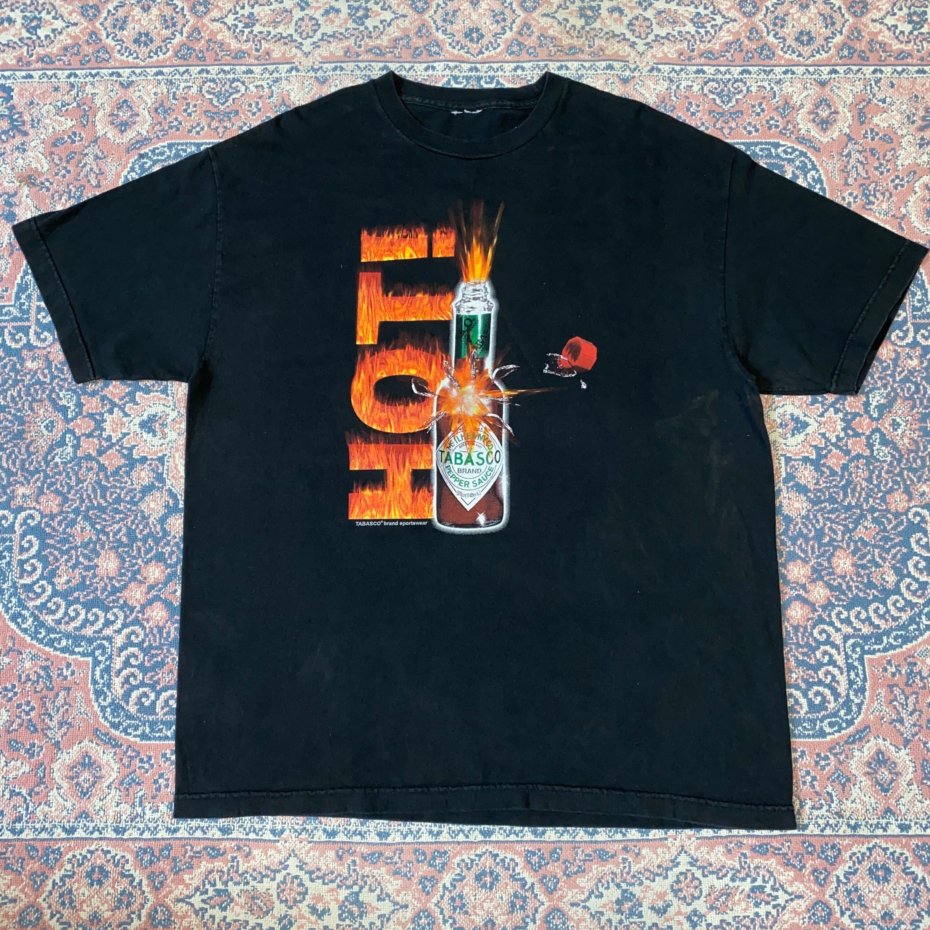 1321 90s〜 90年代〜 TABASCO HOT プリント Tシャツ タバスコ ブラック 黒 古着 メンズ vintage 00s 00年代