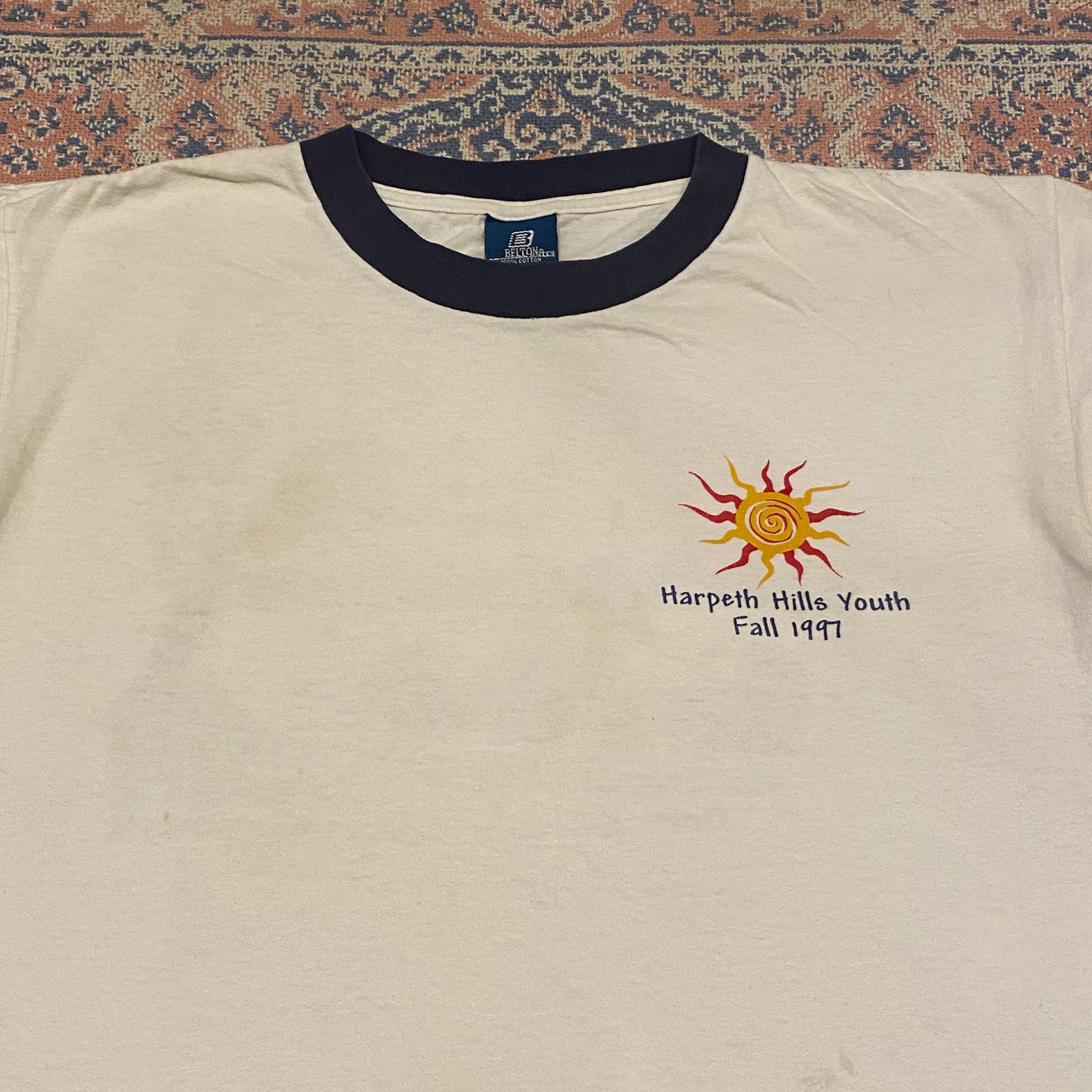 1351 90s 1997年 USA製 Belton Camp Hy-Lake ユースキャンプ リンガー Tシャツ メンズ 古着 vintage
