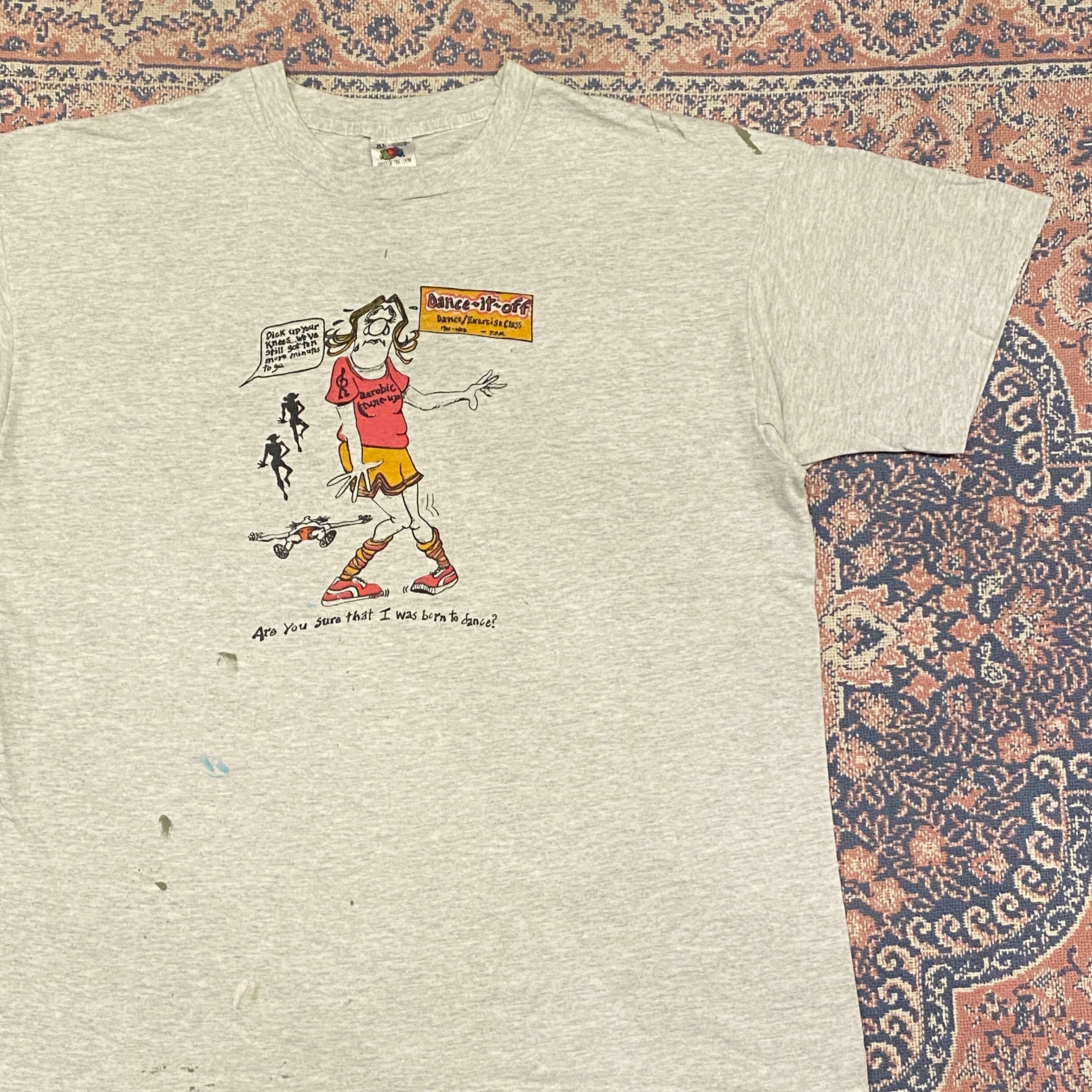 1352 90s 90年代 USA製 Fruit of the Loom “Dance It Off” ダンス ジョーク Tシャツ 古着 メンズ vintage