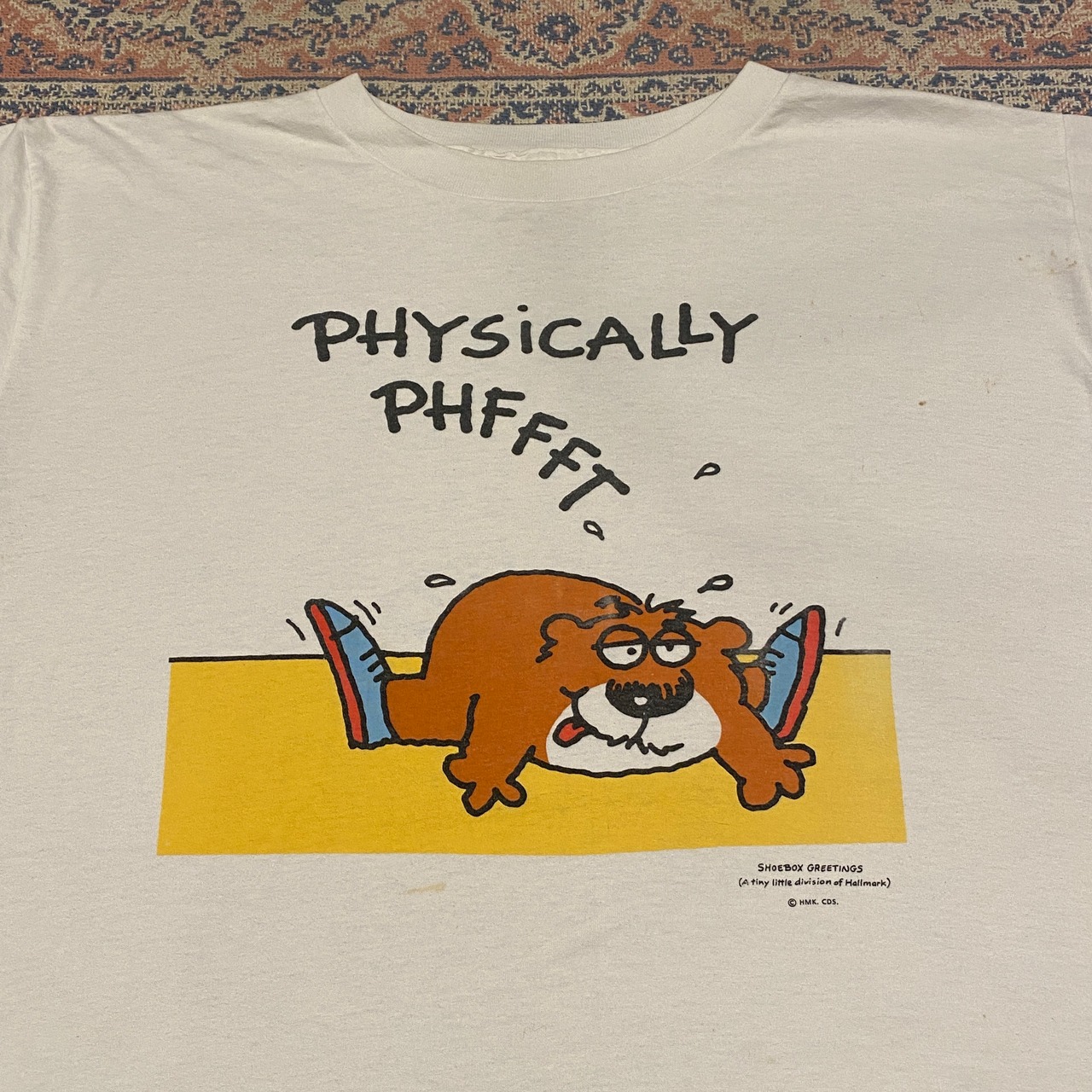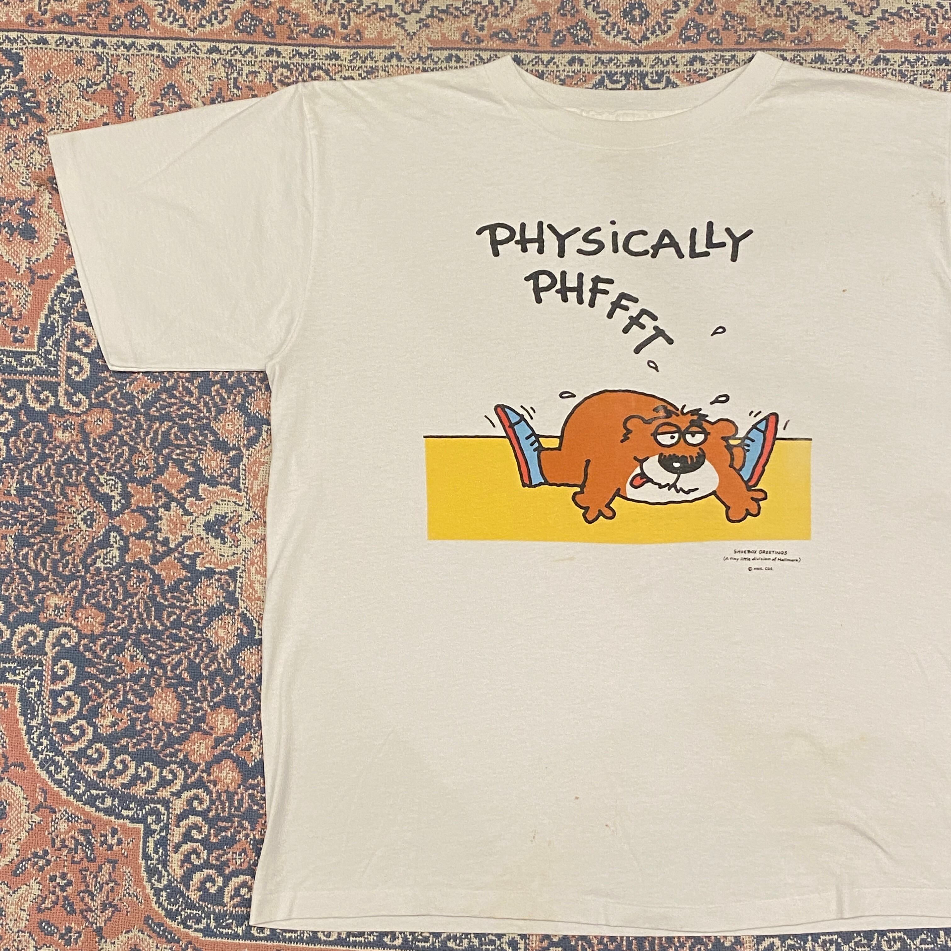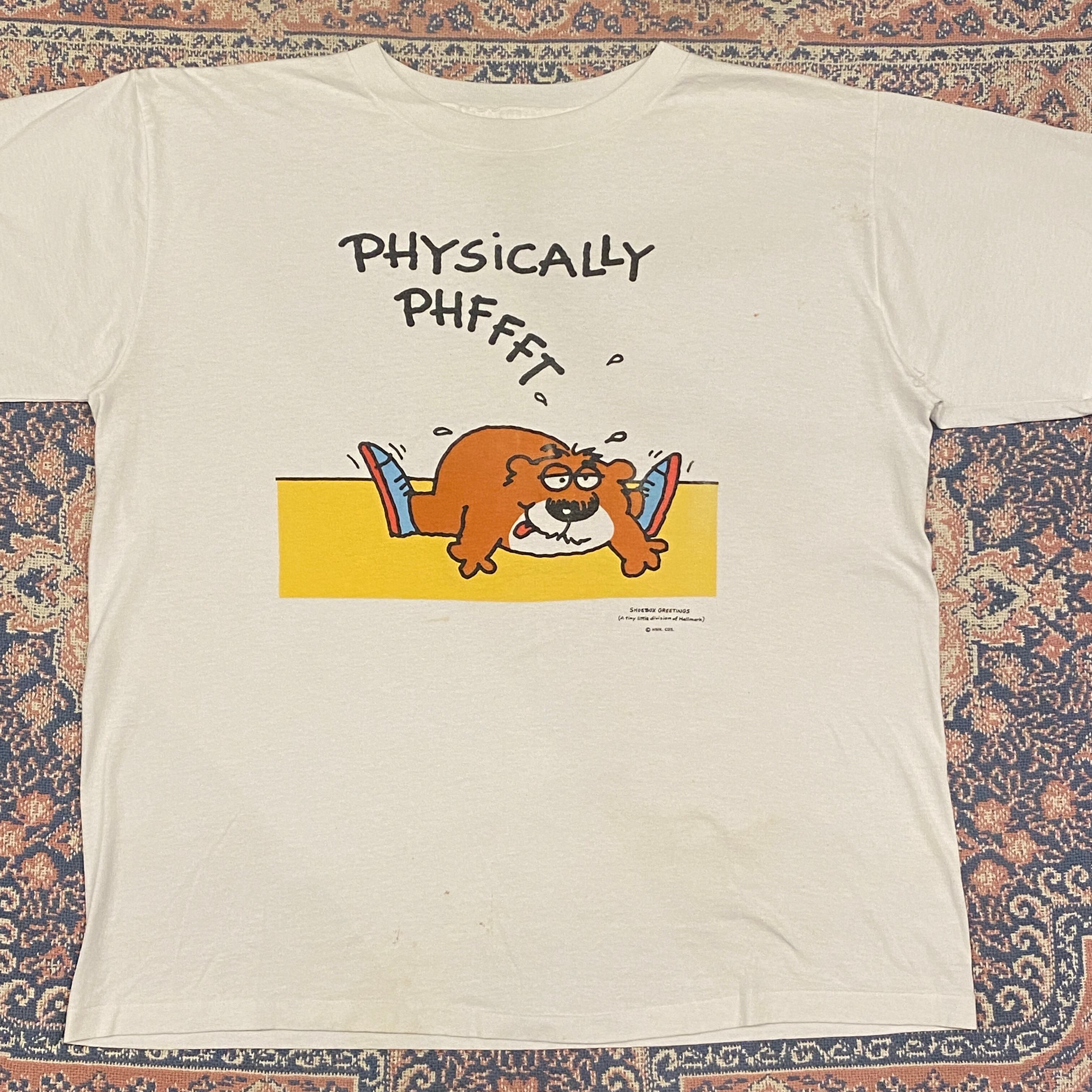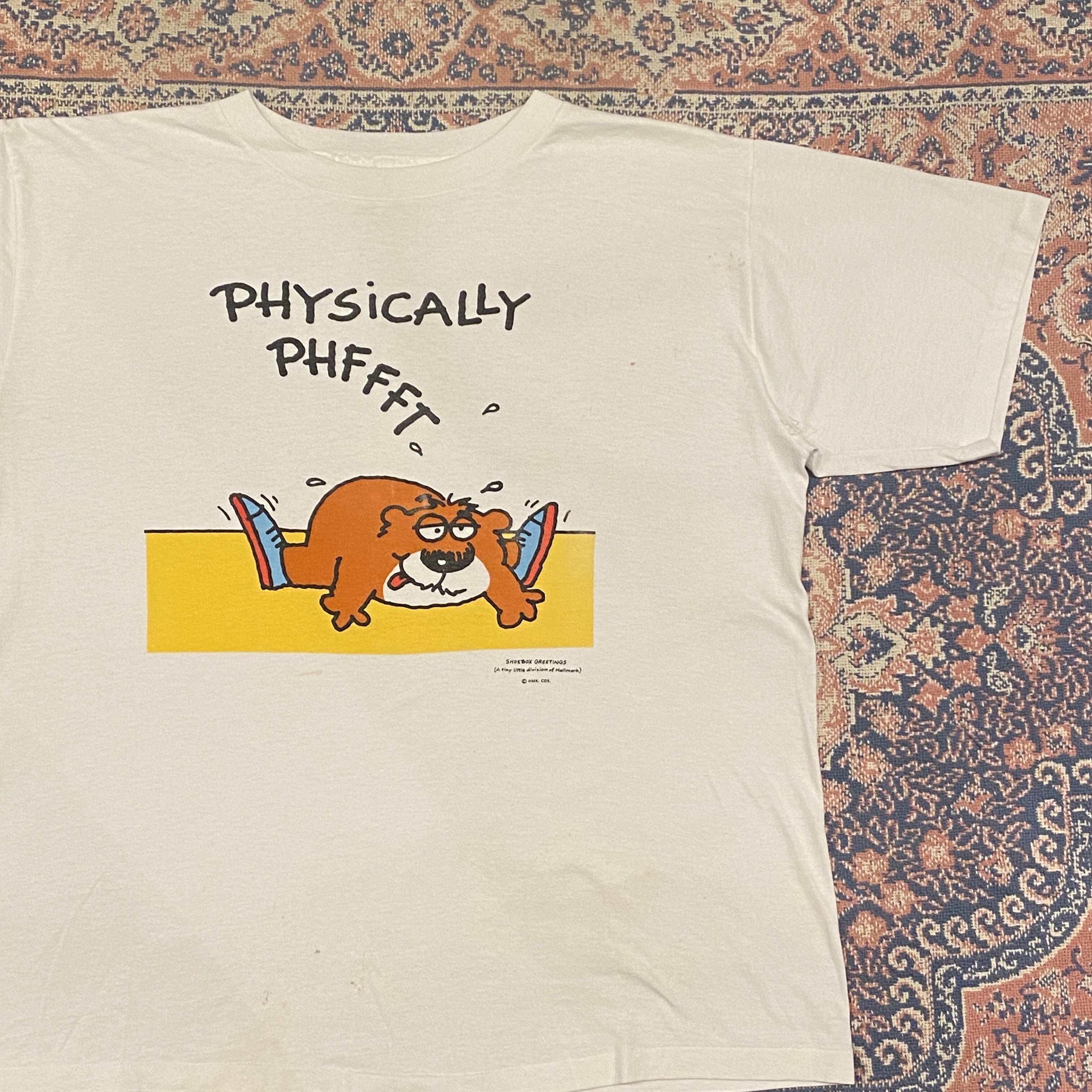 1353 90s 90年代 USA製 Shoebox Greetings “PHYSICALLY PHFFFT” ガーフィールド風 キャラクター Tシャツ メンズ 古着 vintage