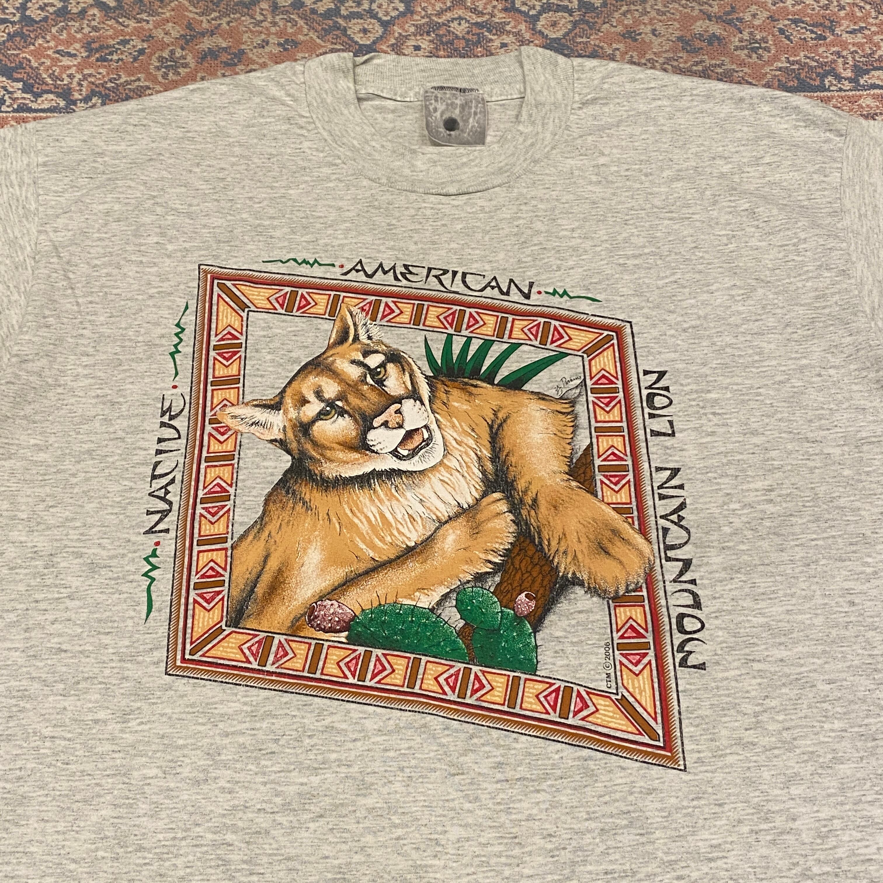 1362 00s 00年代 マウンテン ライオン ネイティブ柄 アート Tシャツ メンズ 古着 vintage 2006