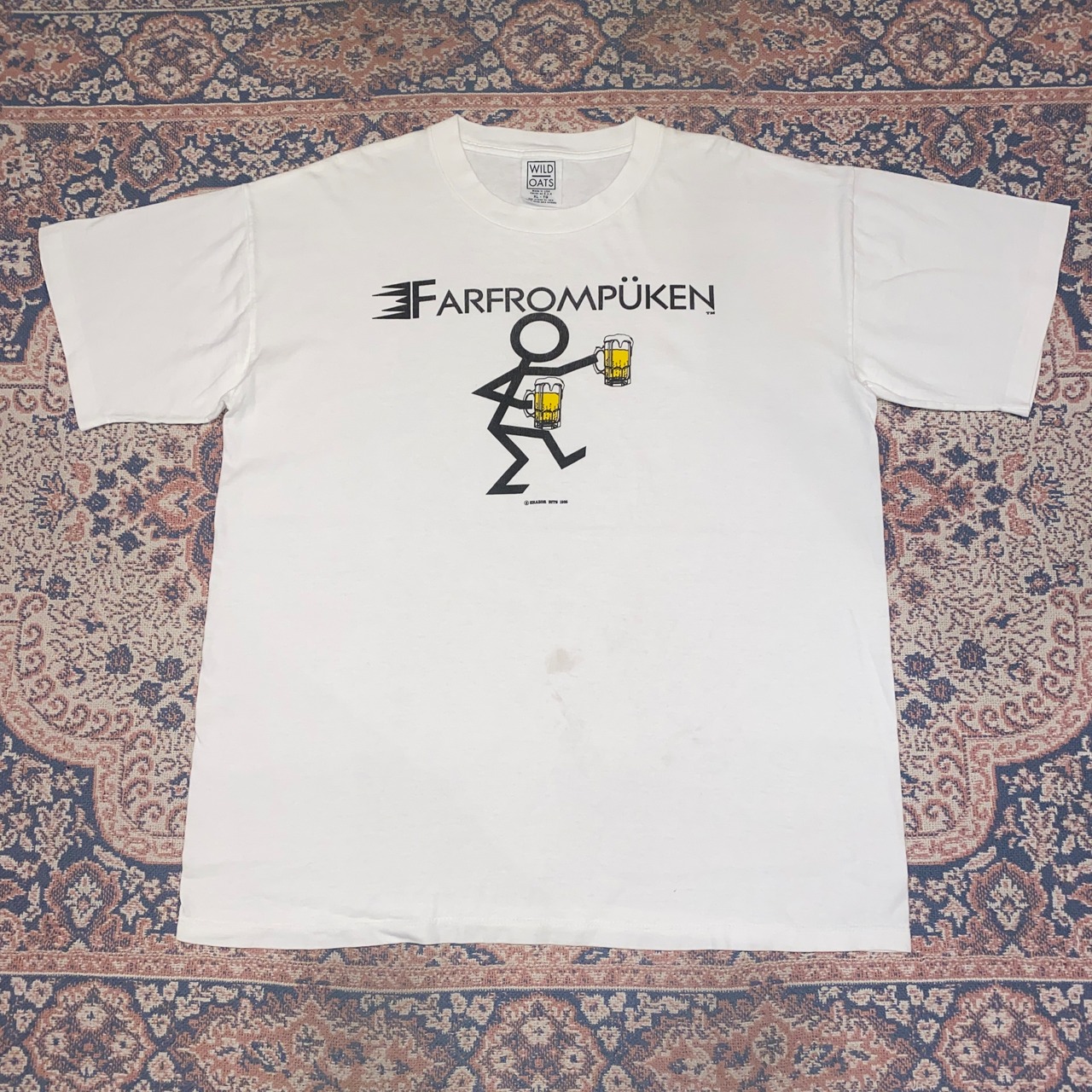 1382 90s 90年代 usa製 WILD CATS FARFROMPUKEN Tシャツ ビール 古着 メンズ vintage 白 棒人間 プリント