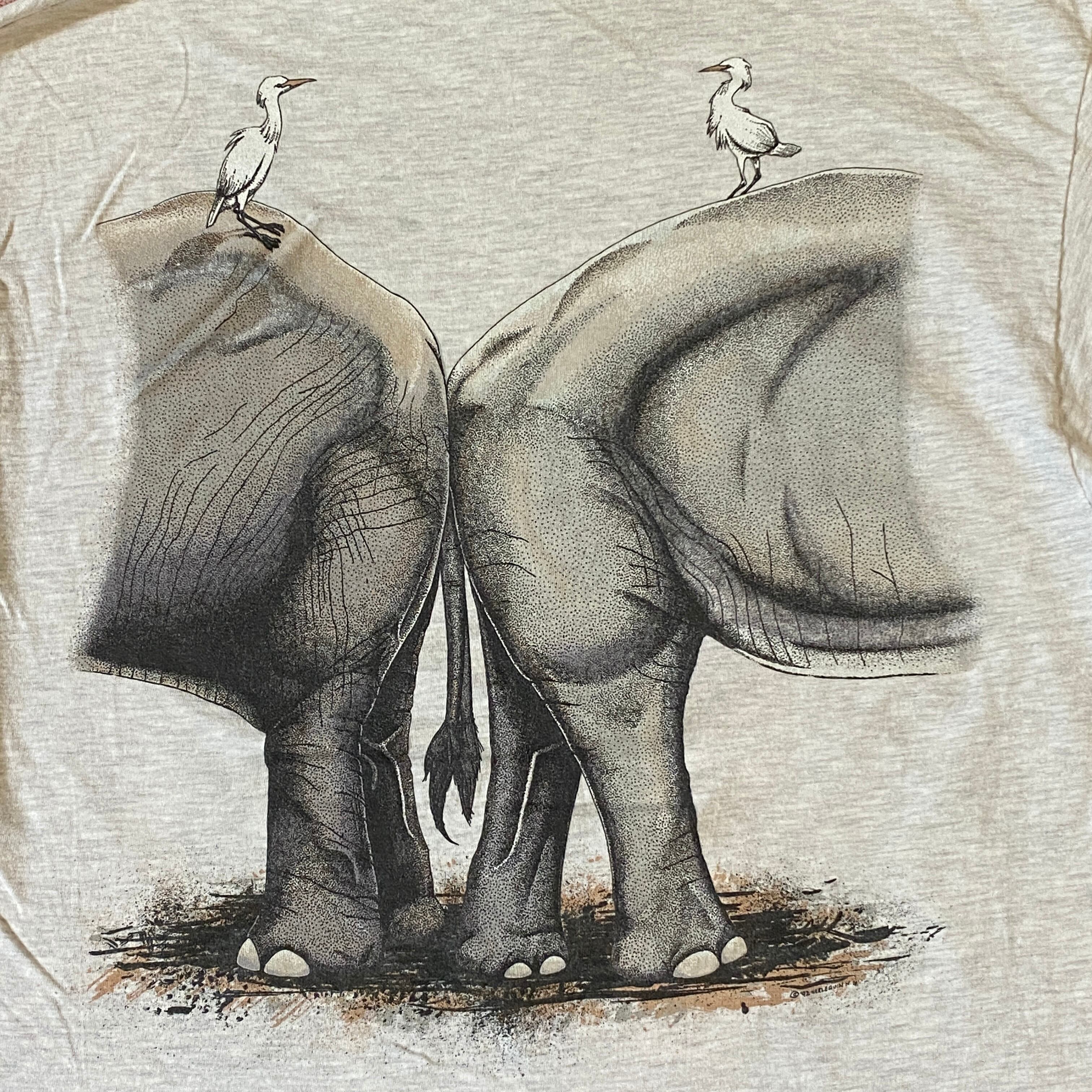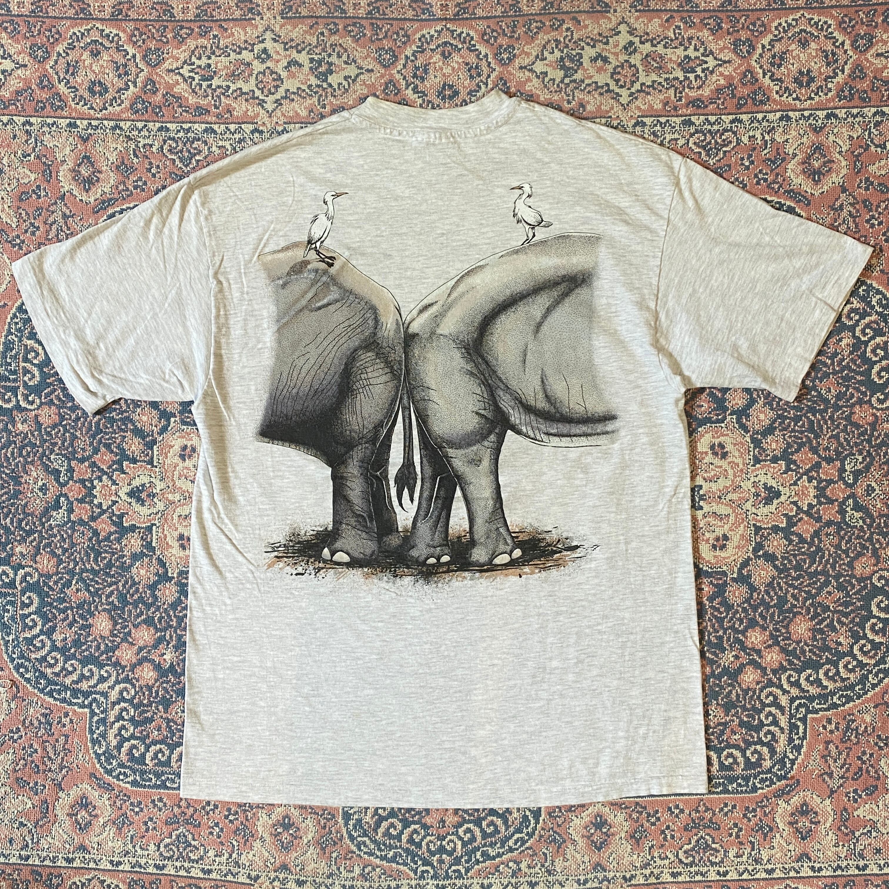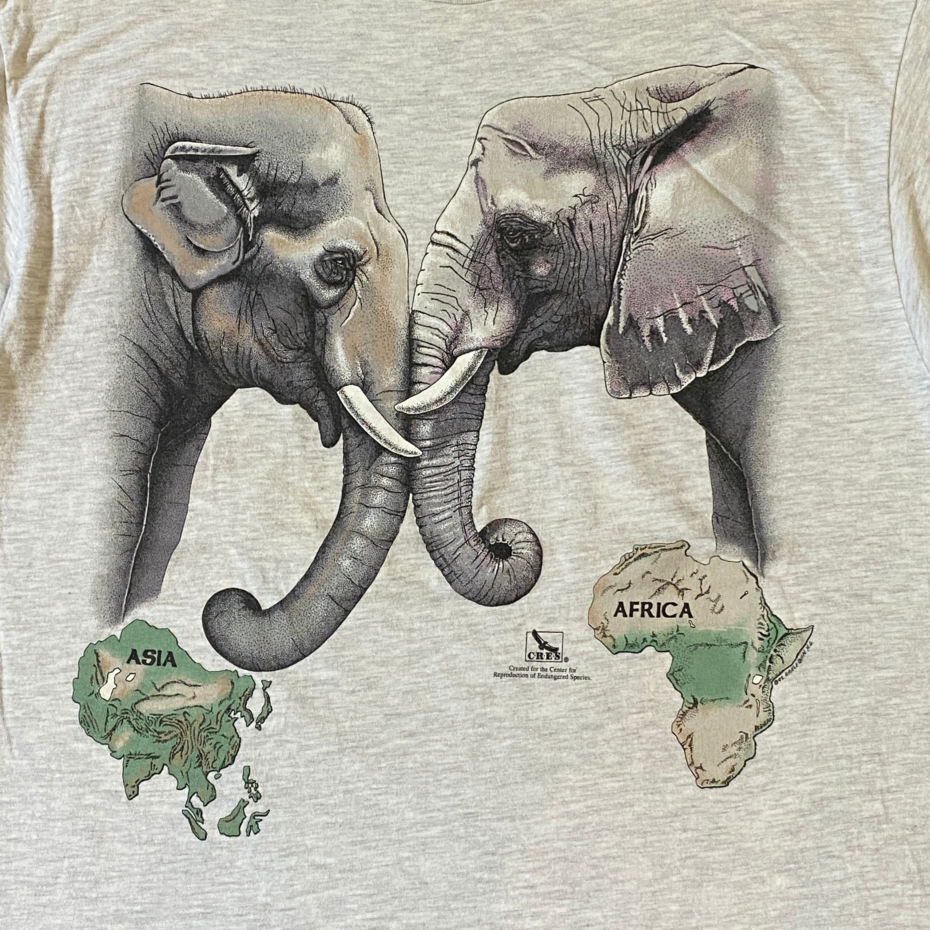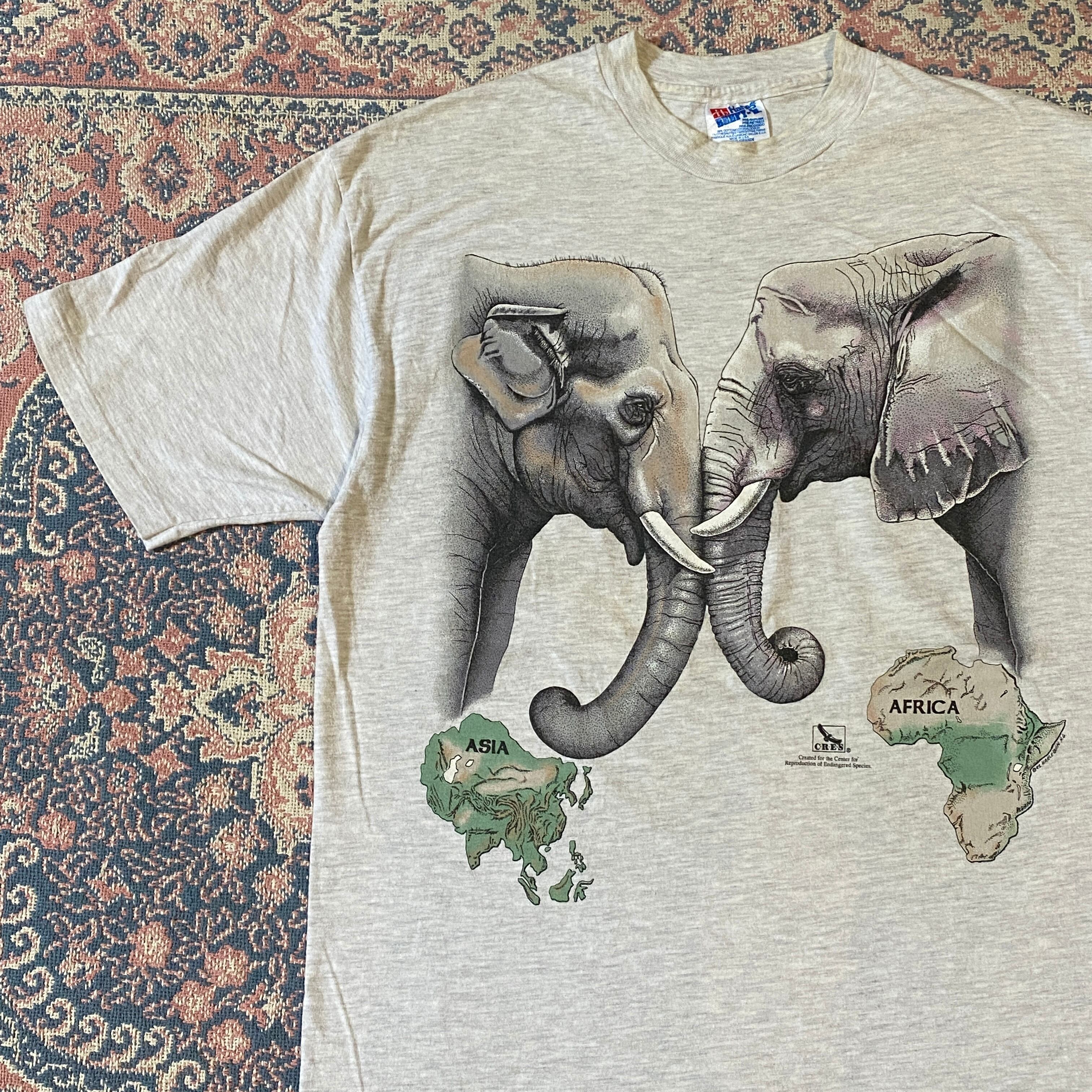 1439 90s 90年代 USA製 CRES アジア象&アフリカ象 環境保護 チャリティー Tシャツ メンズ 古着 vintage