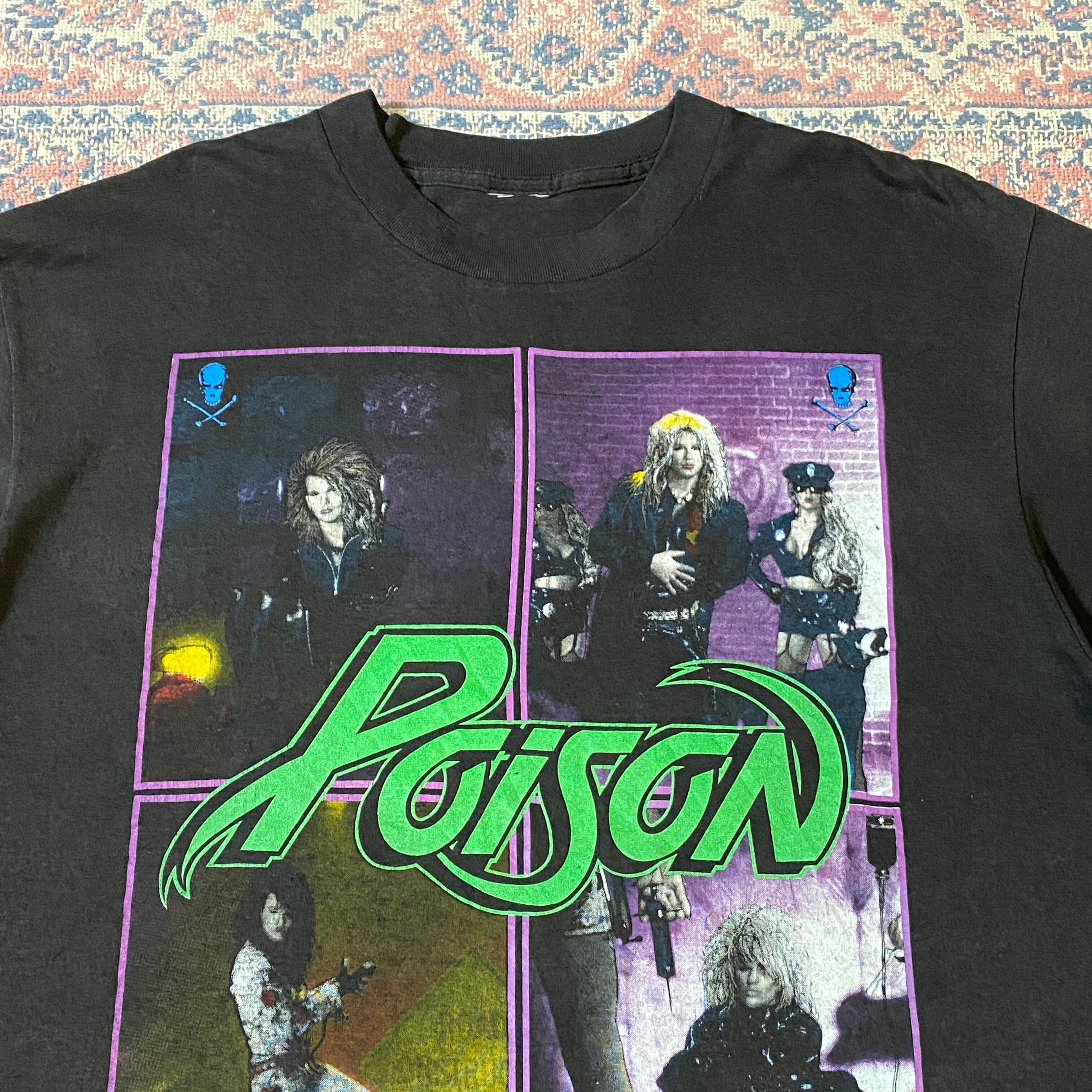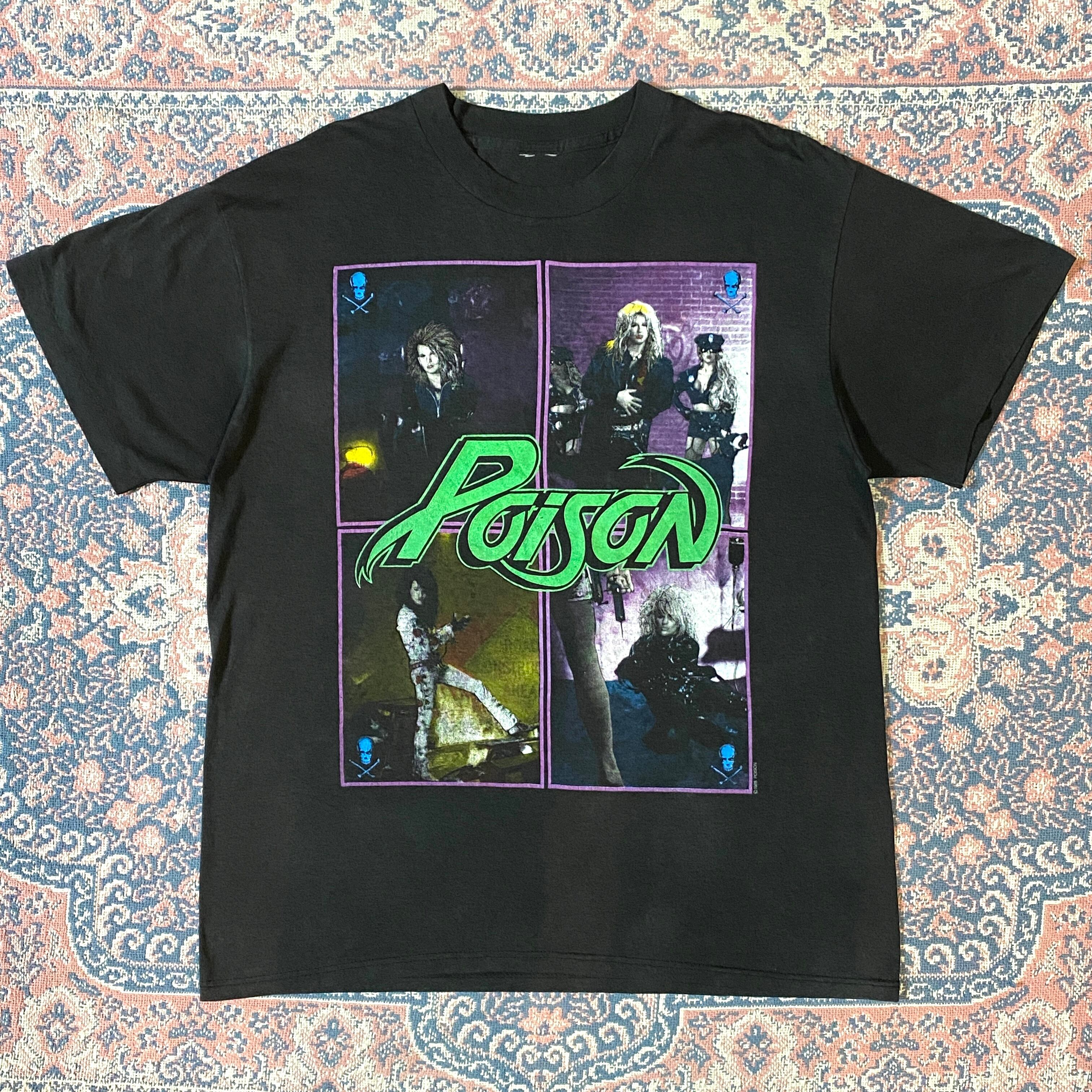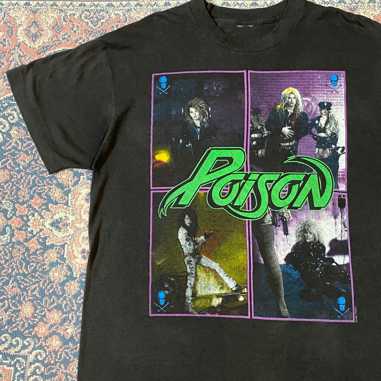 1452 80s 80年代 Poison ツアー Tシャツ ポイズン アルバム バンドT バンT 両面 プリント ブラック 黒古着 メンズ vintage 80s 80年代