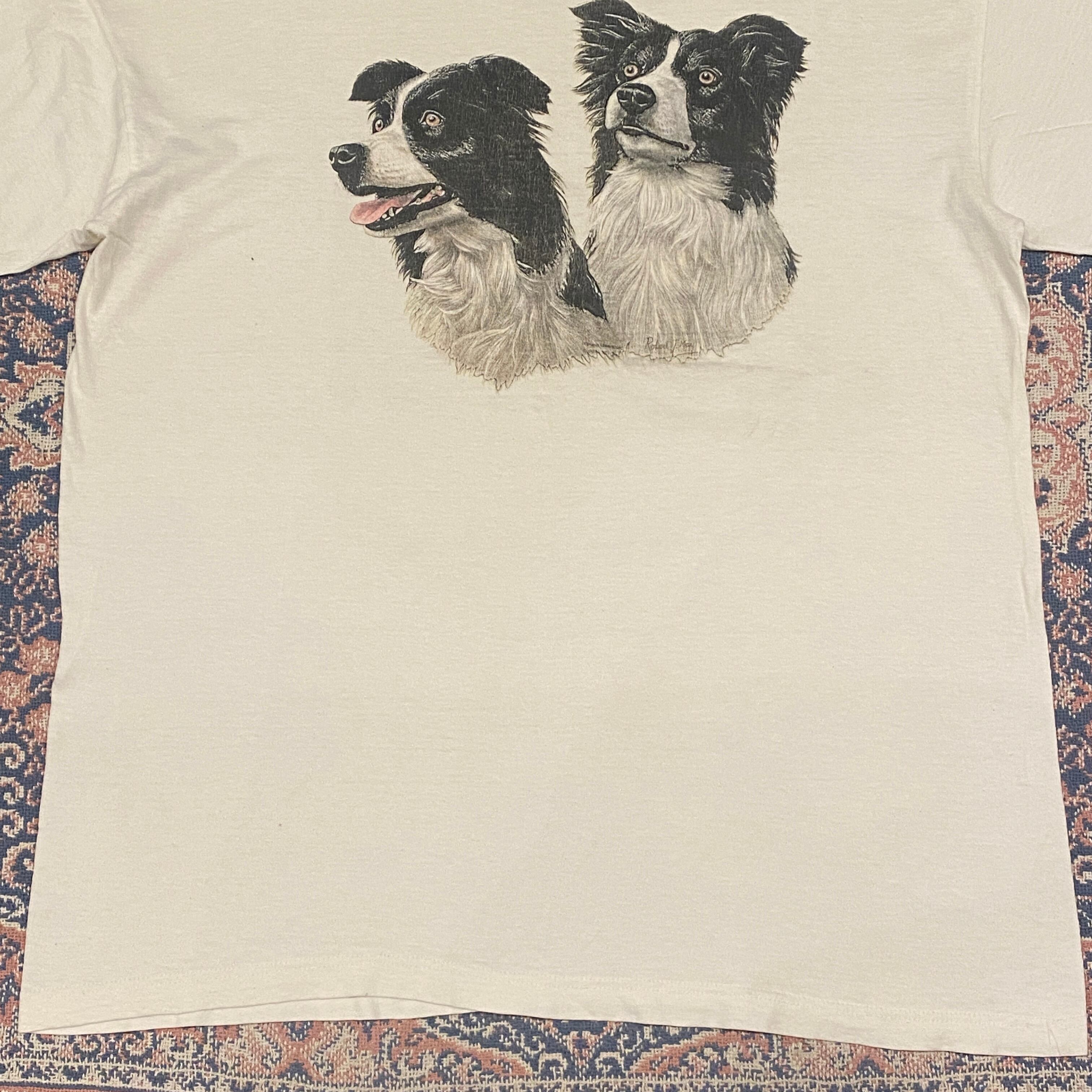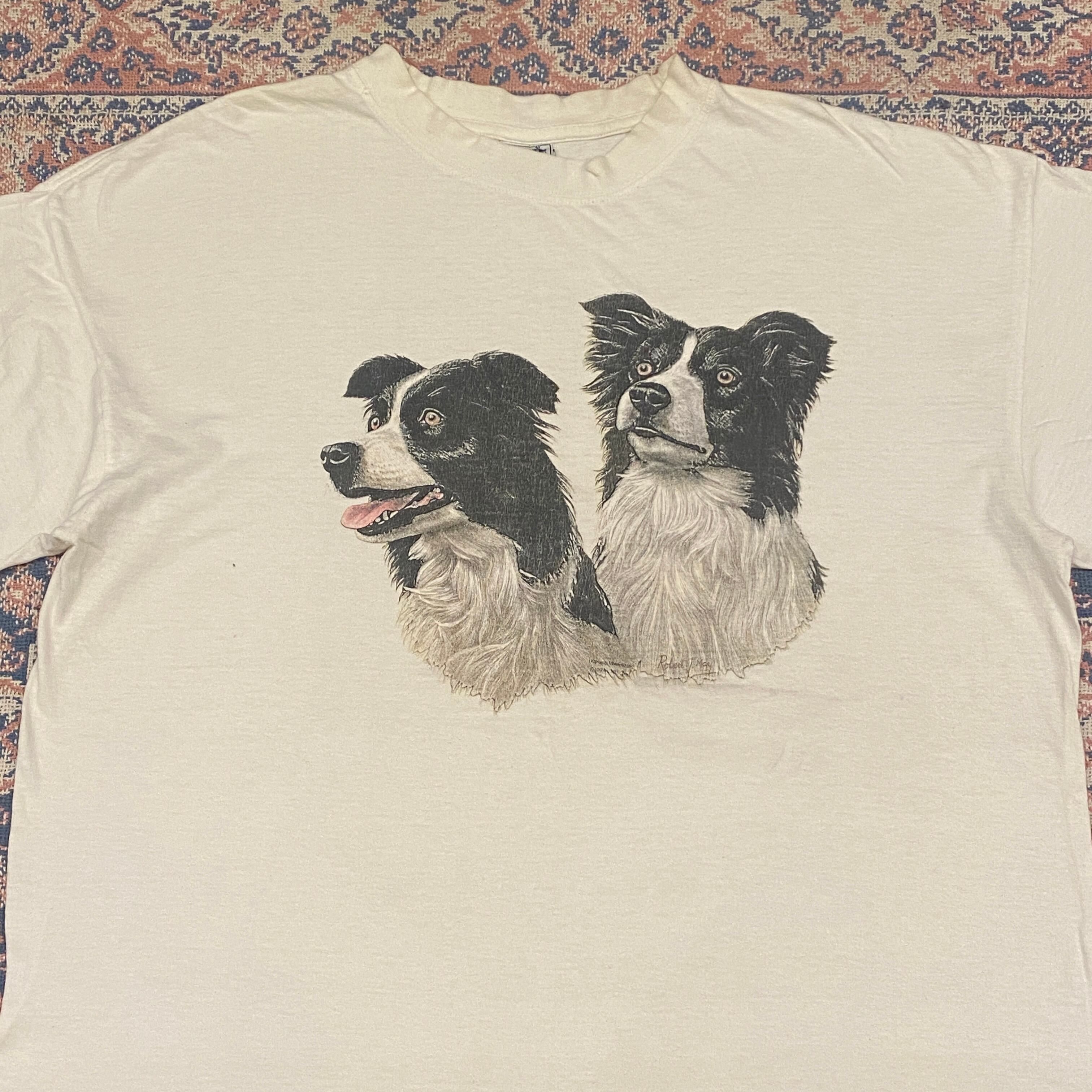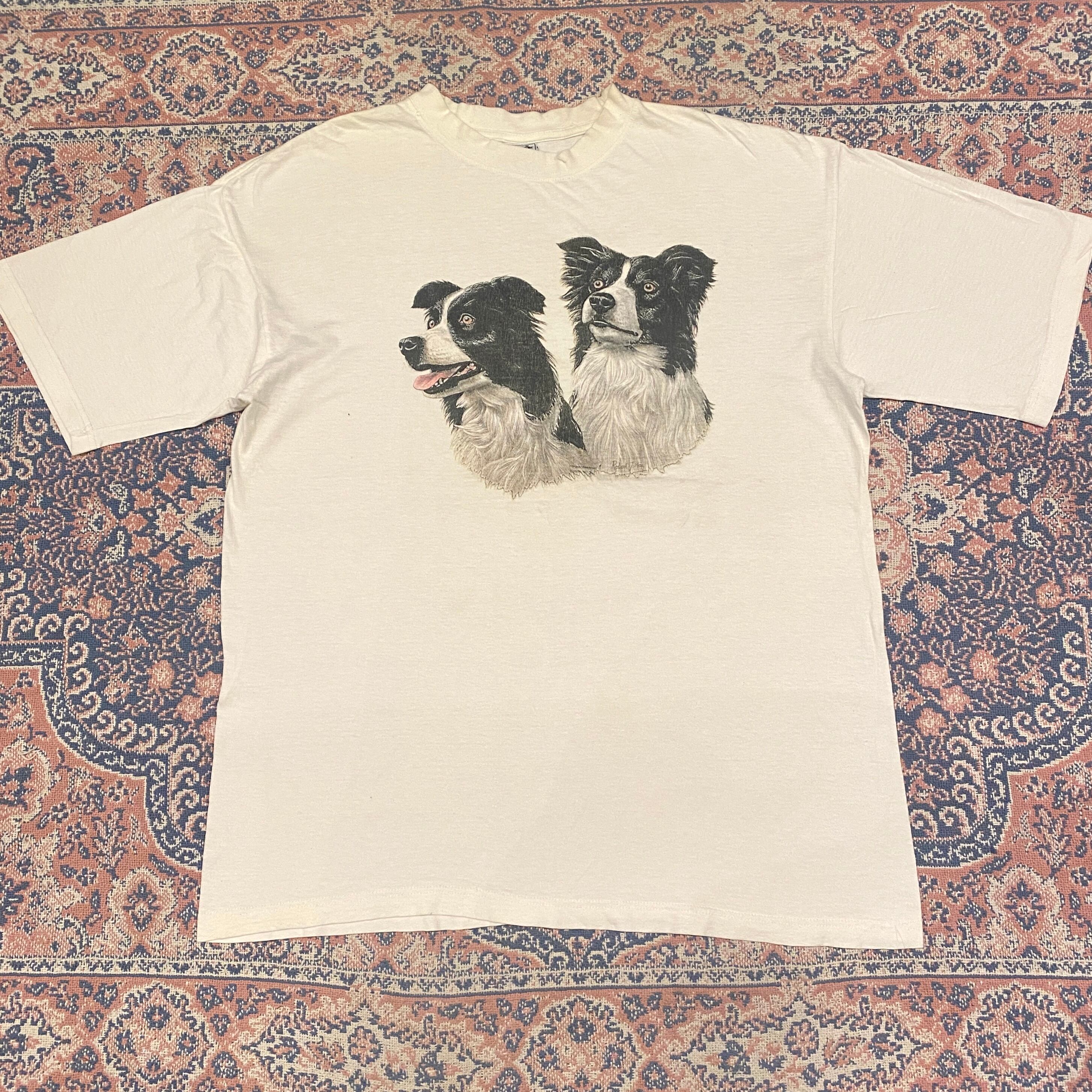 1454 90s 90年代 ドッグ 犬 Tシャツ アニマル ボーダーコリー ホワイト 白 古着 メンズ vintage XL south west