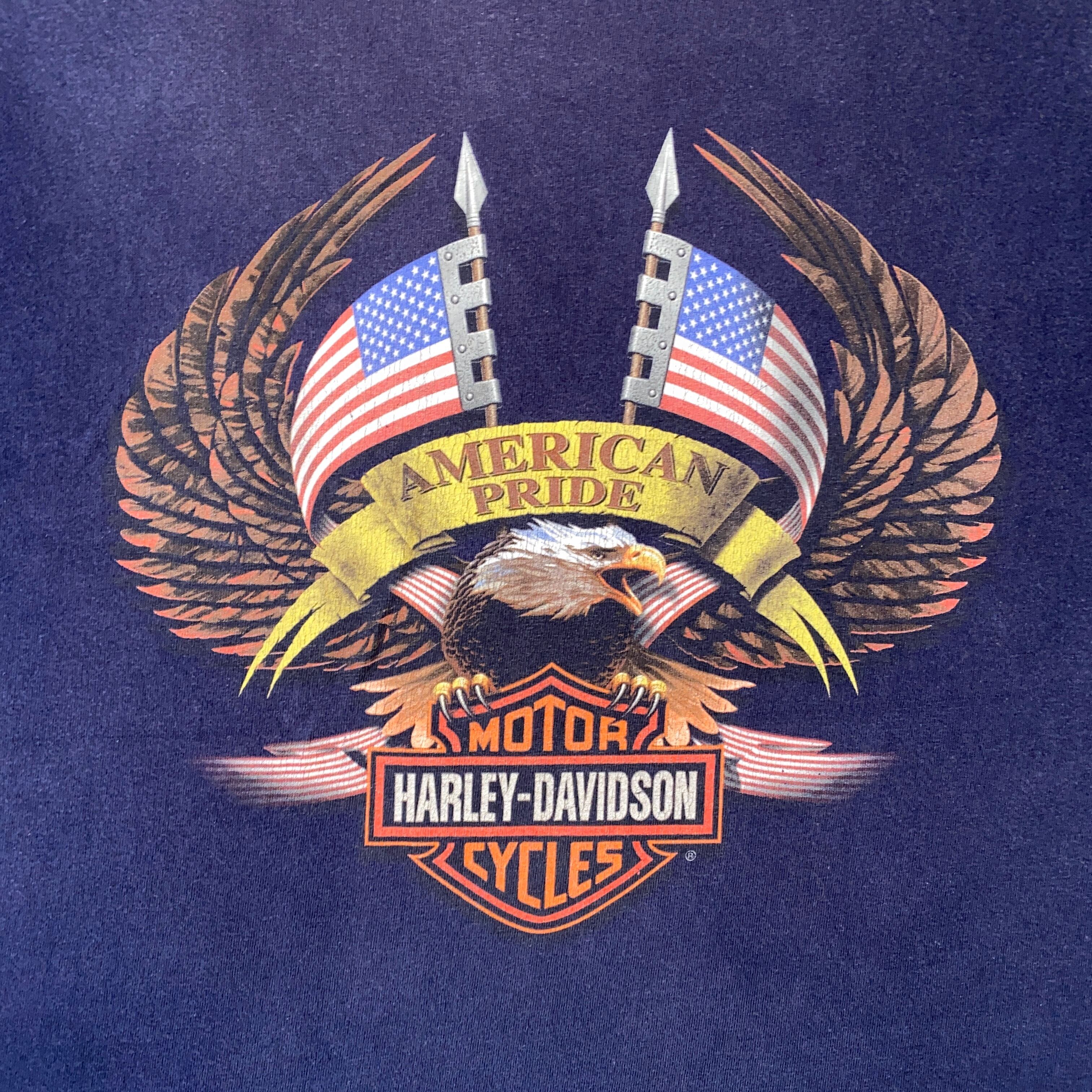 1487 90s 90年代 USA製 HARLEY DAVIDSON Tシャツ ハーレーダビッドソン 鷲 ワシ メンズ 古着 vintage 紺 コットン 2XL