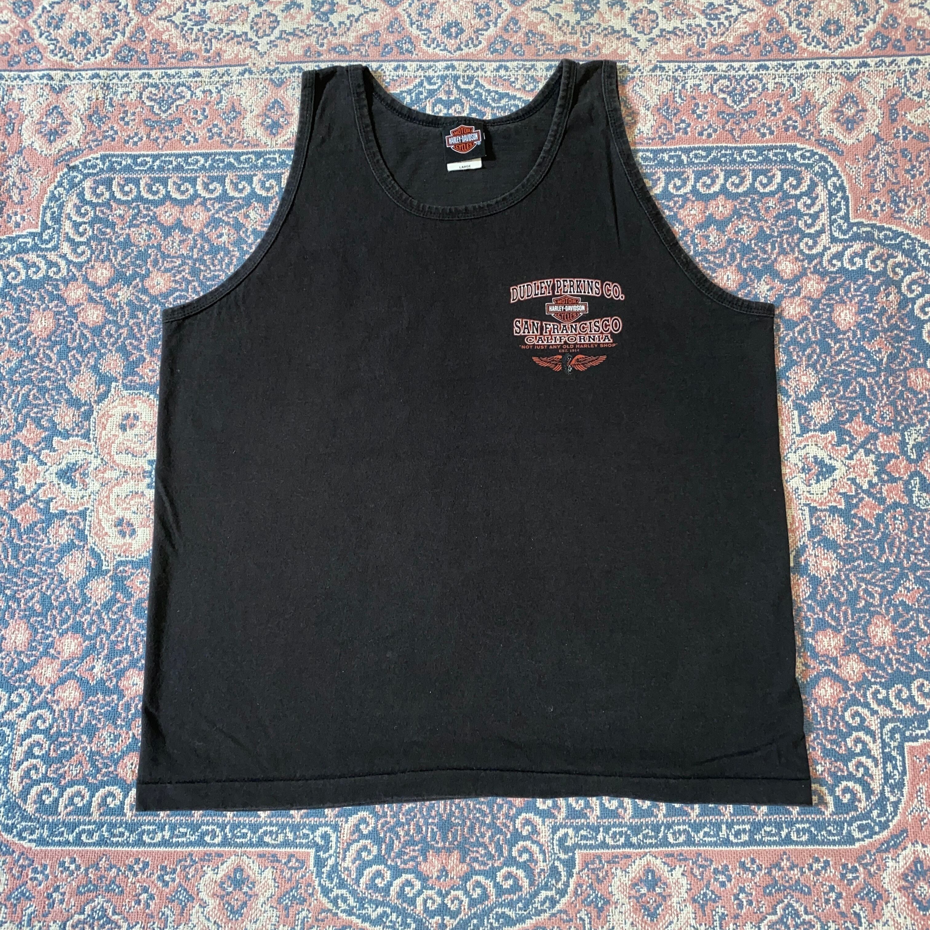 1502 90s 90年代 Harley Davidson USA製 タンクトップ プリント Tシャツ 黒 ブラック ハーレー ダビッドソン 古着 メンズ vintage L