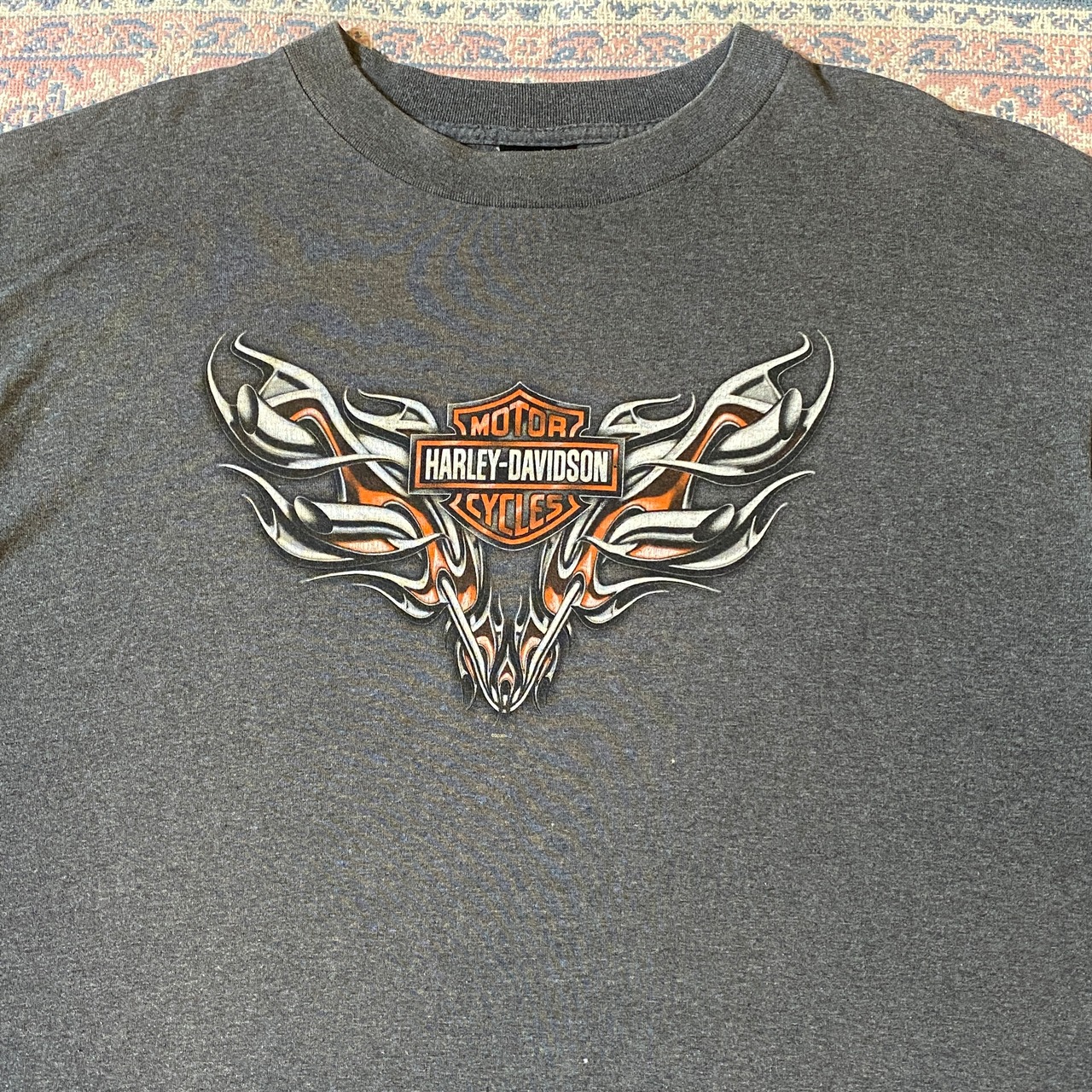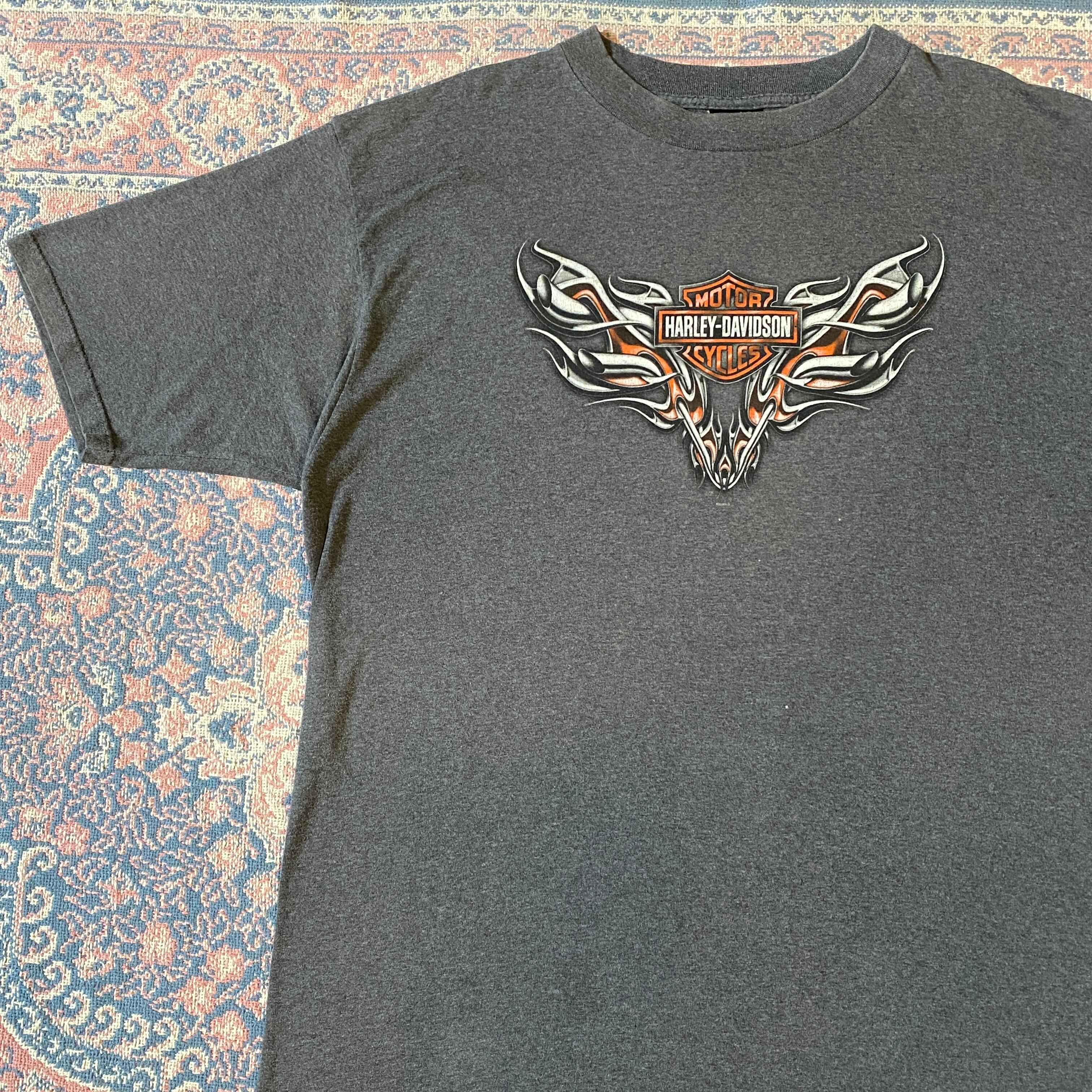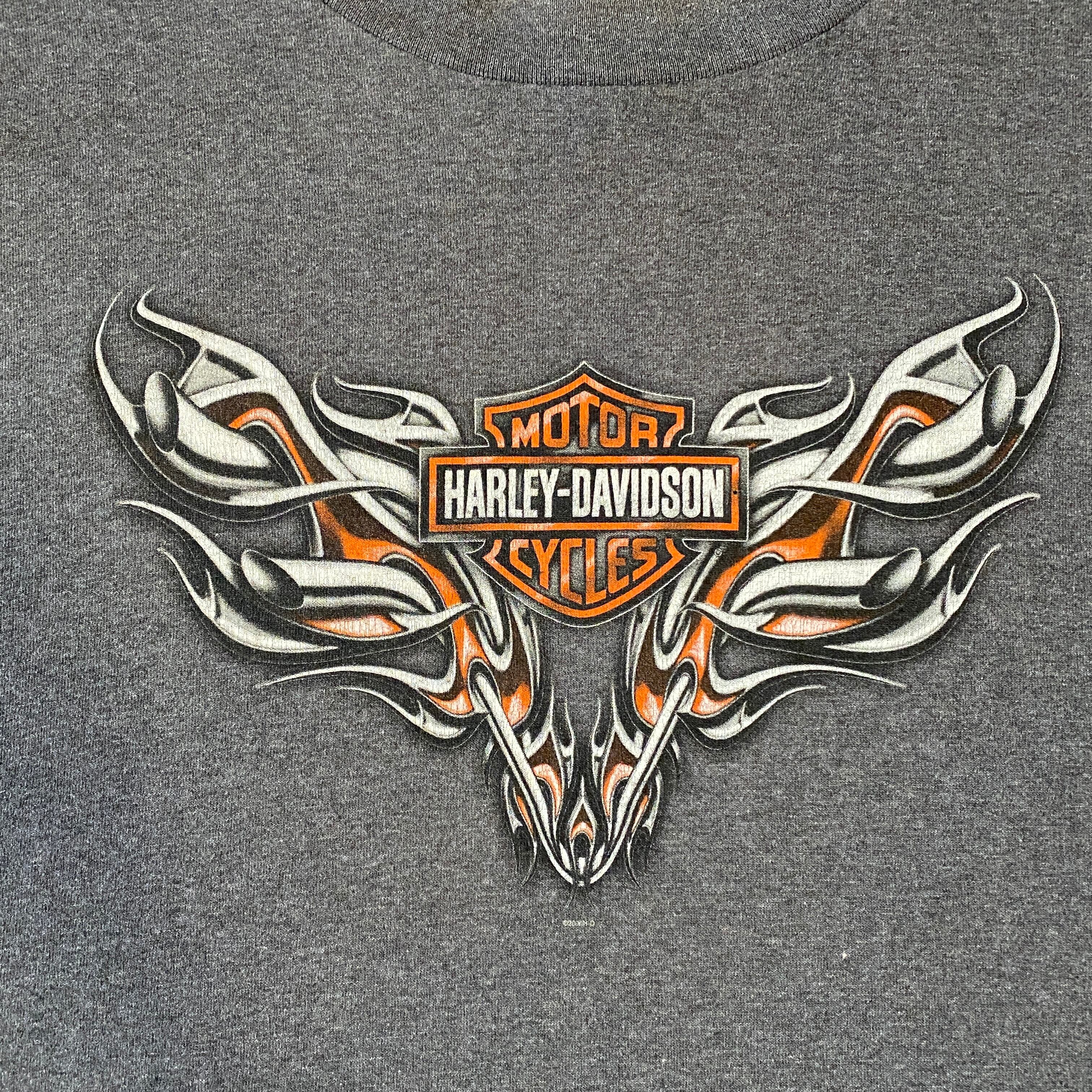 1577 00s 2005年製 USA製 Harley-Davidson トライバルスカル 両面プリント Tシャツ (Holoubek製) メンズ 古着 vintage
