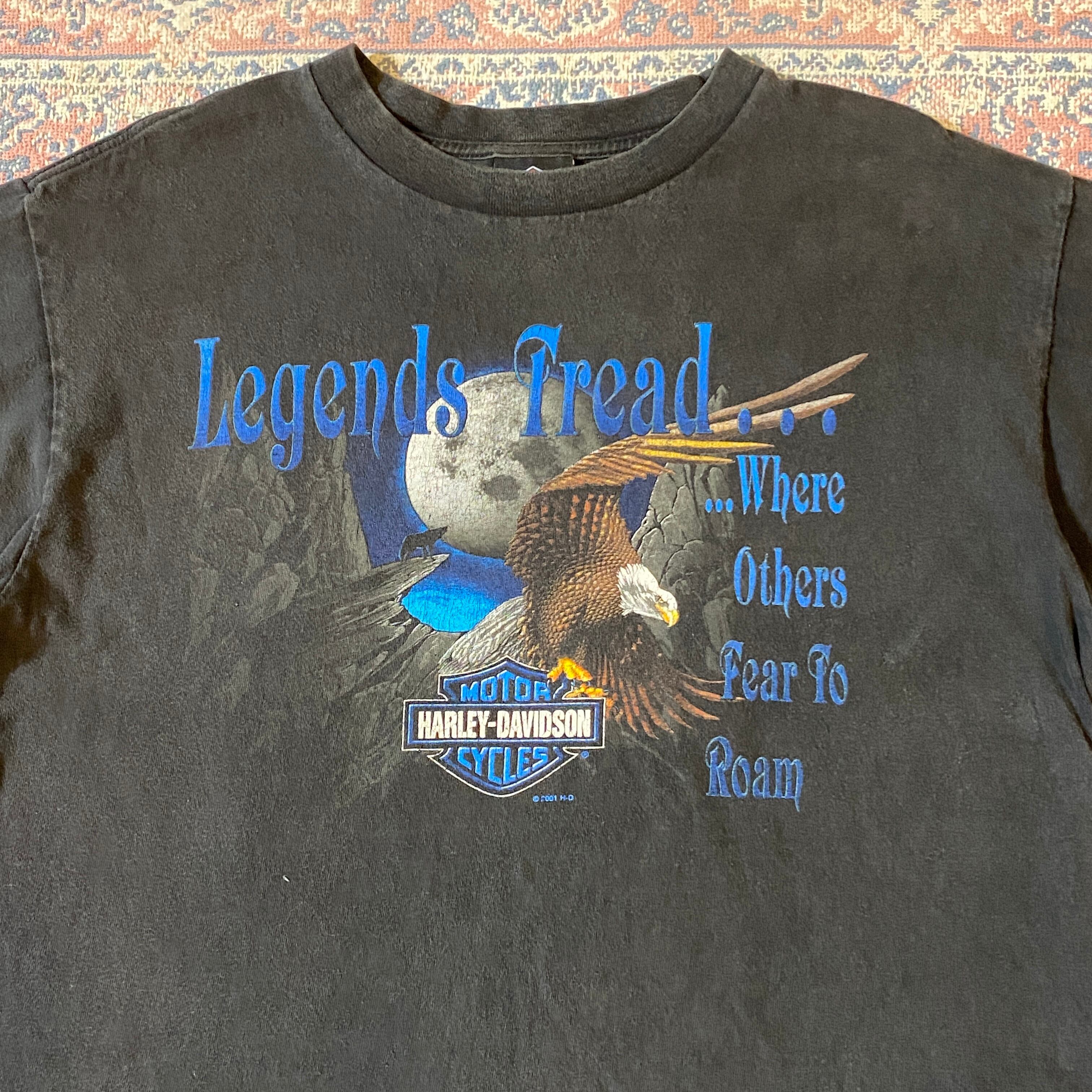 1578 00s 2001年 USA製 Harley-Davidson LEGENDS TREAD イーグル Tシャツ メンズ 古着 vintage
