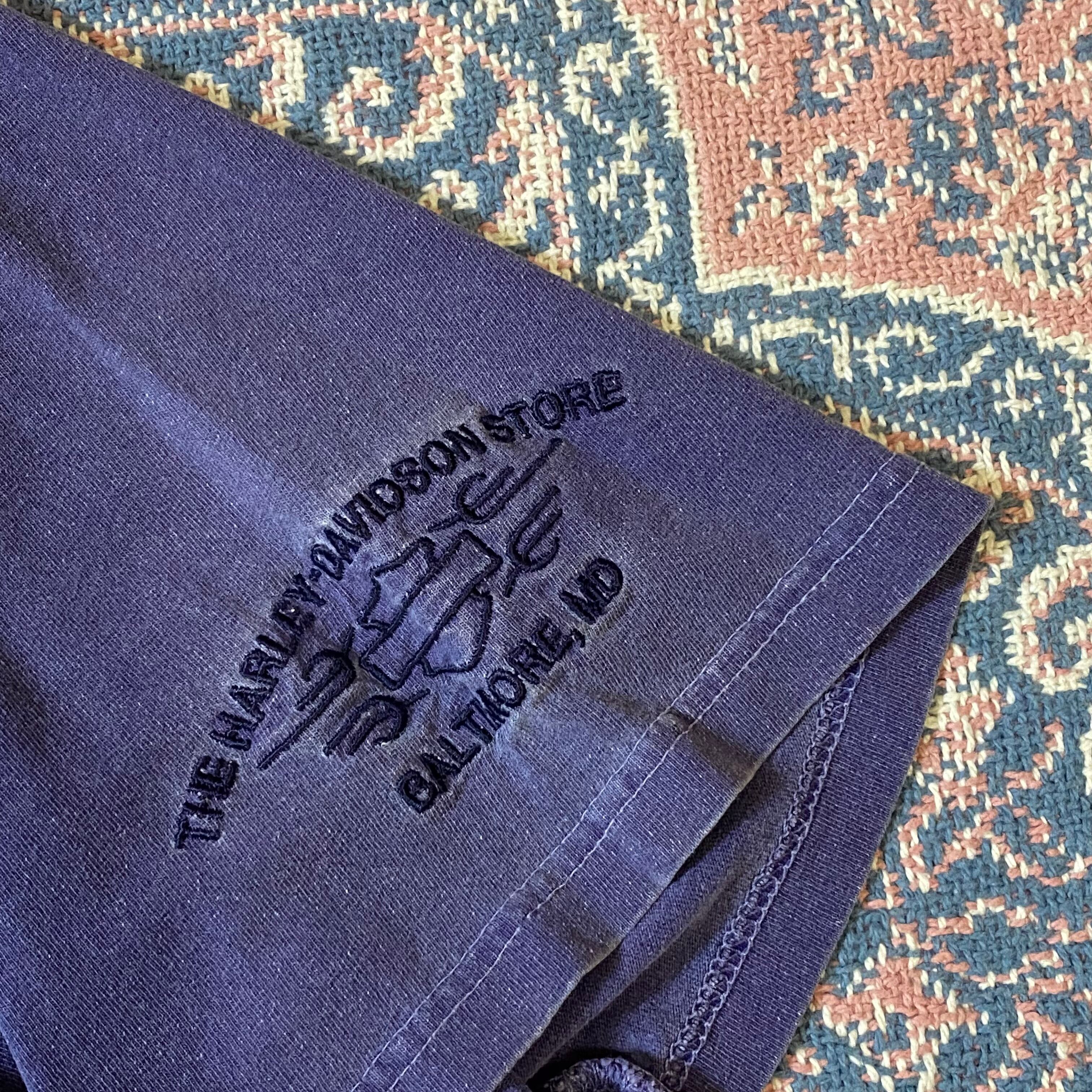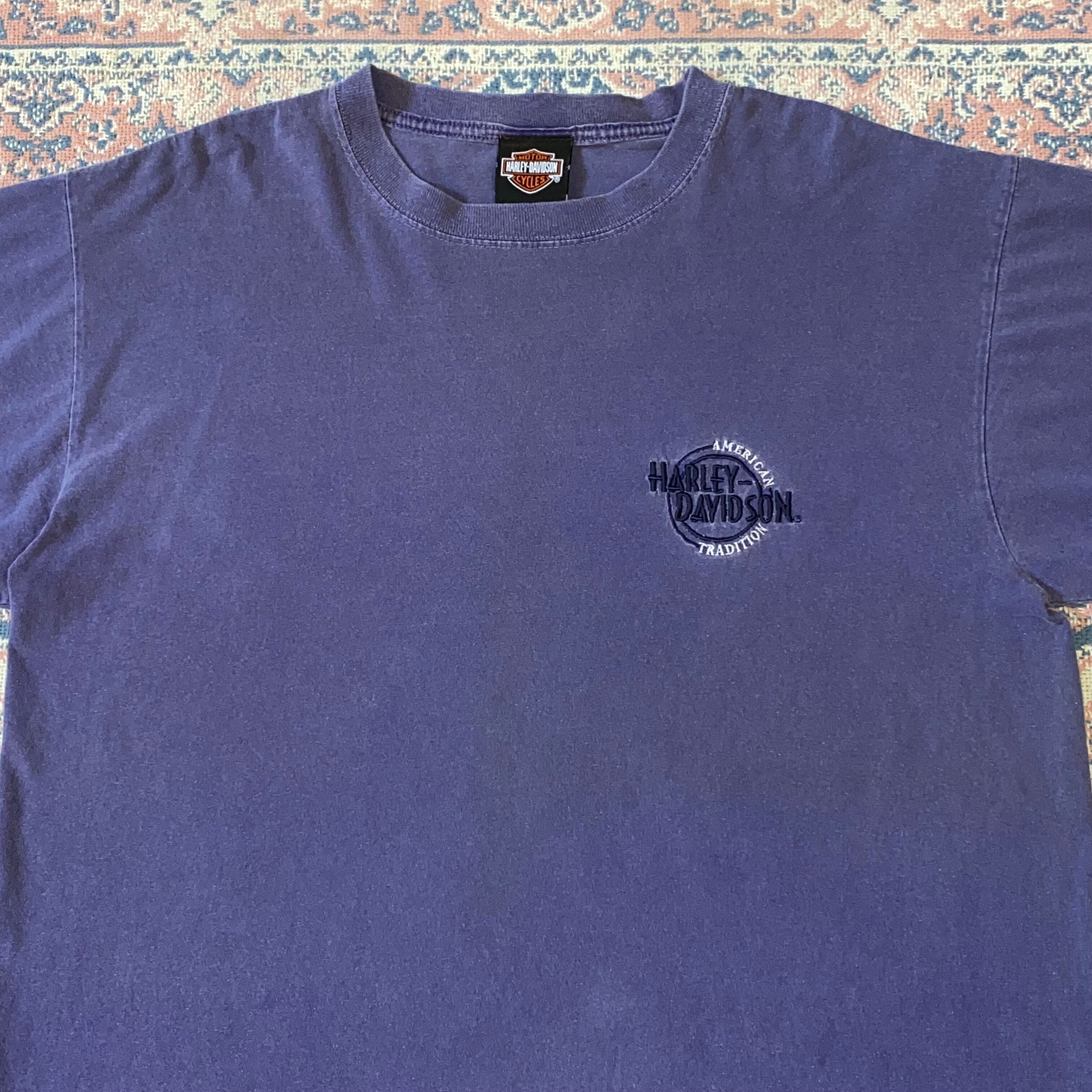 1585 00s 00年代 Harley Davidson ワンポイント Tシャツ 刺繍 ハーレー ダビッドソン 紫 パープル 古着 メンズ vintage M