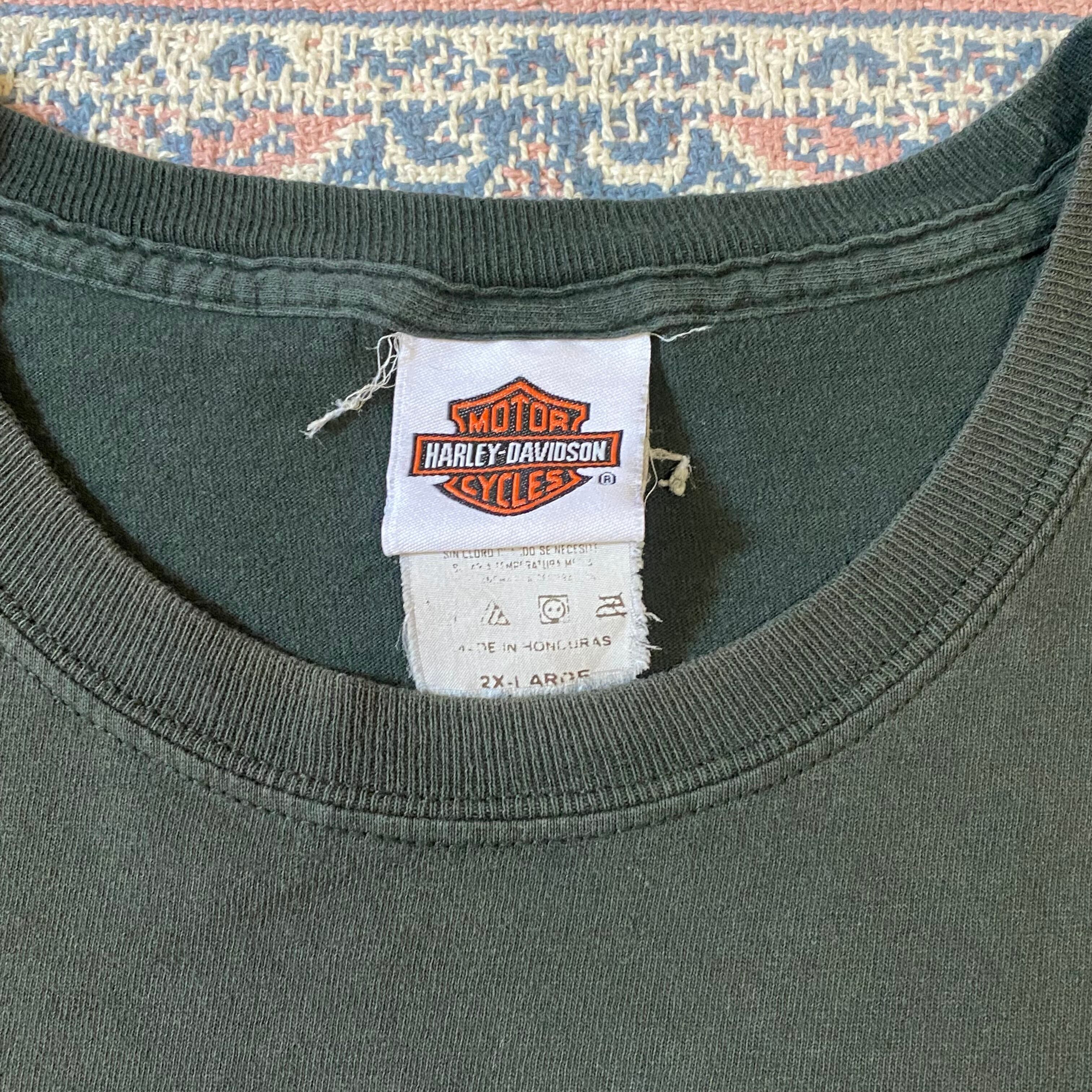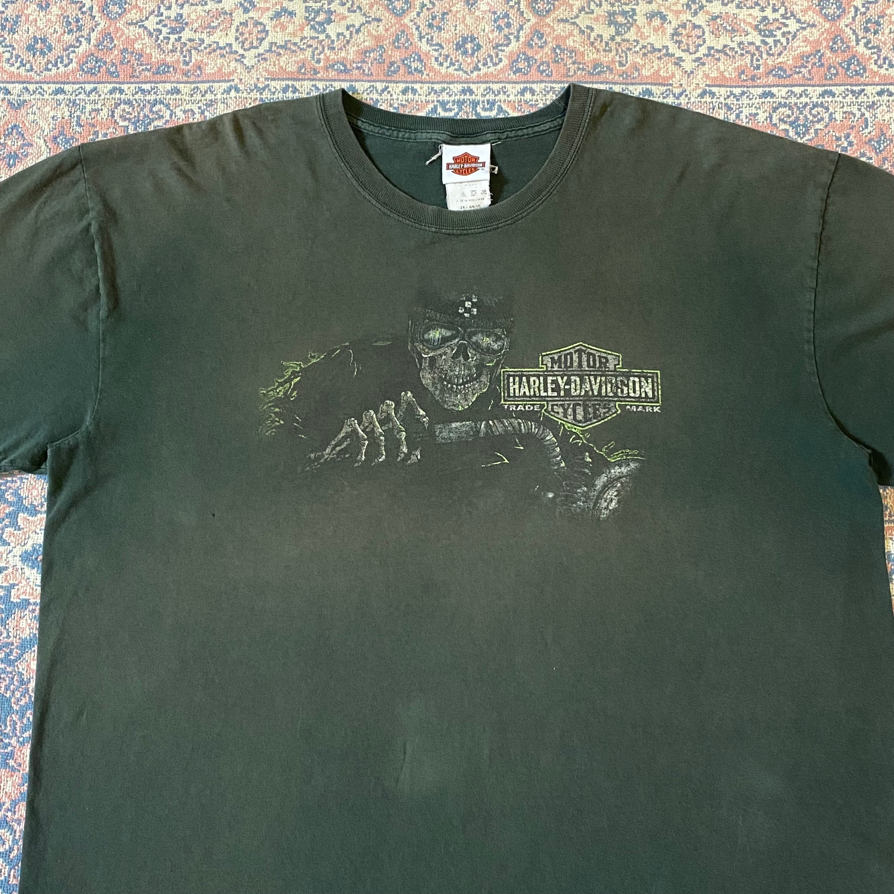 1591 00s〜 00年代〜 Harley Davidson 両面 プリント Tシャツ イーグル 骸骨 ハーレー ダビッドソン グリーン 緑 古着 メンズ vintage XXL