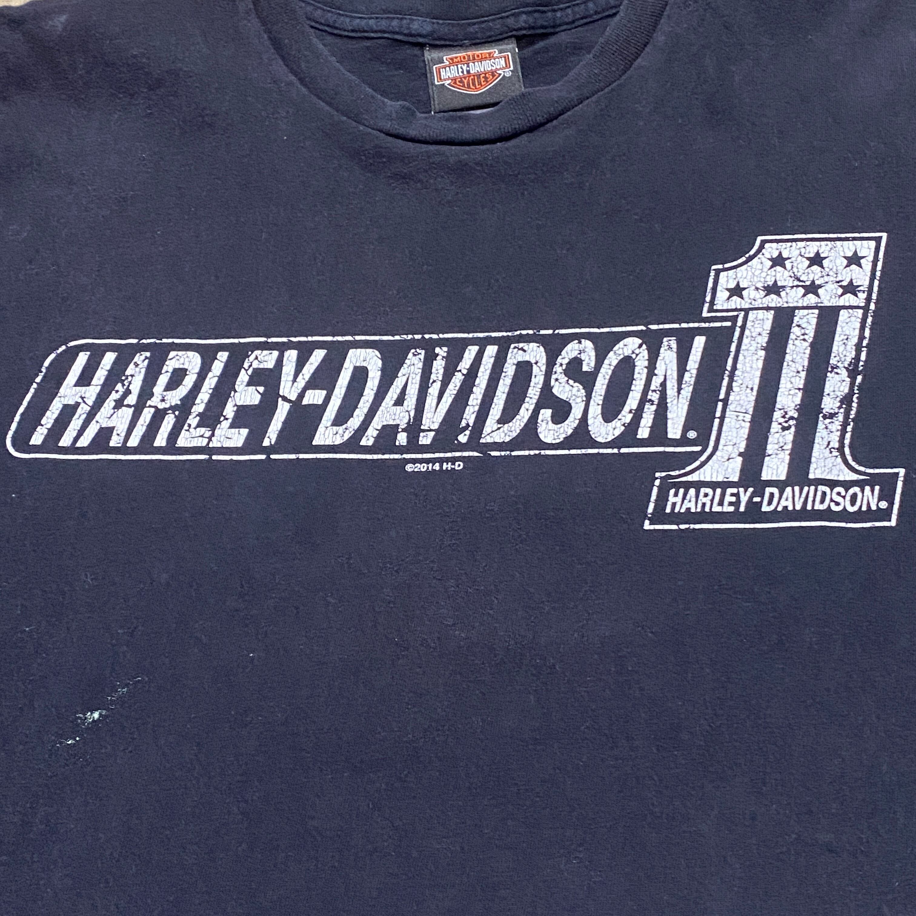 1622 00s〜 00年代〜 Harley Davidson ハーレー ダビッドソン ブラック 黒 両面 プリント Tシャツ モーターサイクル 古着 メンズ vintage 2014