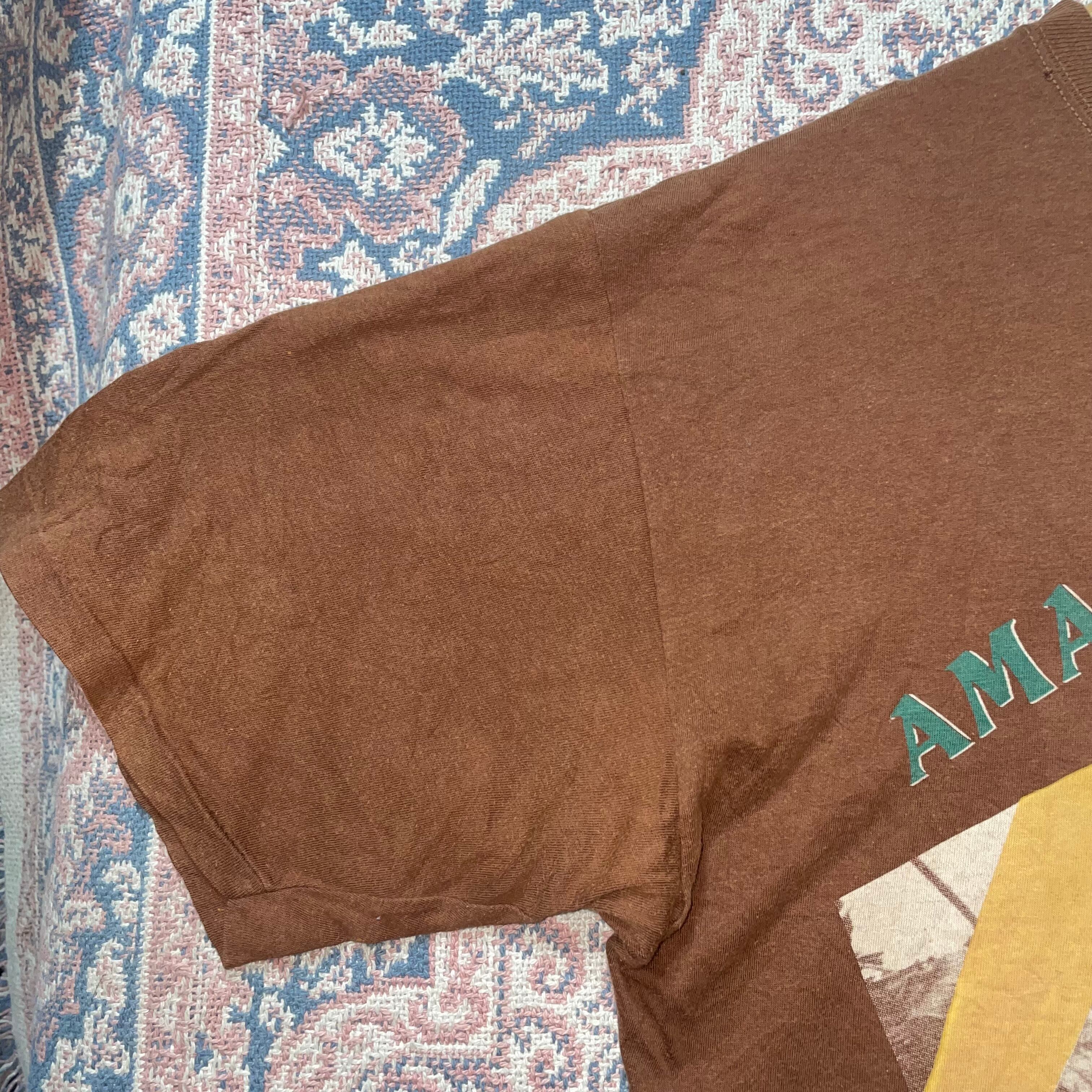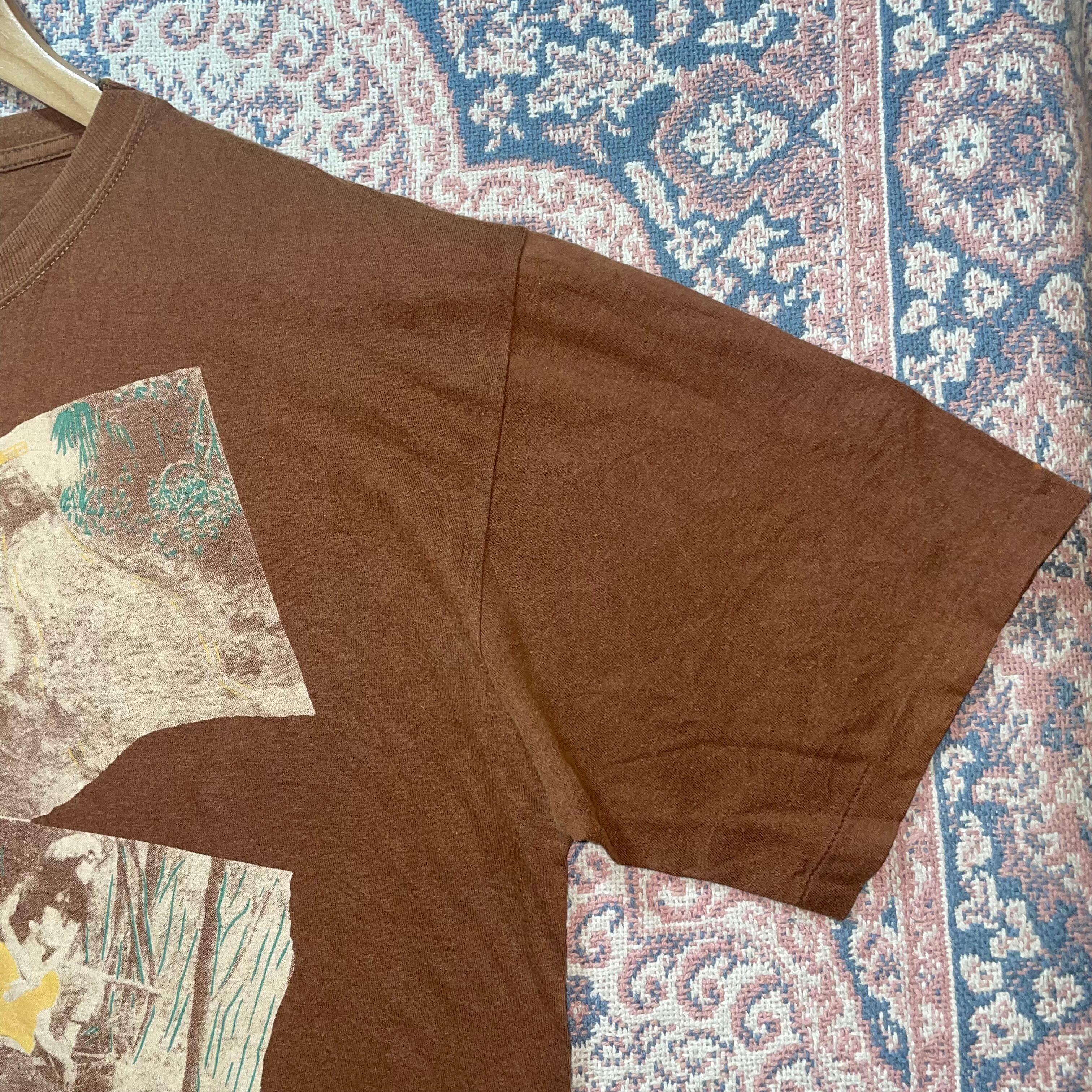 1638 90s 90年代 PROFONDO BLU プリント Tシャツ アマゾナス メンズ 古着 vintage 冒険 グラフィック ブラウン 茶色