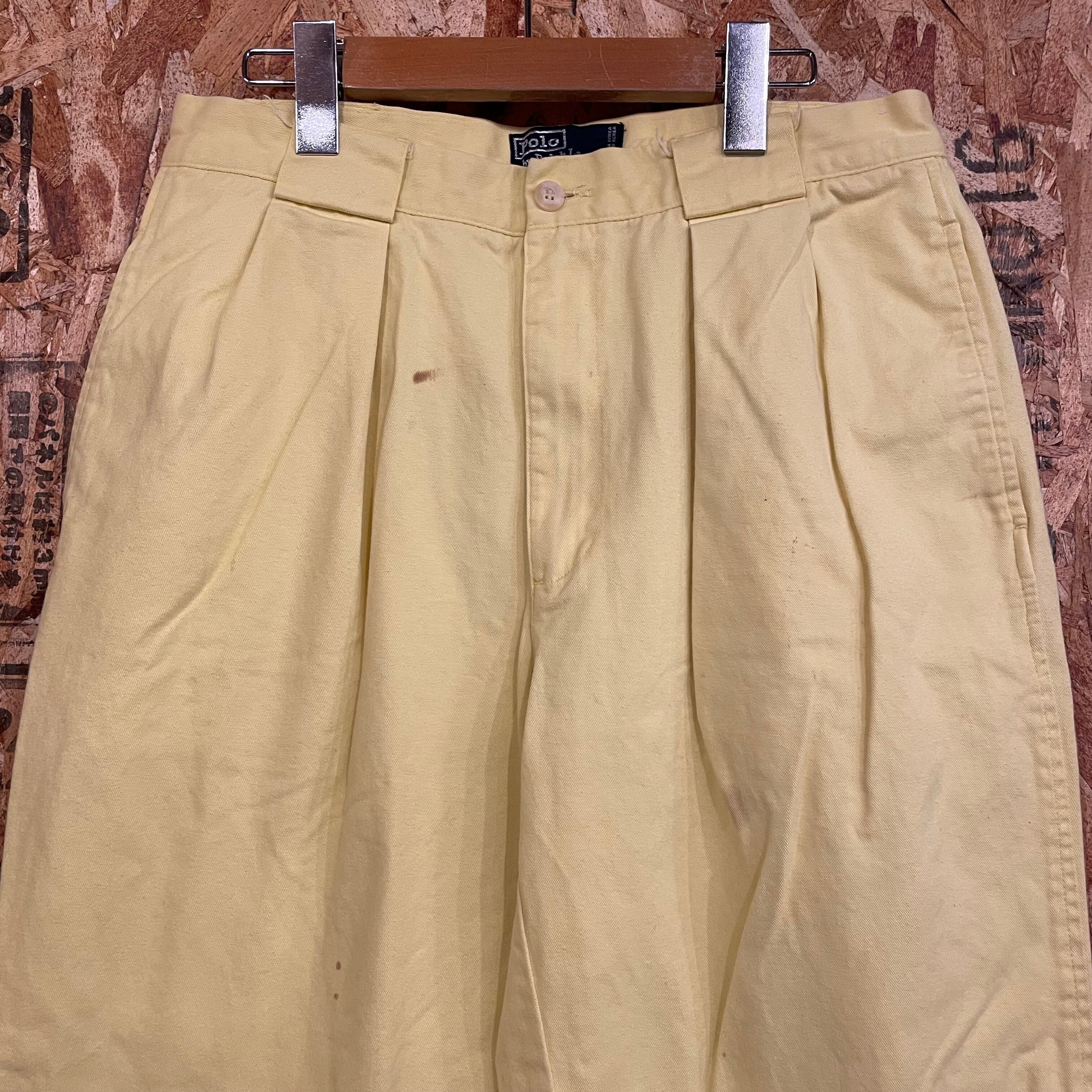 1636 90s 90年代 POLO Ralph Lauren チノパン ツータック ポロ ラルフローレン メンズ 古着 vintage ライト イエロー ボトムス 黄色