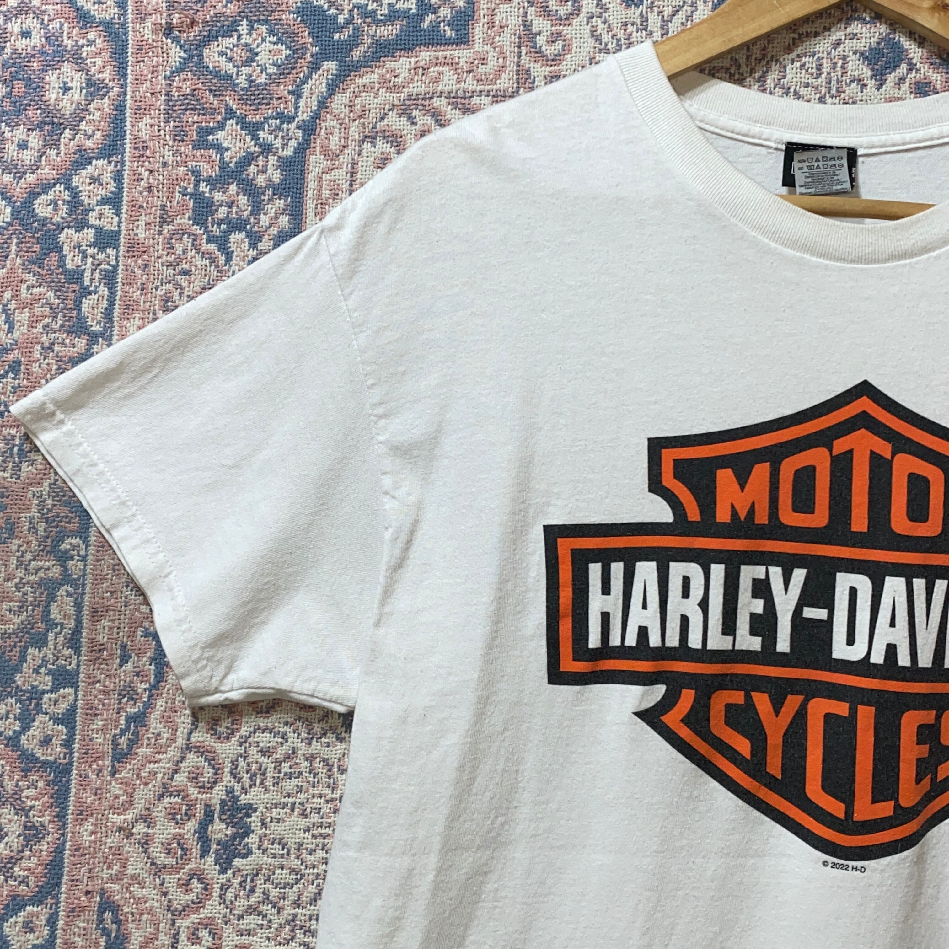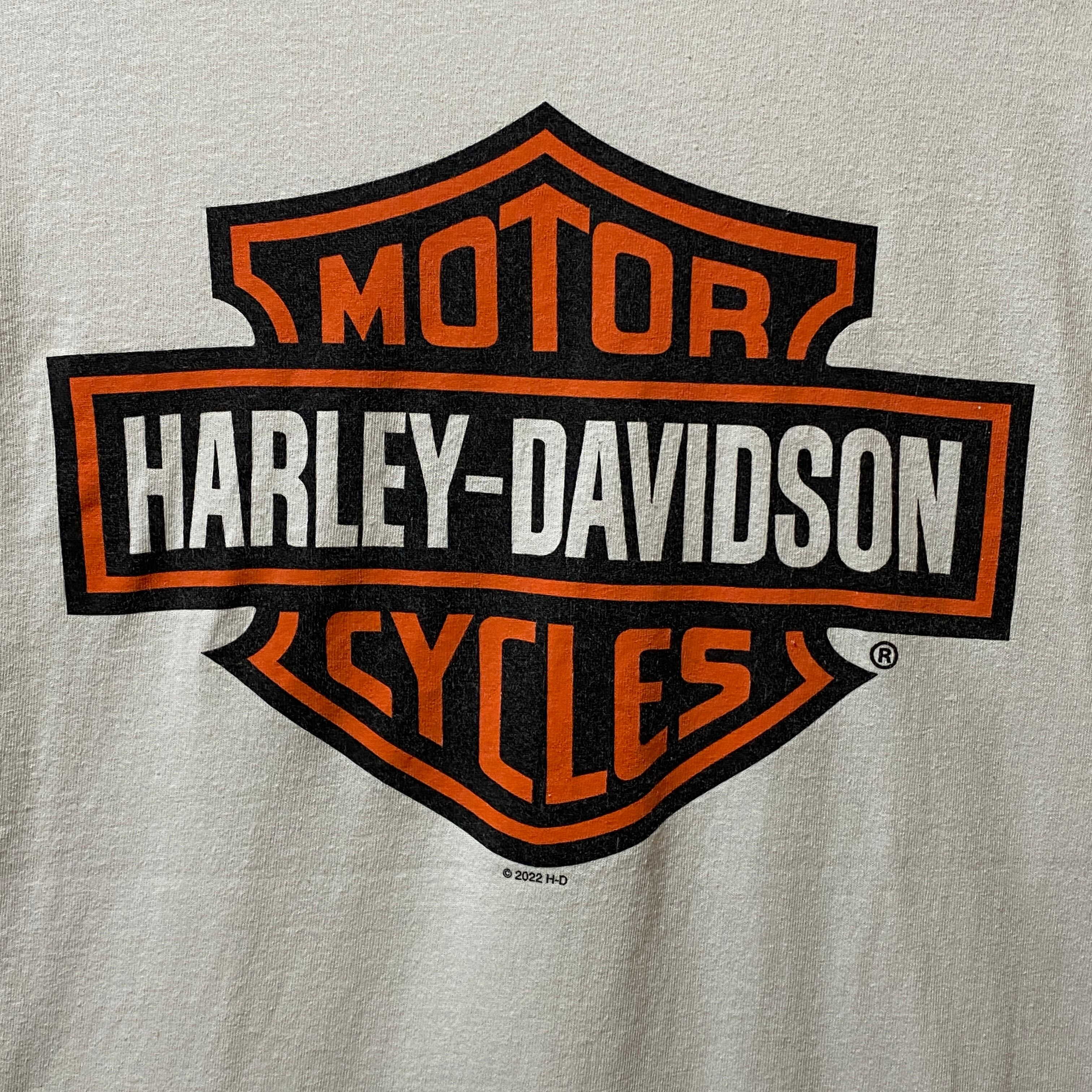 1648 00s 00年代 HARLEY DAVIDSON プリントTシャツ ハーレーダビッドソン 古着 メンズ vintage 両面プリント 軍艦 白 ホワイト