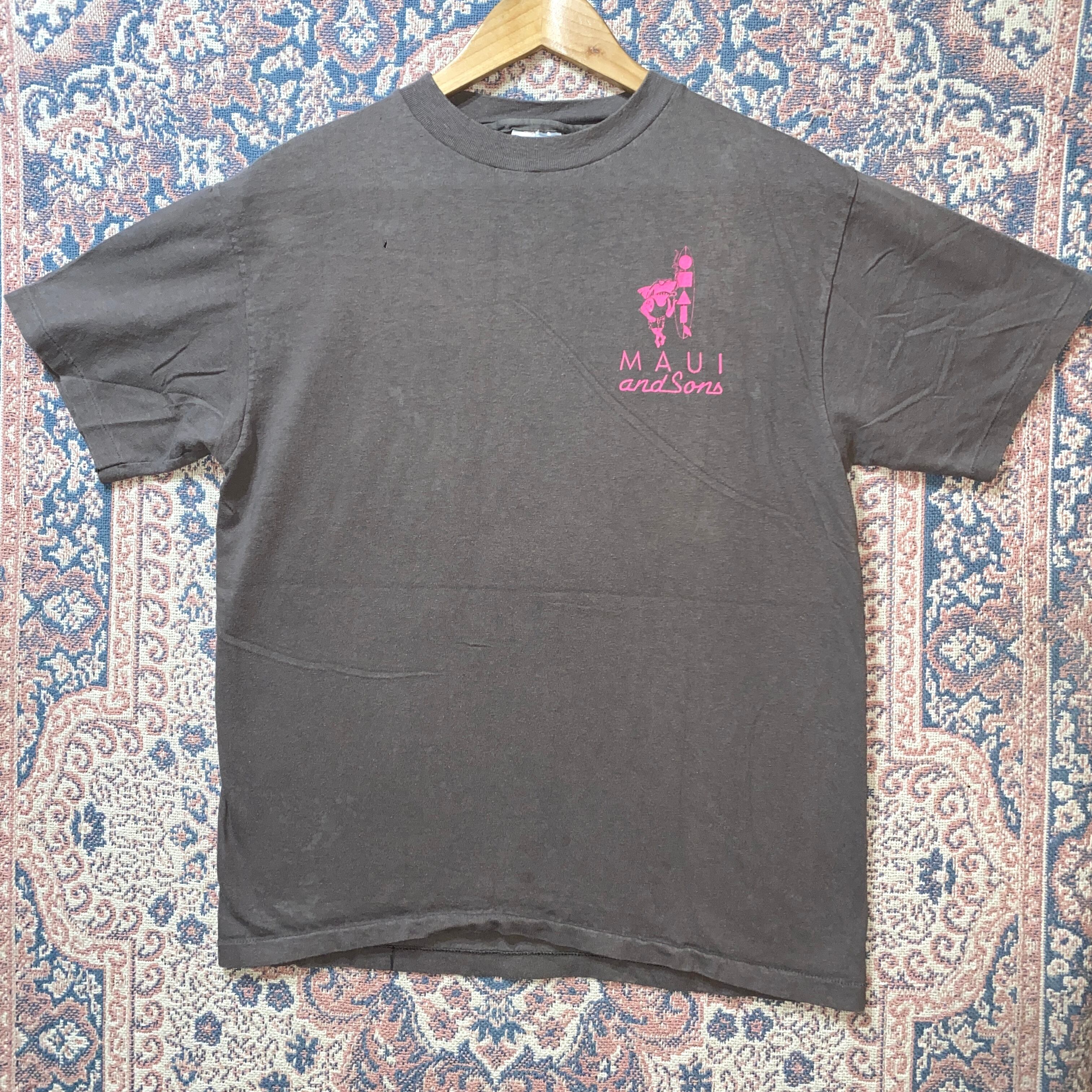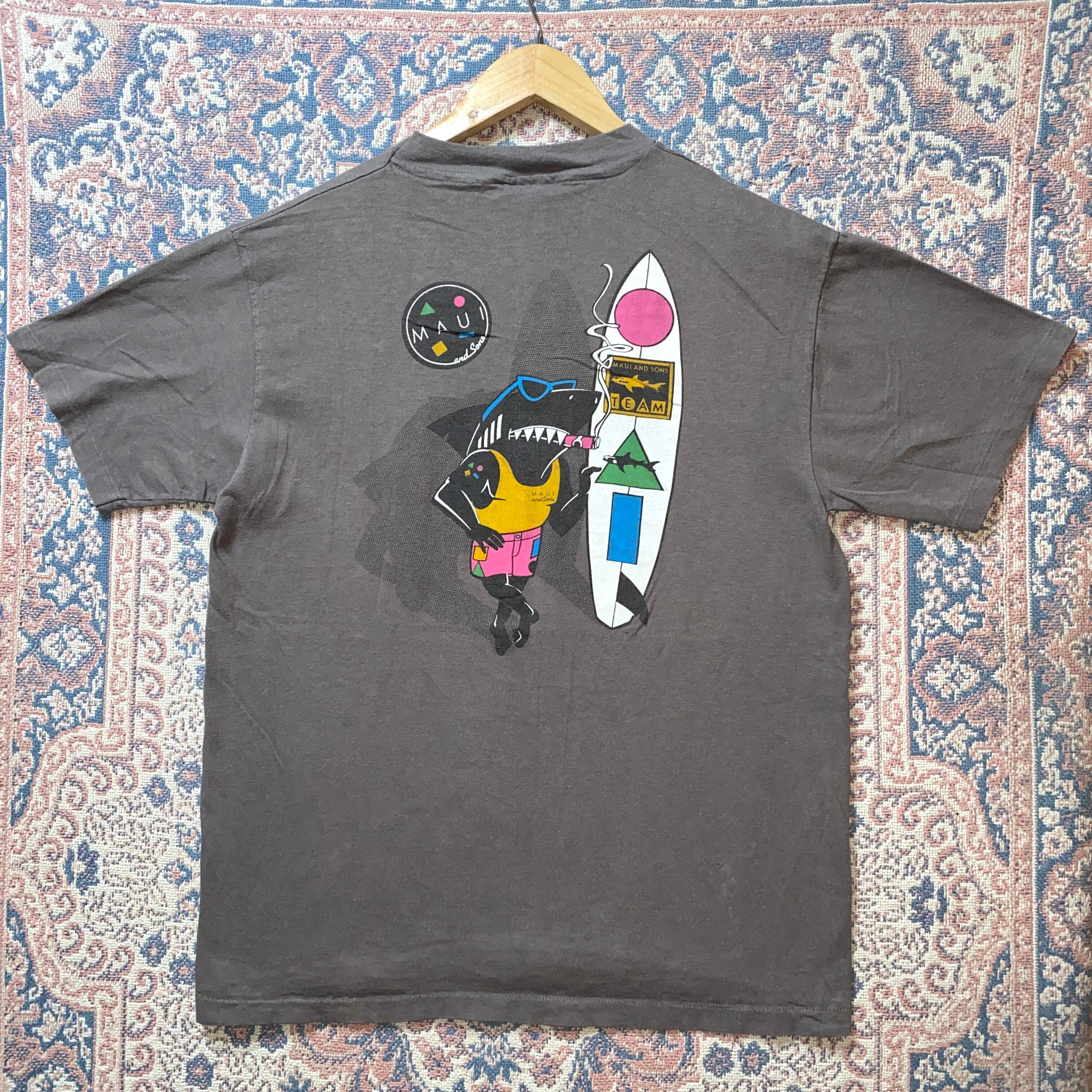 1673 90s 90年代 USA製 MAUI & SONS プリント Tシャツ ハワイ サーフィン アニマル イラスト シャーク シングルステッチ 古着 メンズ vintage
