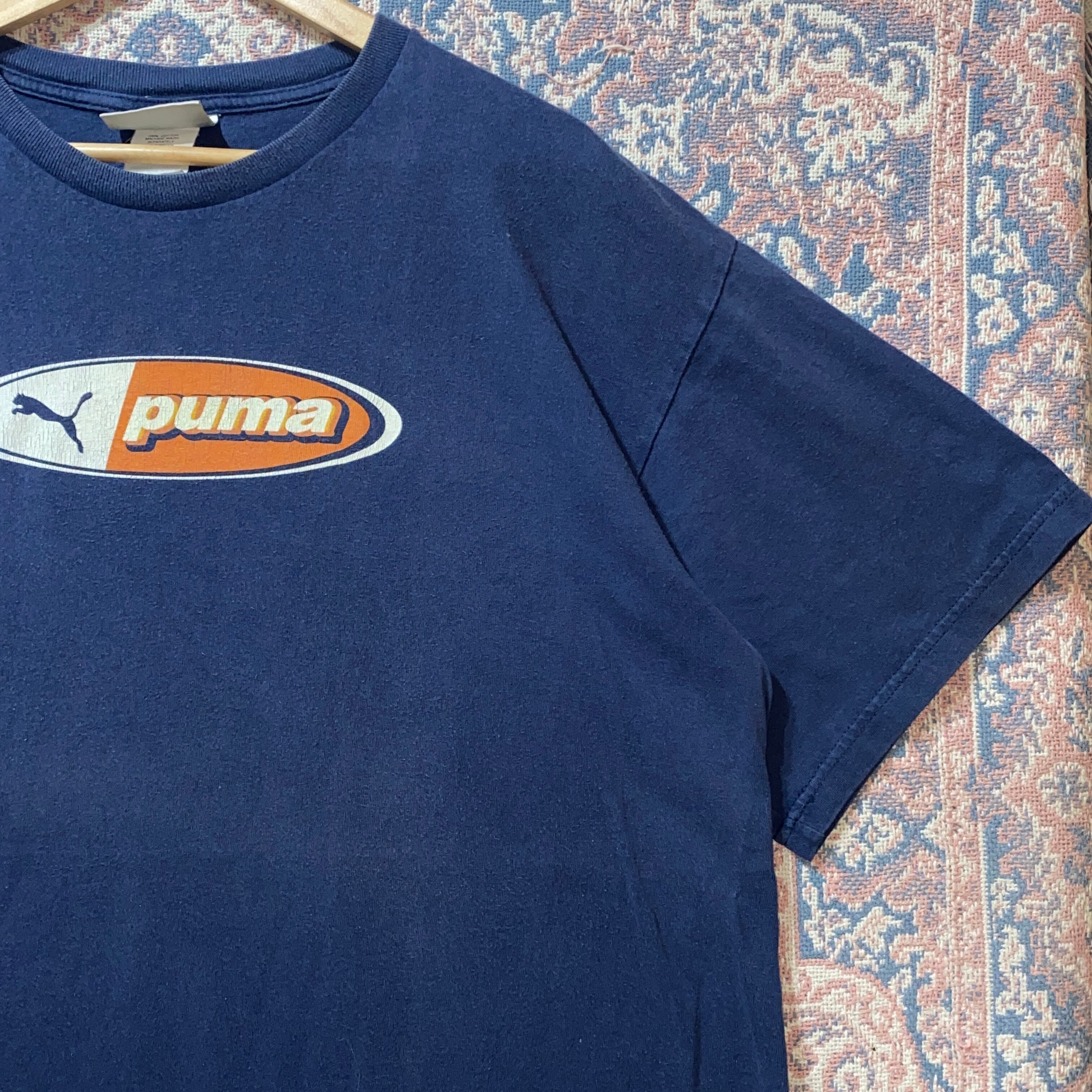 1678 90s 90年代 USA製 PUMA プリント Tシャツ ネイビー プーマ y2k 古着 メンズ vintage L