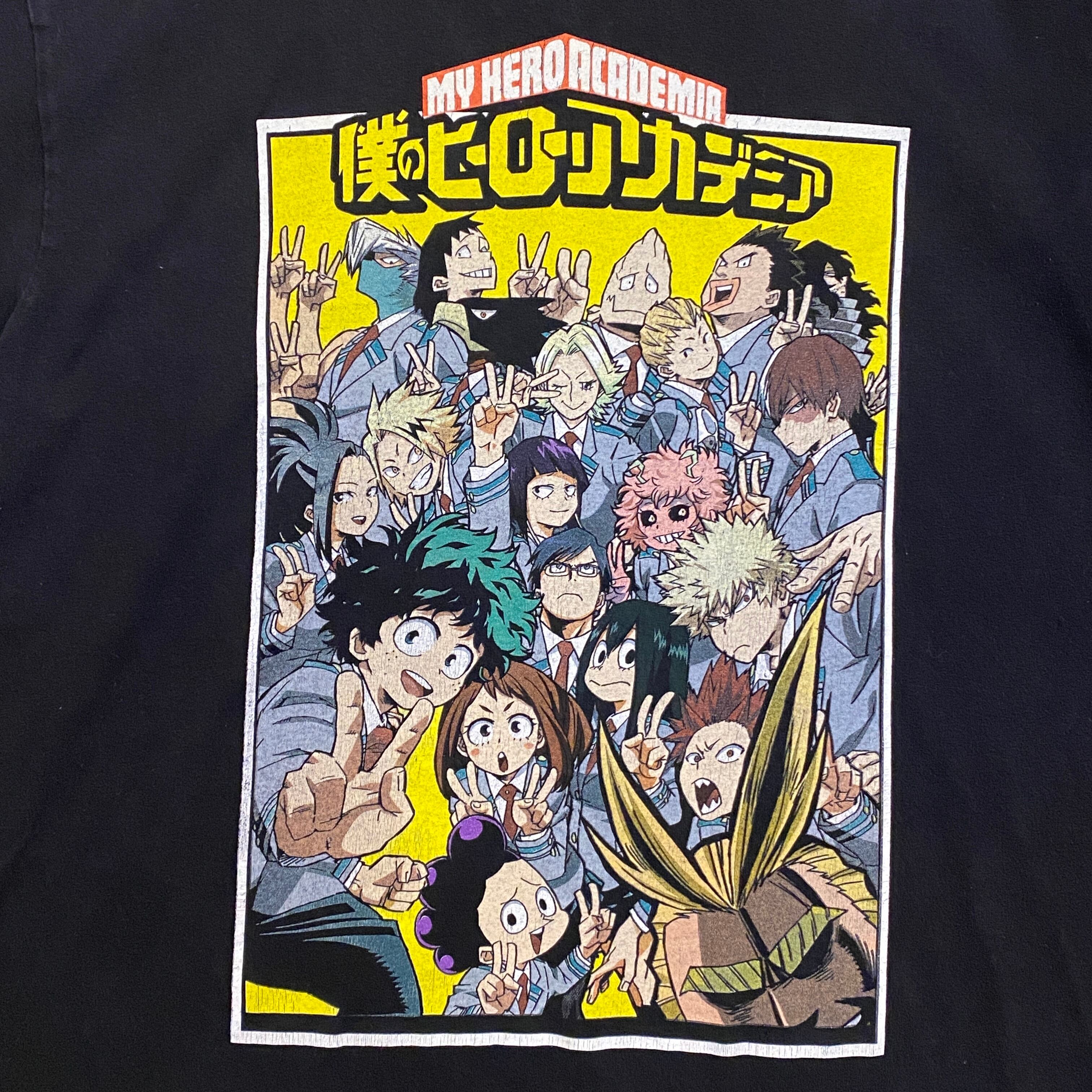 1692 僕のヒーローアカデミア プリント Tシャツ 映画 漫画 ムービー キャラクター ヒロアカ アニメ 集合 黒 ブラック 古着 メンズ vintage