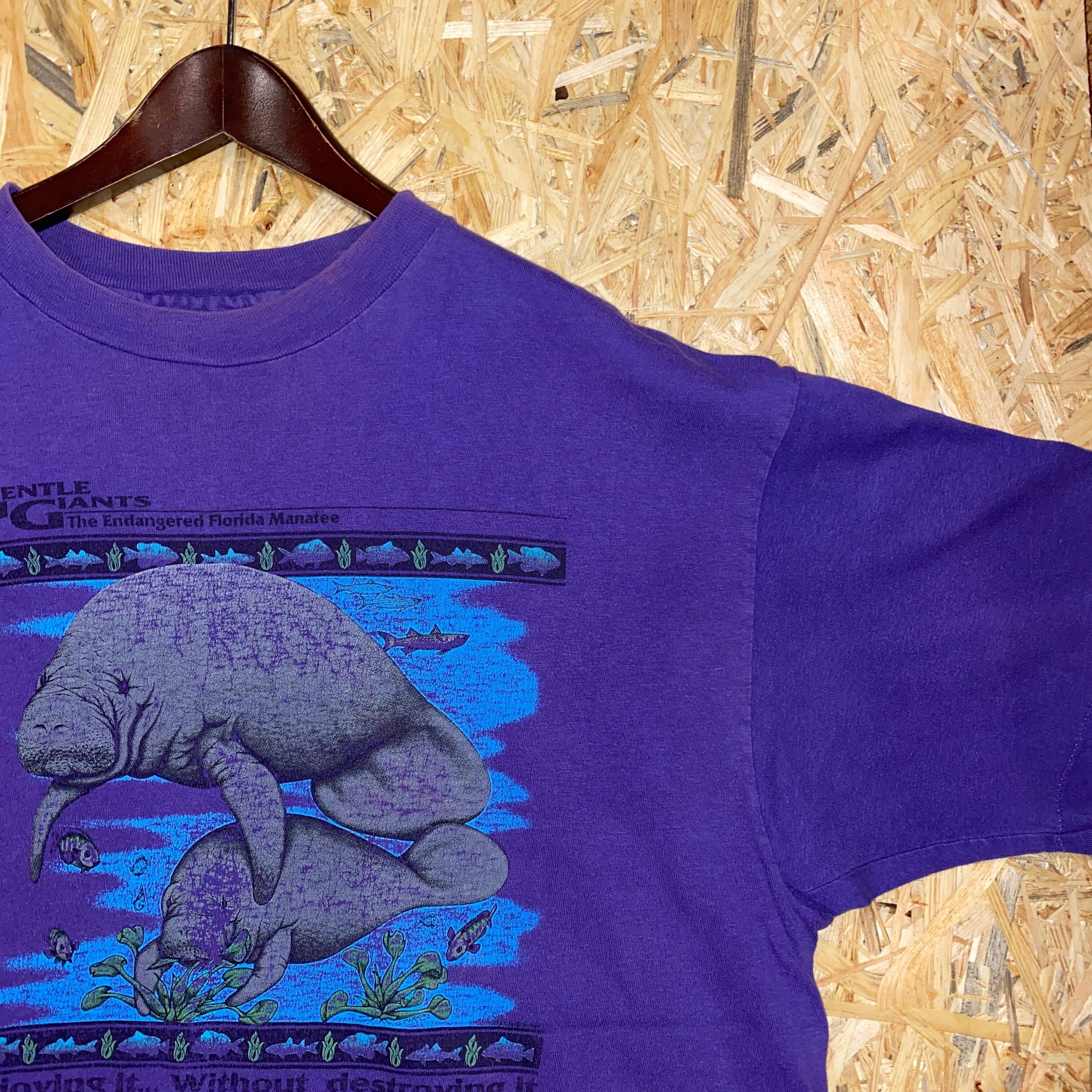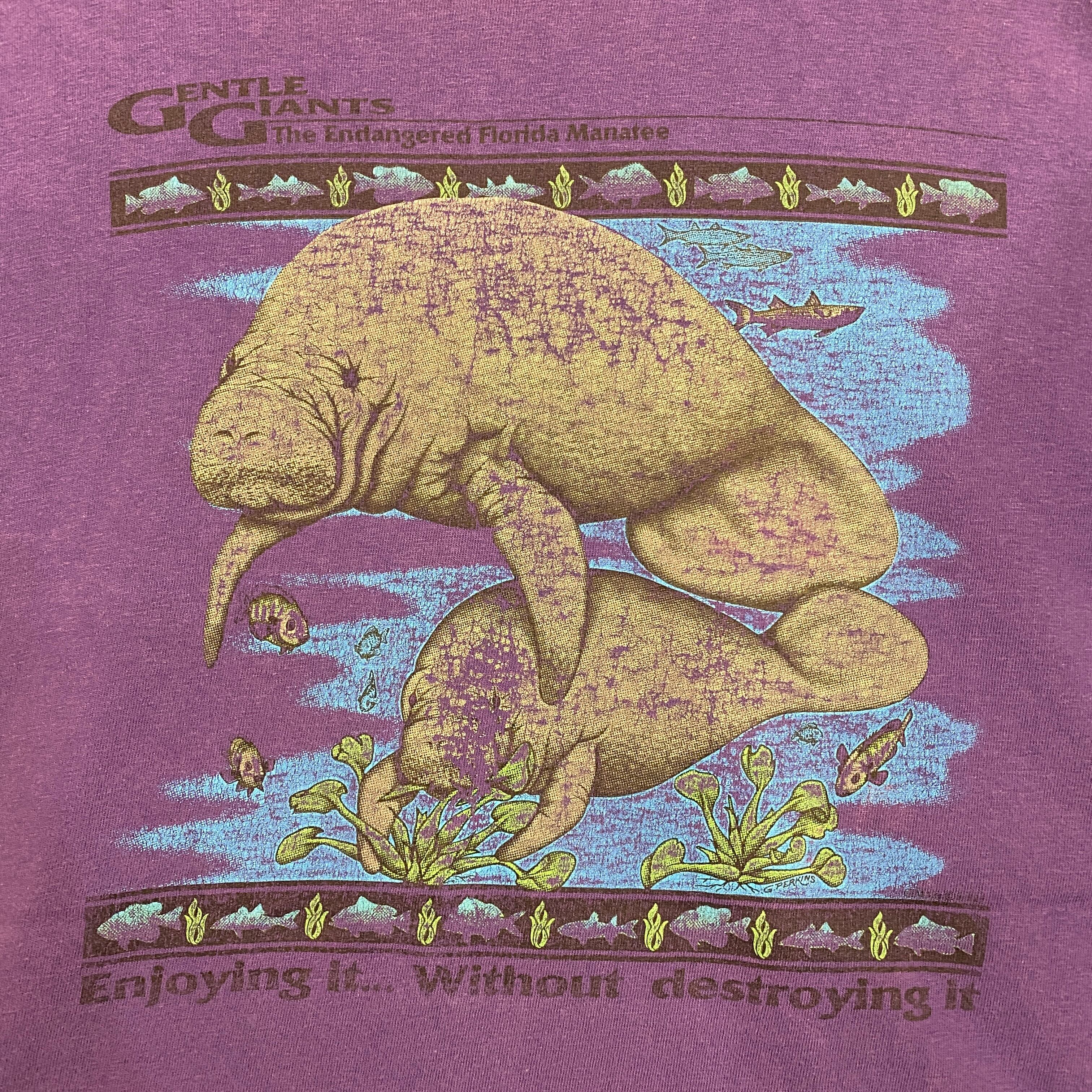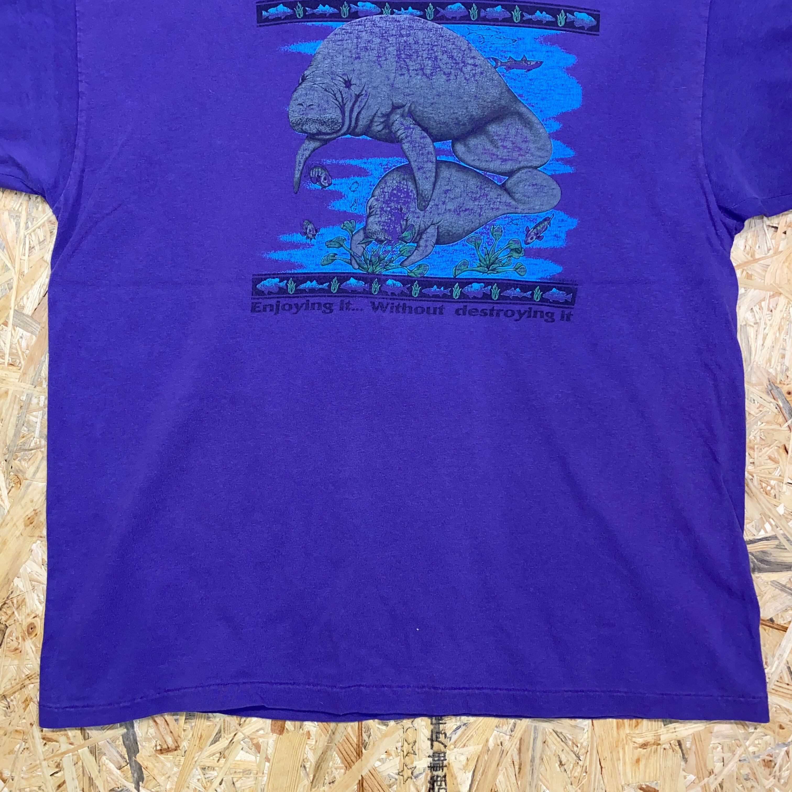 1720 90s 90年代 Hanes プリント アニマル Tシャツ メンズ 古着 vintage パープル マナフィ ヘインズ シングルステッチ