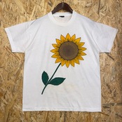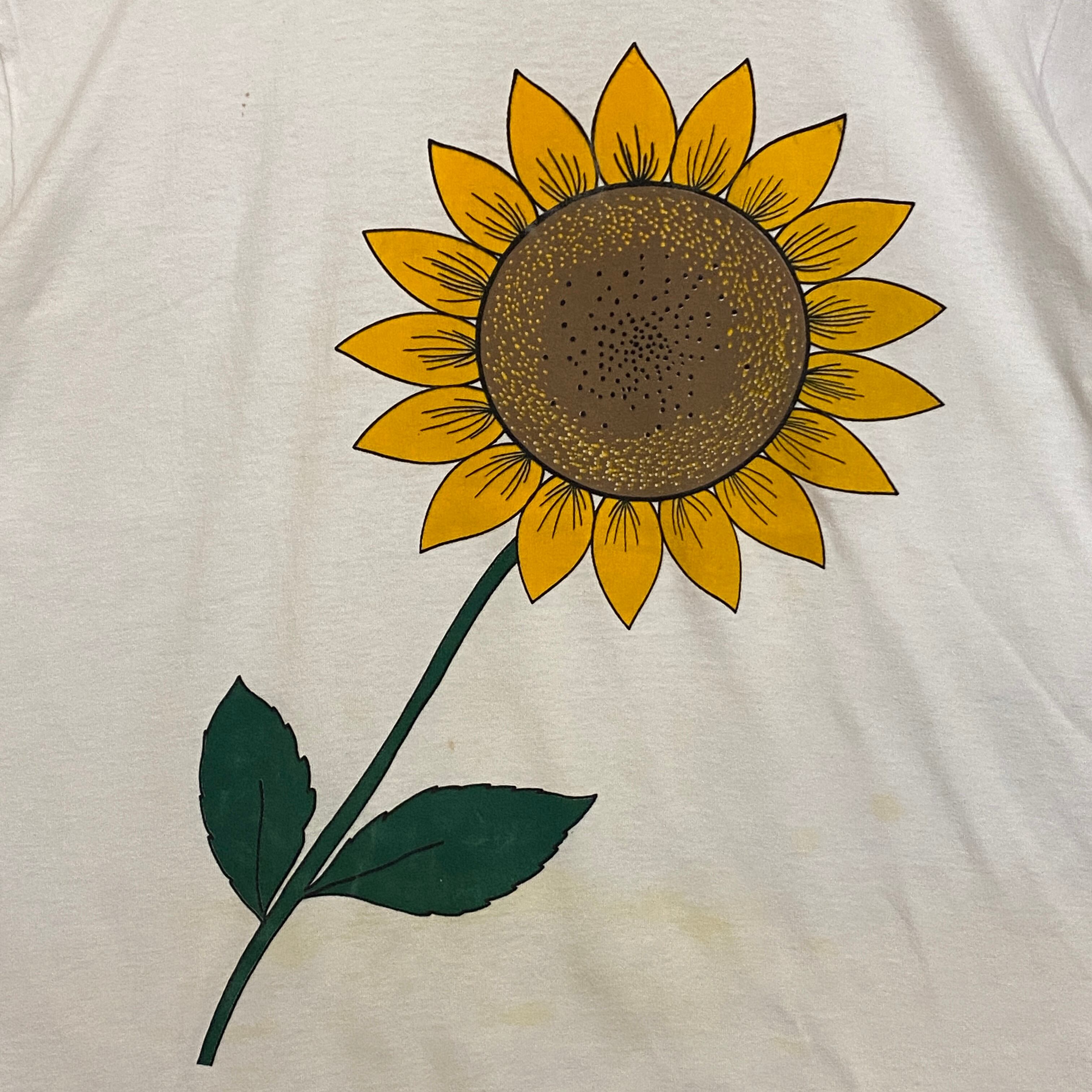 1745 USA製 ヒマワリ ひまわり プリント Tシャツ シングルステッチ ホワイト 白 一輪 古着 メンズ vintage