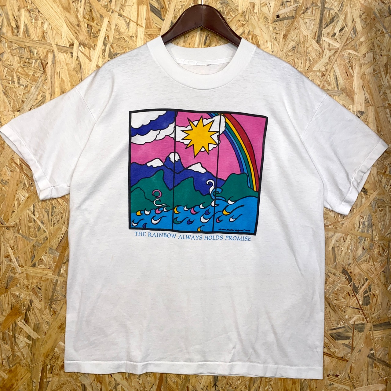 1817 1995s ポップ アート Tシャツ 虹 風景 シングルステッチ プリント ホワイト 白 古着 メンズ vintage 90s 90年代
