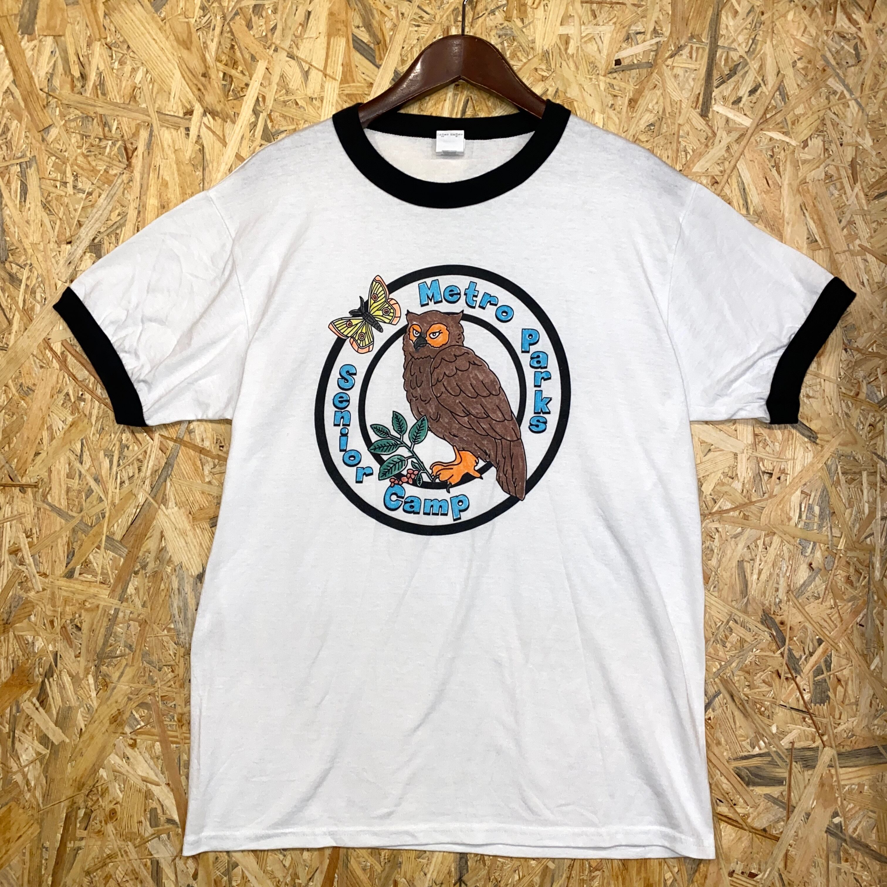 1821 00s 00年代 フクロウ リンガー Tシャツ アニマル 動物 イラスト キャンプ ホワイト 白 古着 メンズ vintage GILDAN