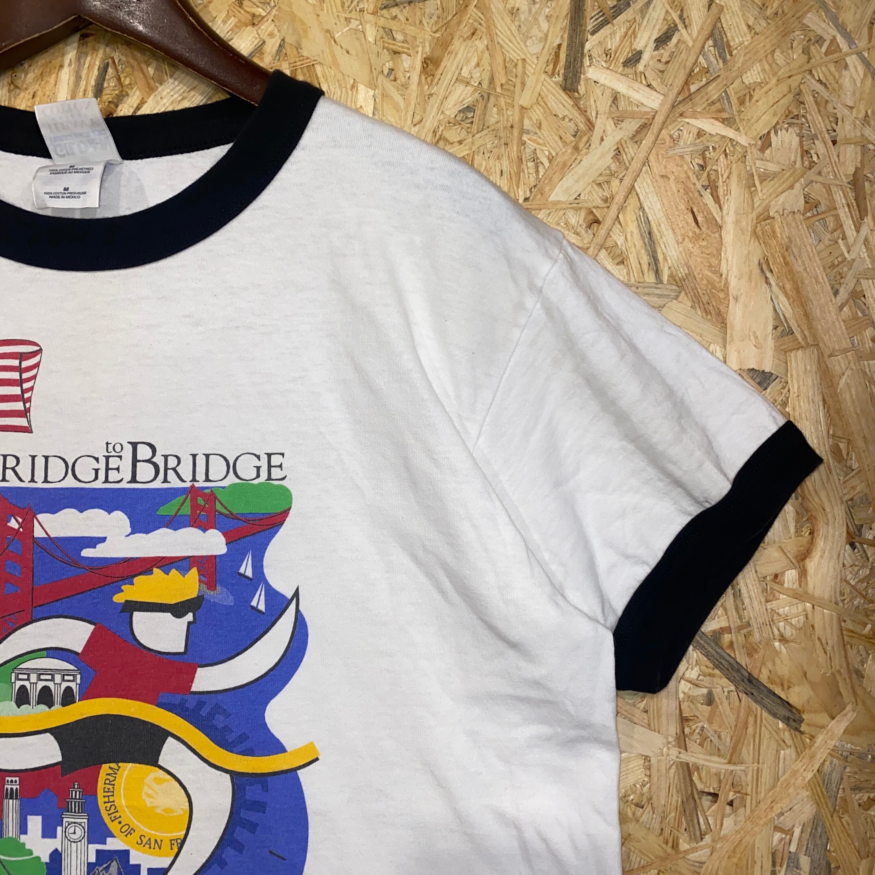 1832 90s〜 90年代〜 リンガー 両面プリント Tシャツ 企業物 国旗 橋 スポーツ カリフォルニア サンフランシスコ ホワイト 白 古着 メンズ vintage M