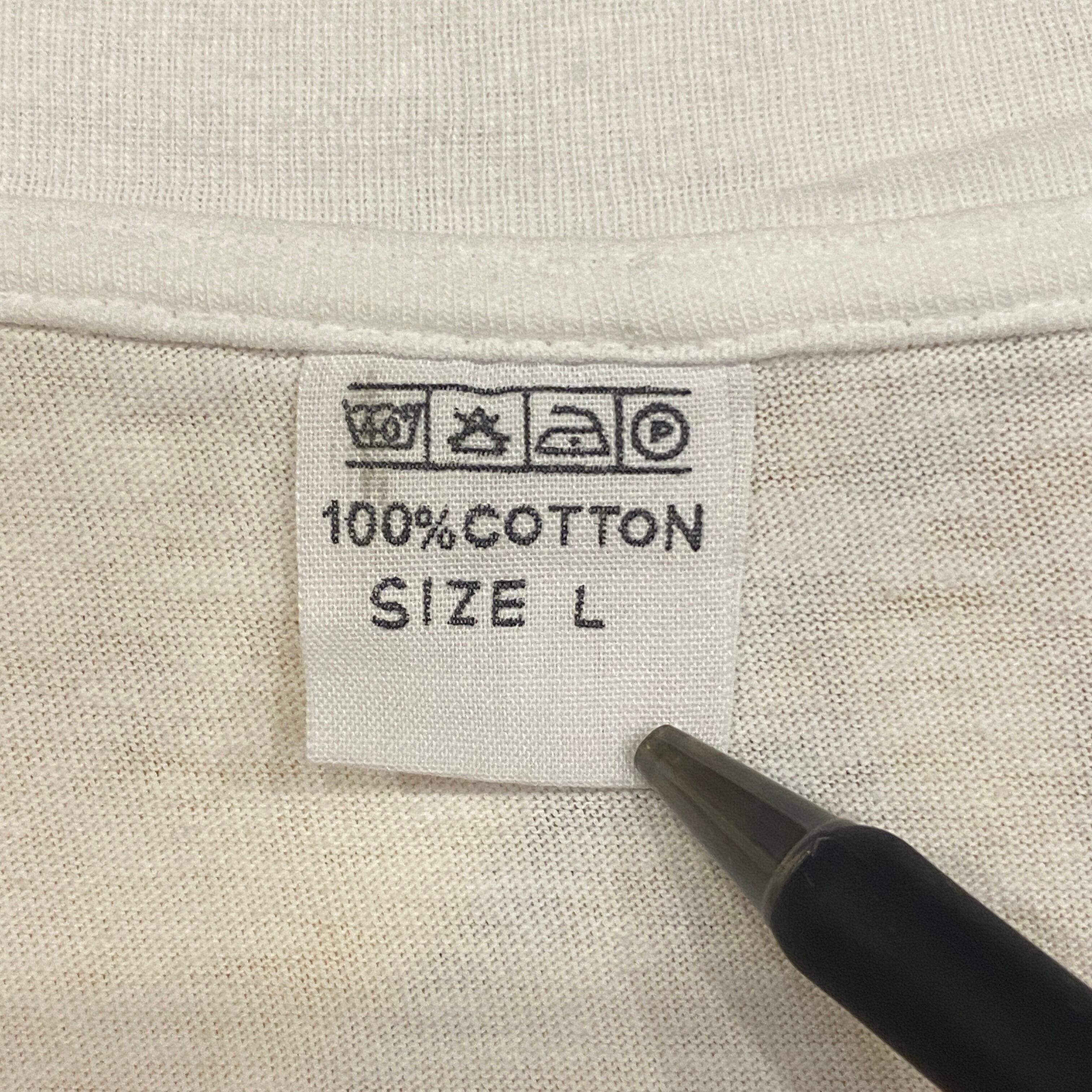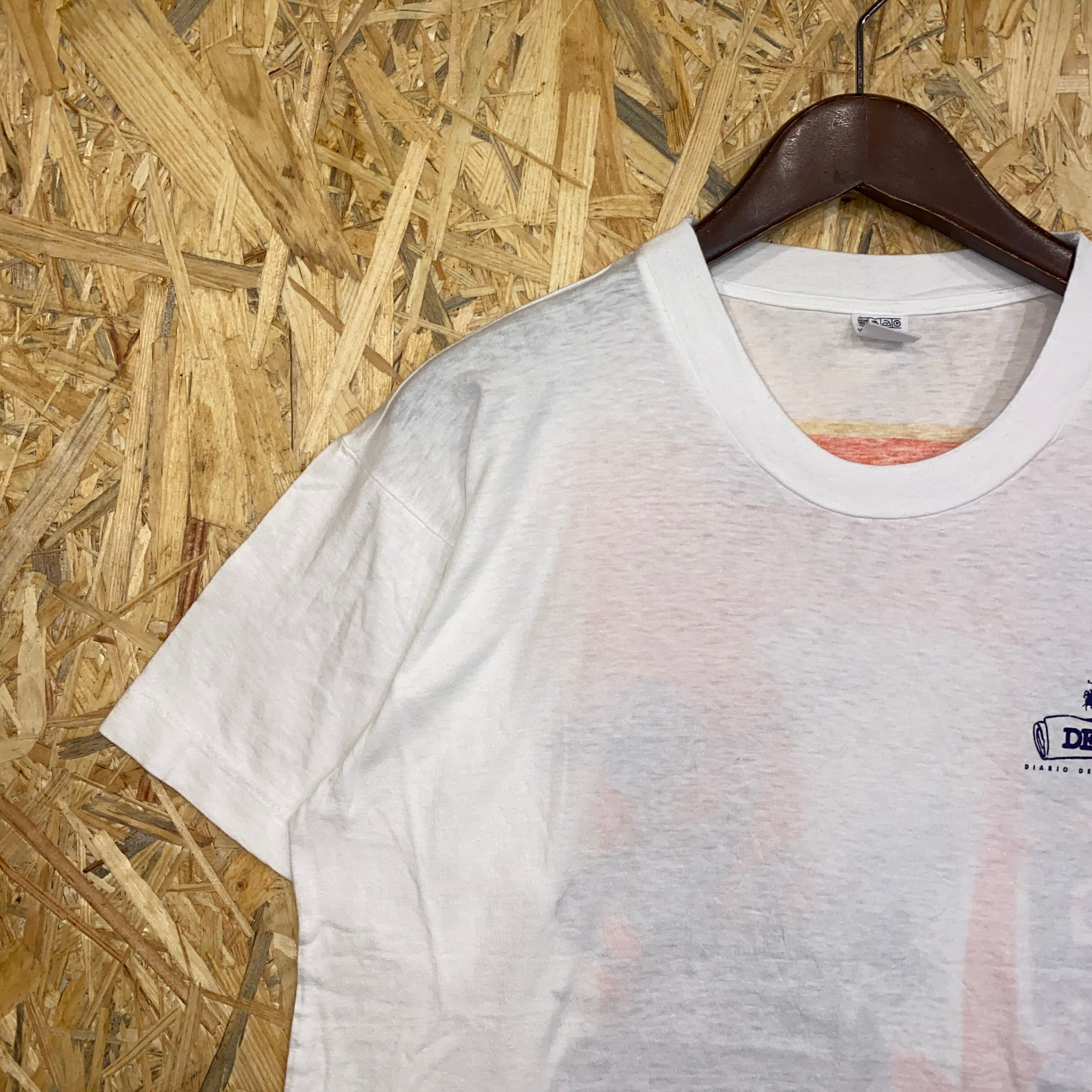 1835 80s 80年代 EUSKADI DEIA プリント Tシャツ 新聞 企業 ロゴ スペイン シングルステッチ イラスト ホワイト 白 古着 メンズ vintage L
