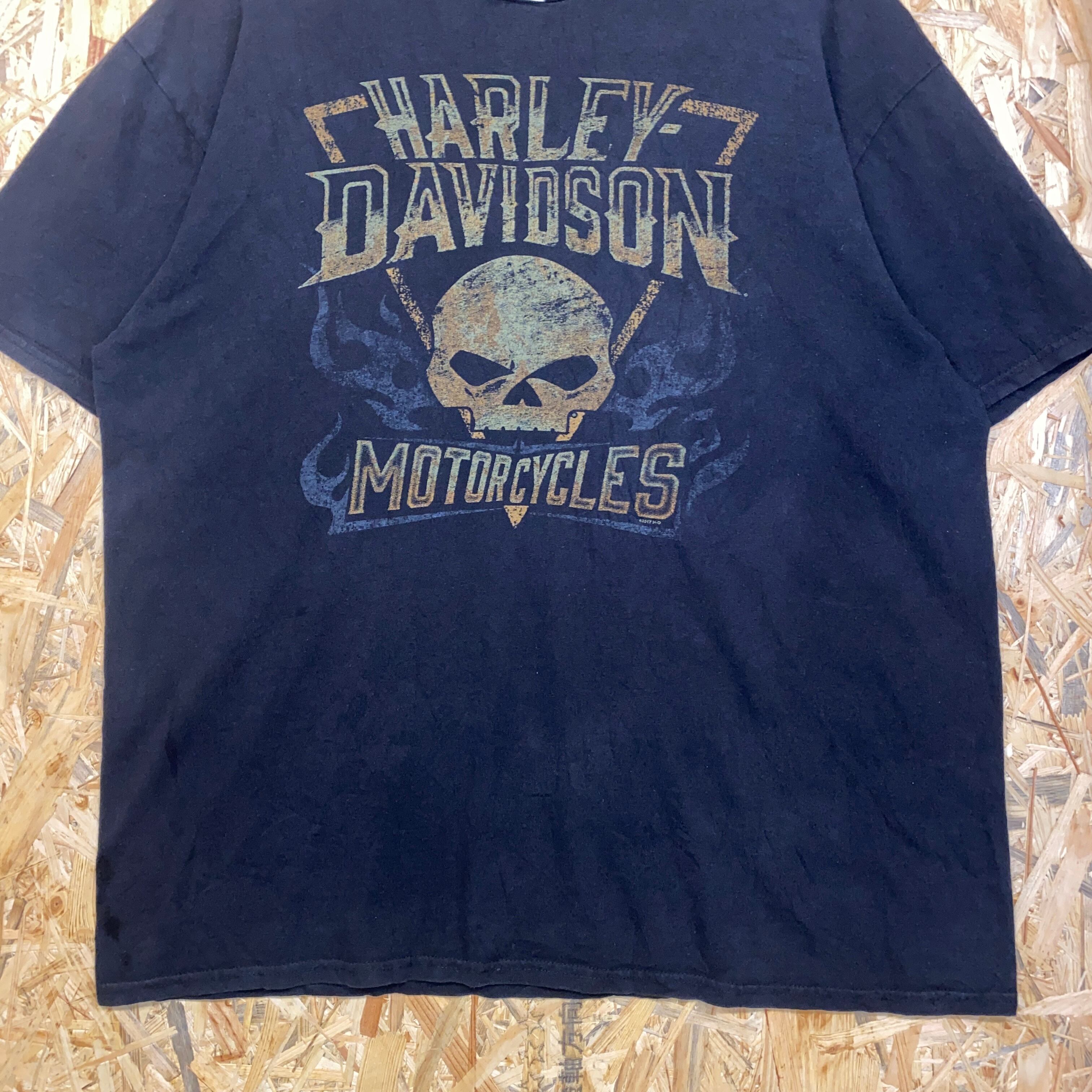 1837 00s〜 00年代〜 HARLEY DAVIDSON 両面 プリント Tシャツ ガイコツ モーターサイクル スカル ハーレー ダビッドソン 古着 メンズ vintage XL